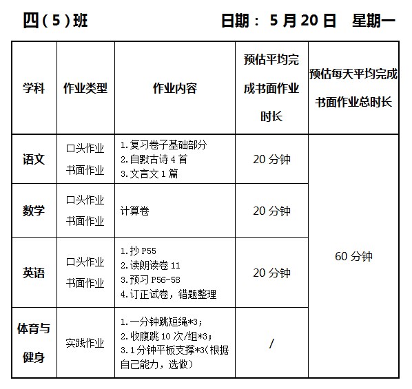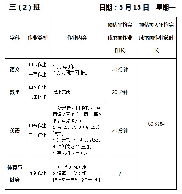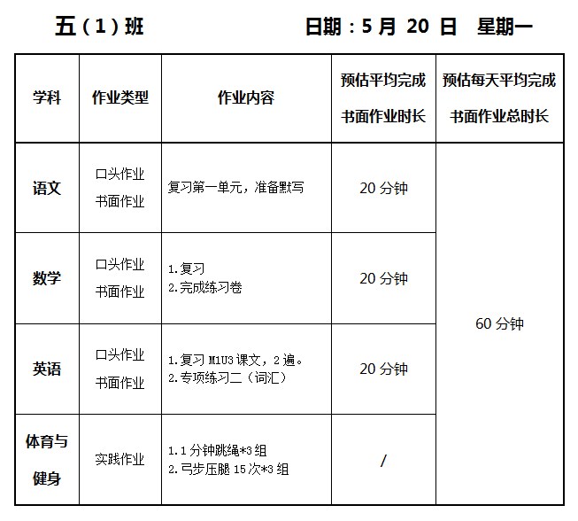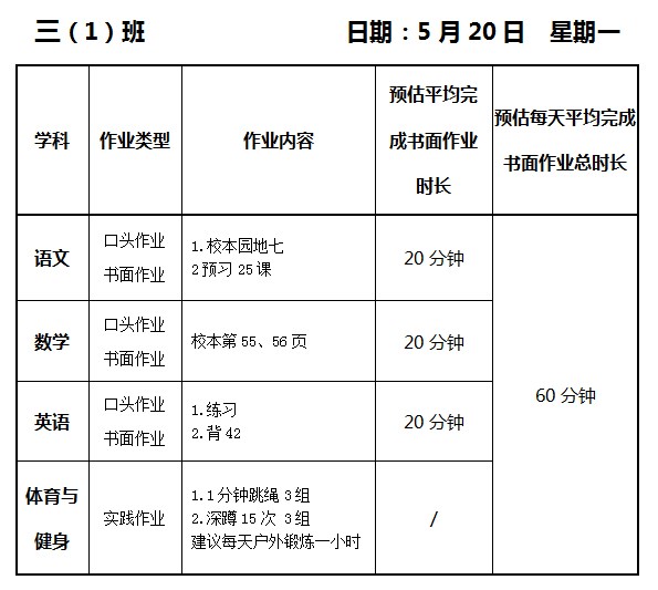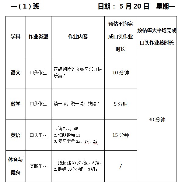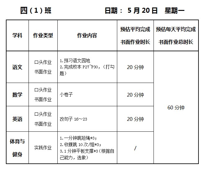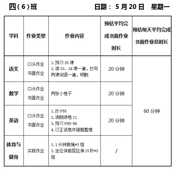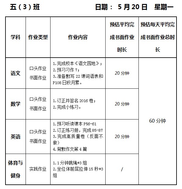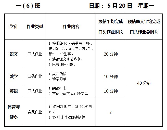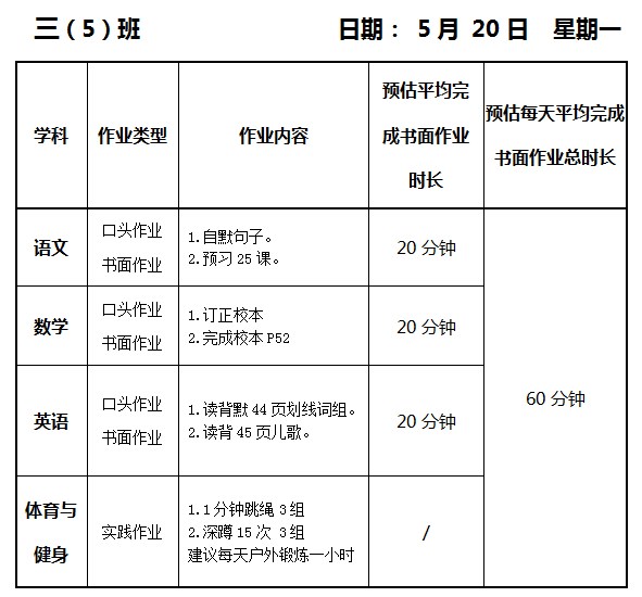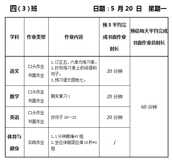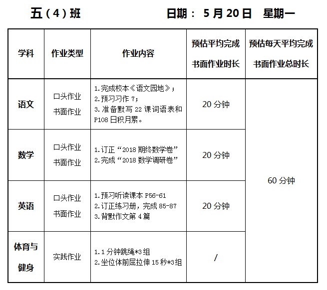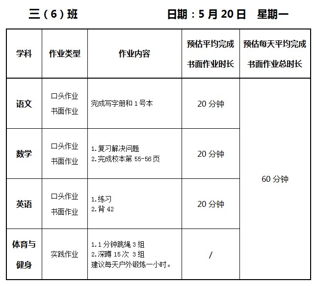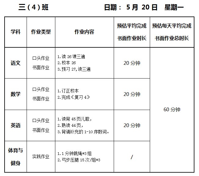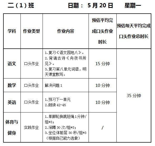 【作业公示】2023学年第二学期南翔小学作业公示(5月20日)