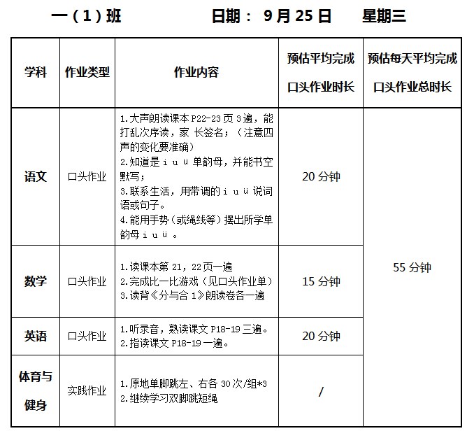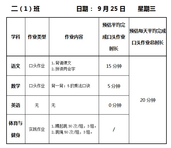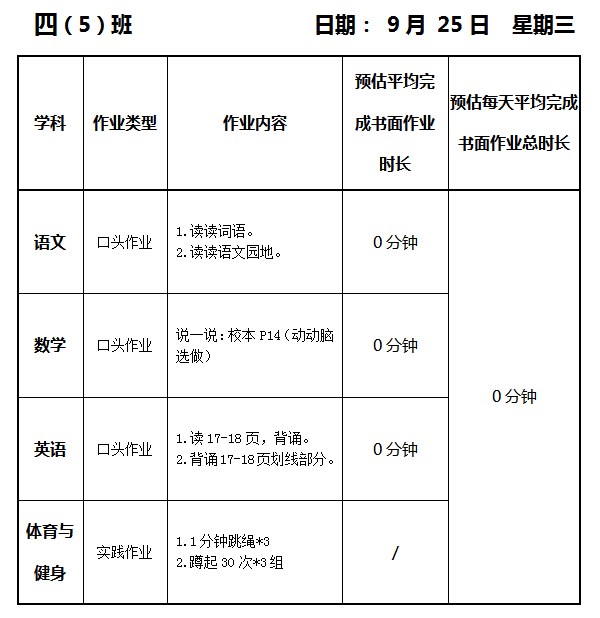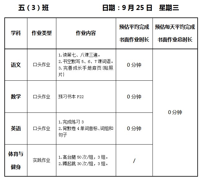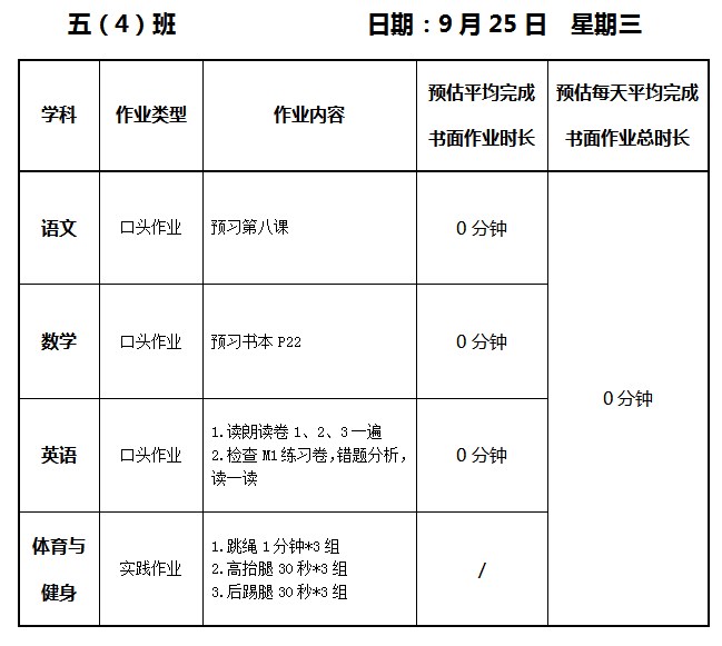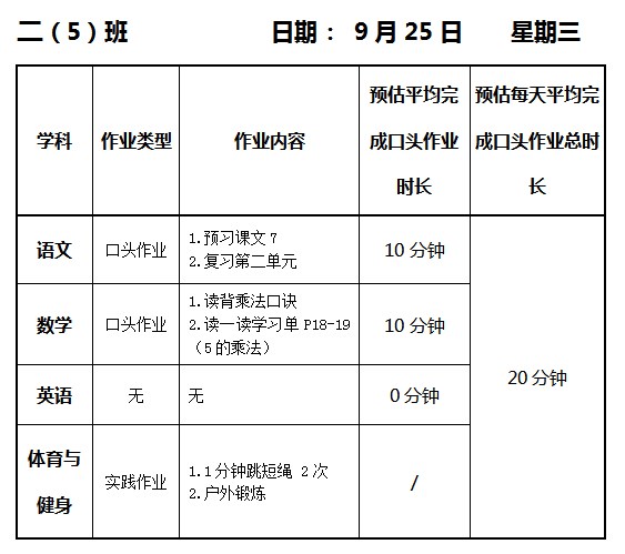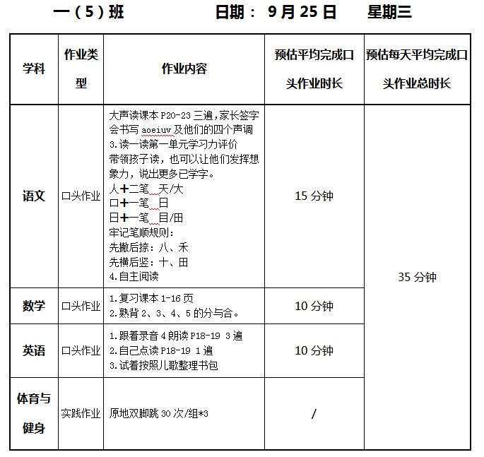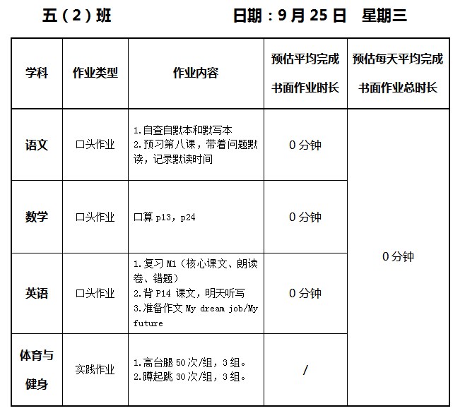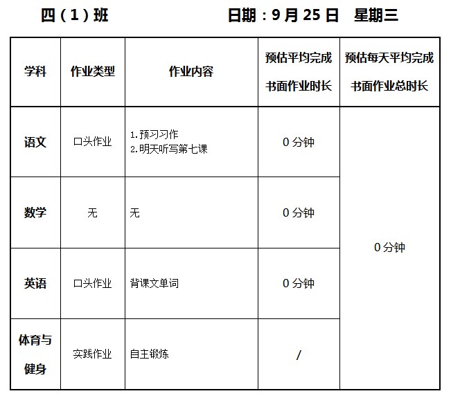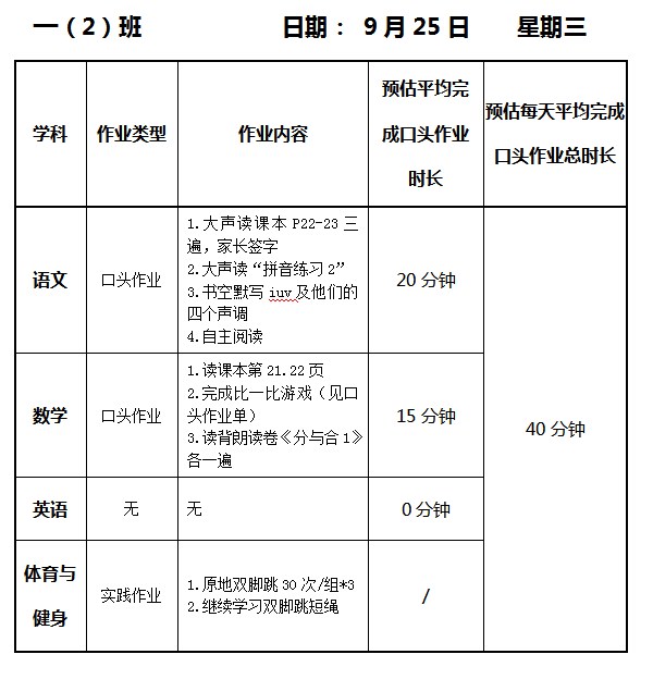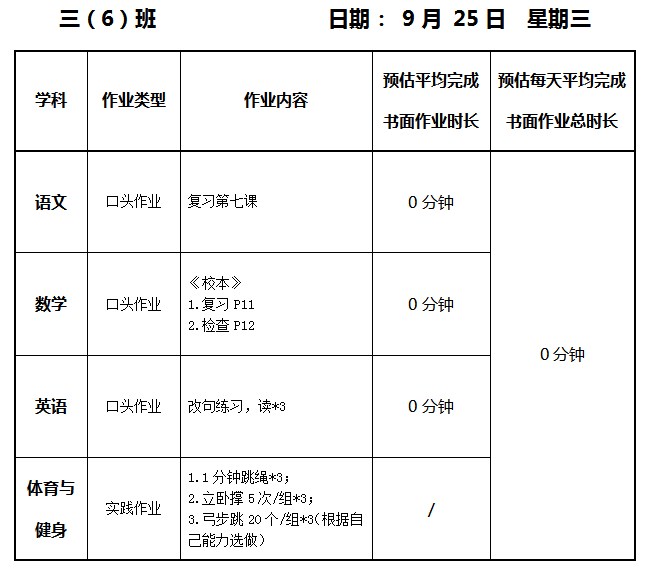 【作业公示】2024学年第一学期南翔小学作业公示(9月25日)