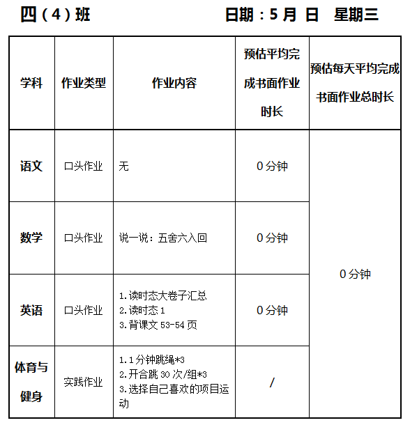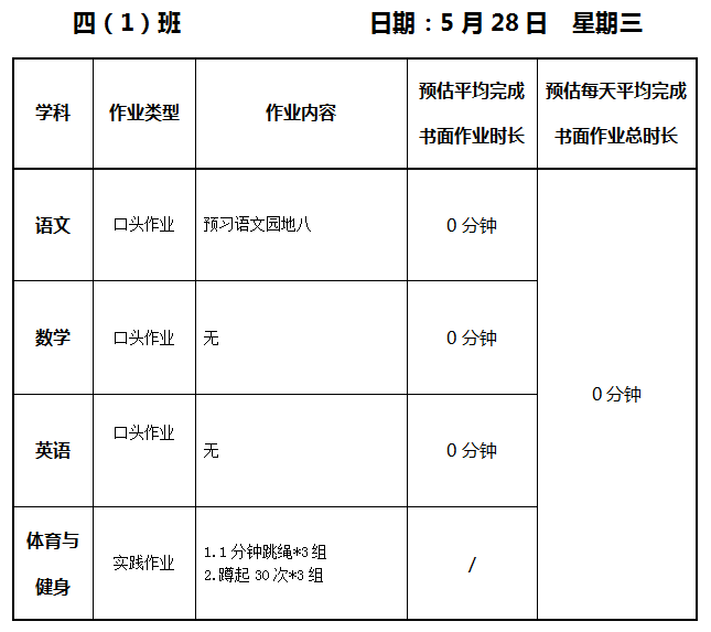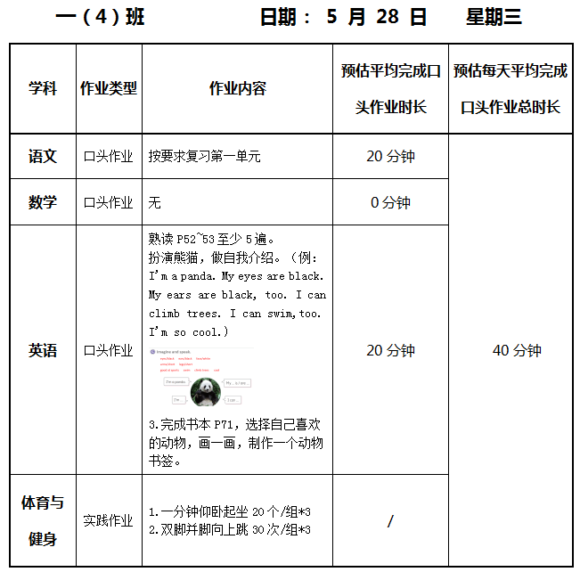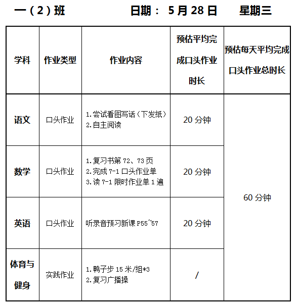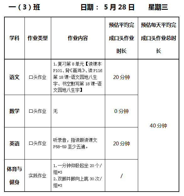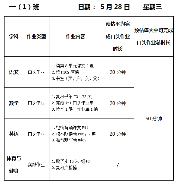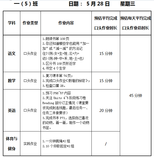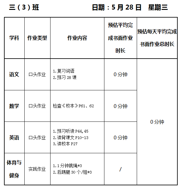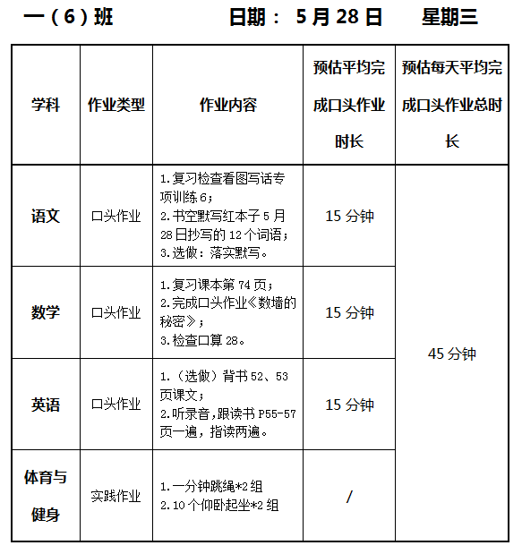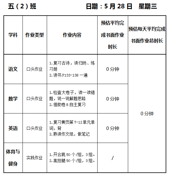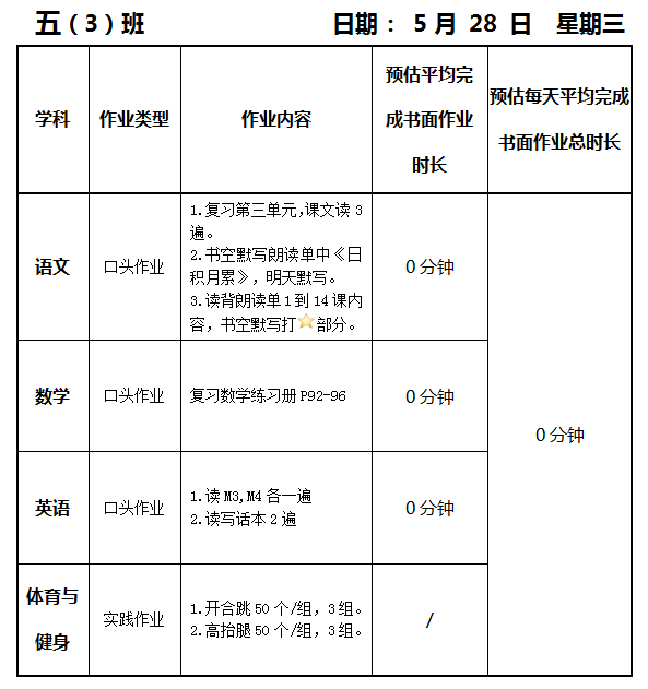 【作业公示】2024学年第二学期南翔小学作业公示(5月28日)