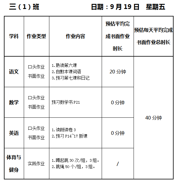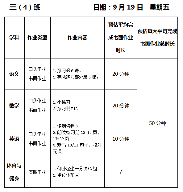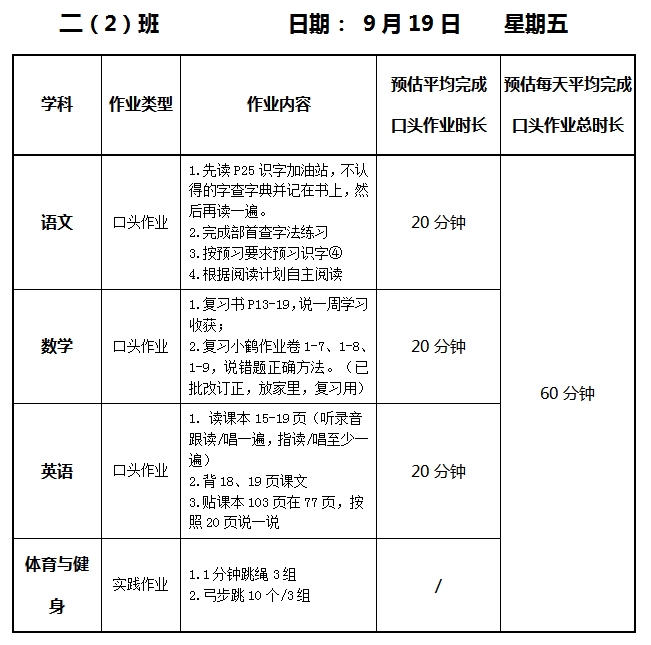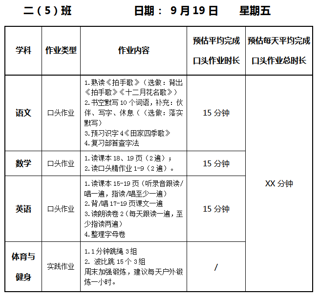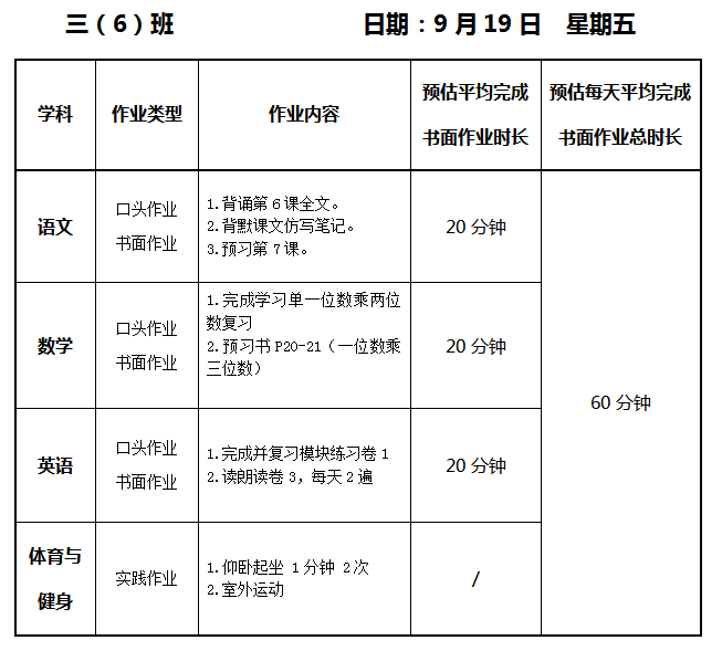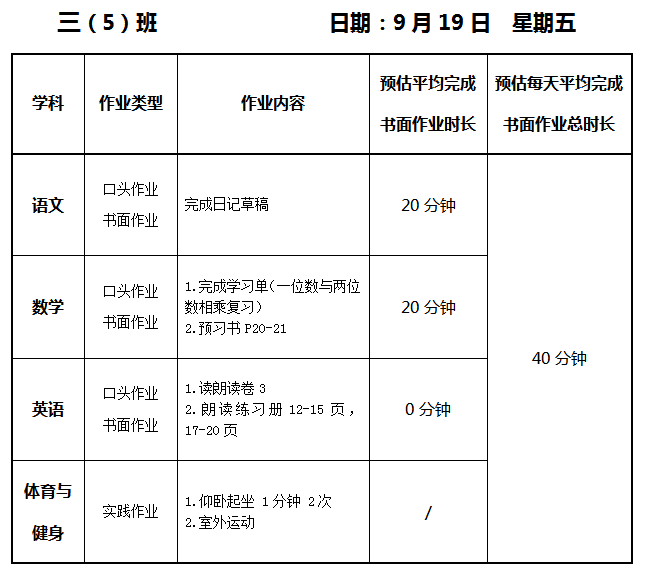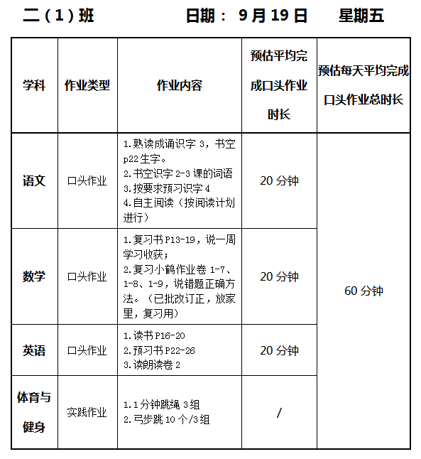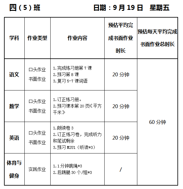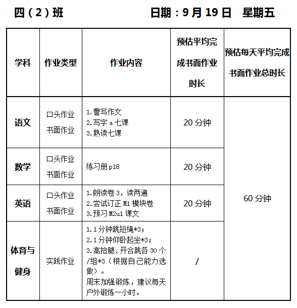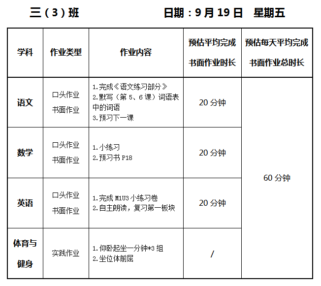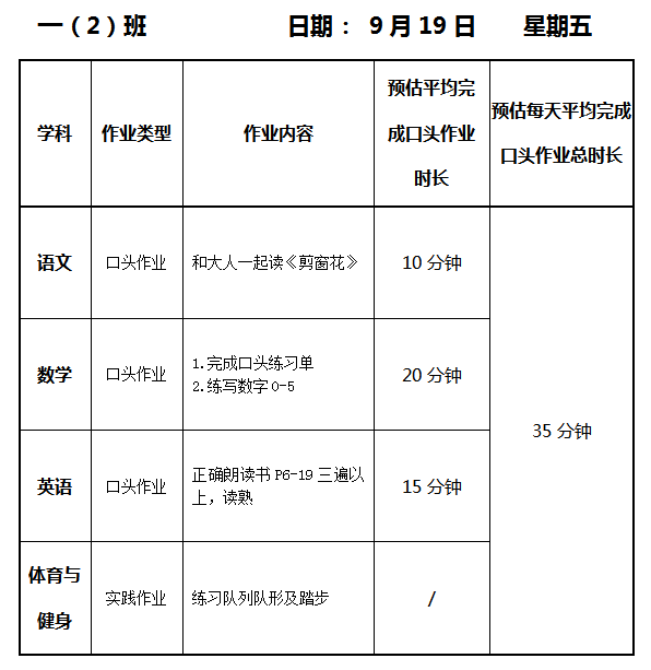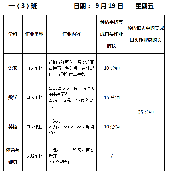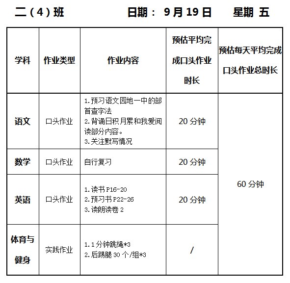 【作业公示】2025学年第一学期南翔小学作业公示(9月19日)