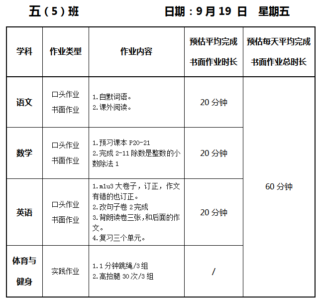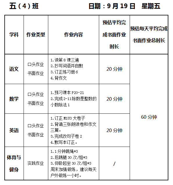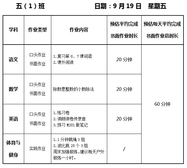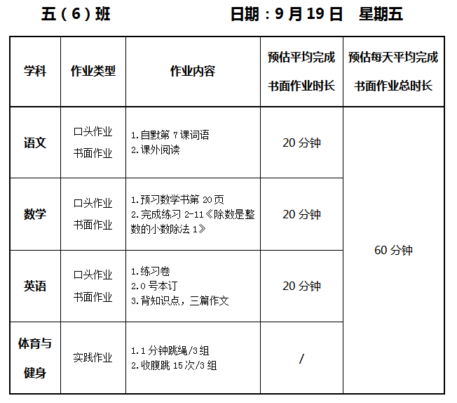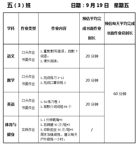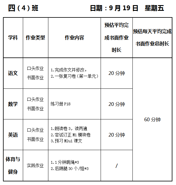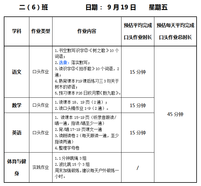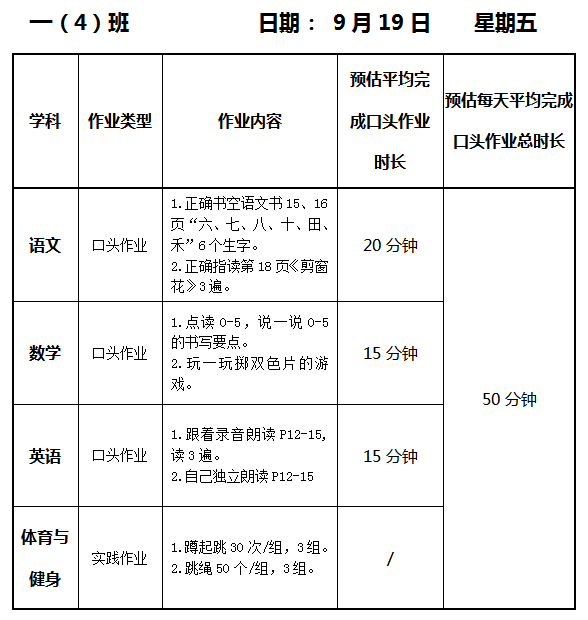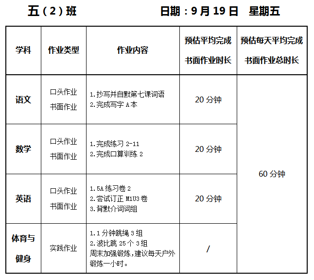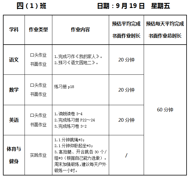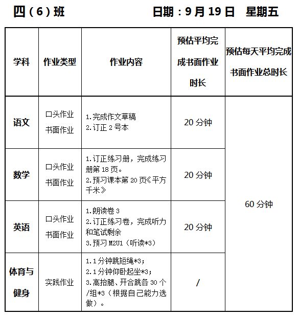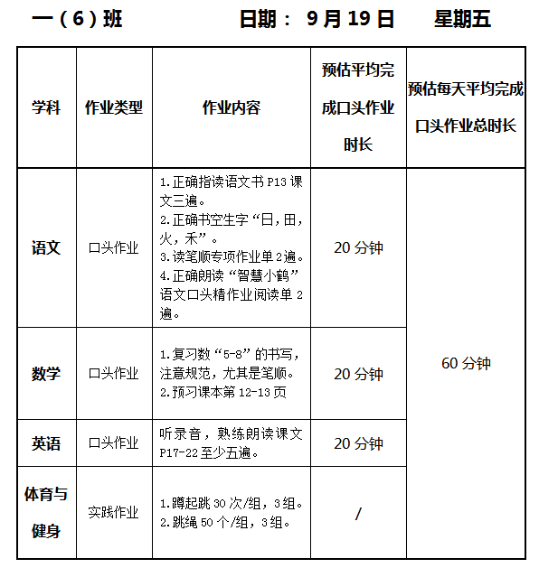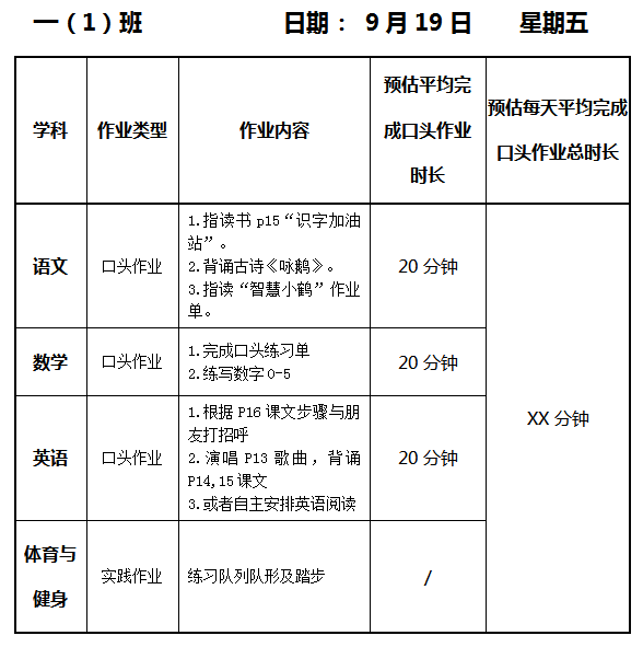 【作业公示】2025学年第一学期南翔小学作业公示(9月19日)