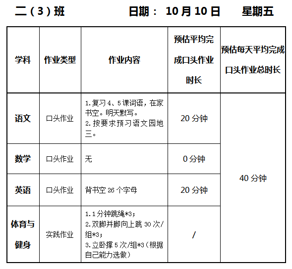 【作业公示】2025学年第一学期南翔小学作业公示(10月10日)