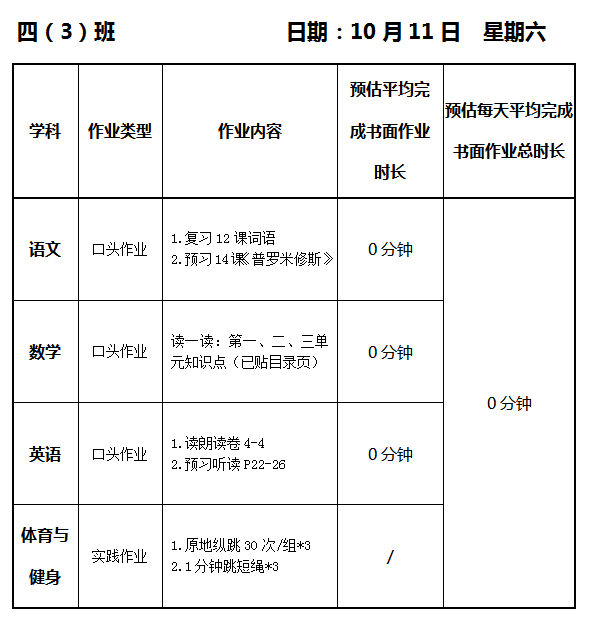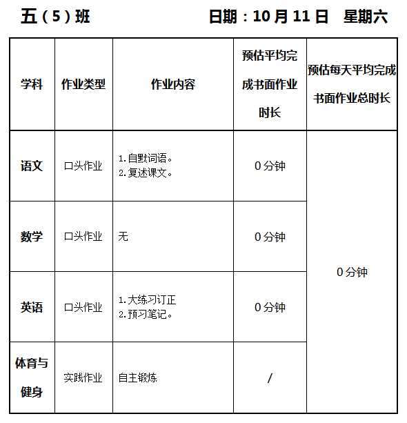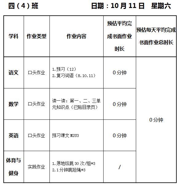 【作业公示】2025学年第一学期南翔小学作业公示(10月11日)