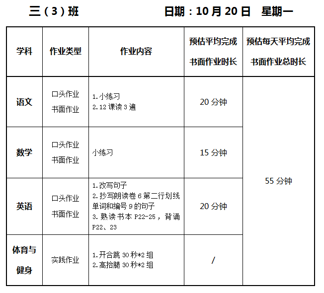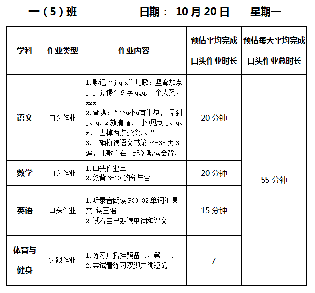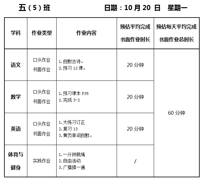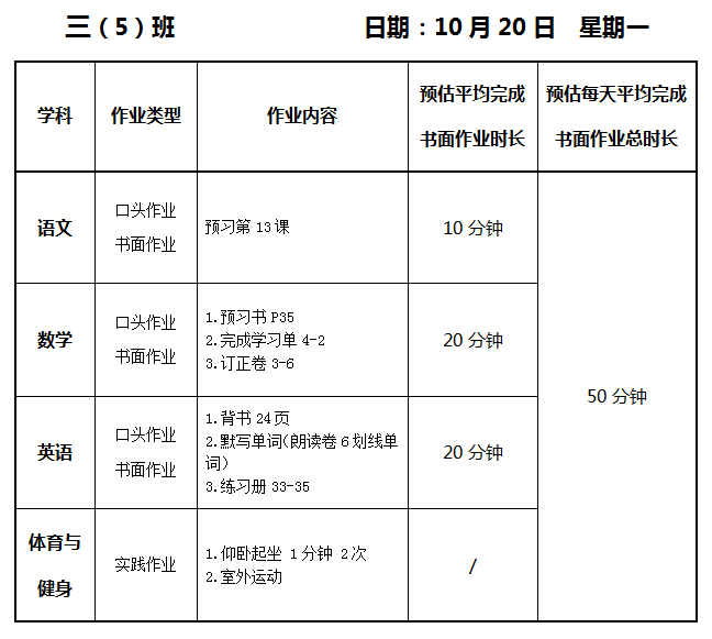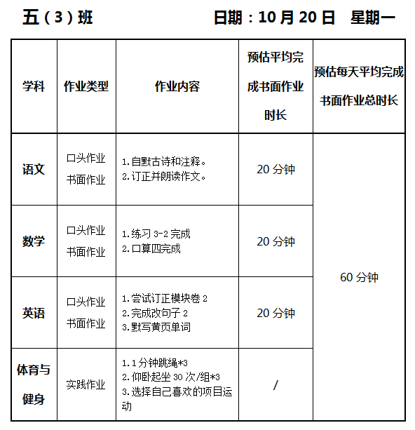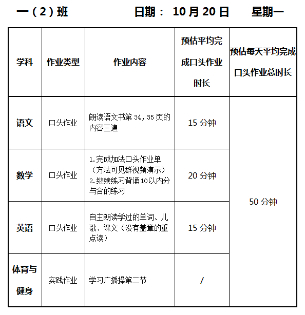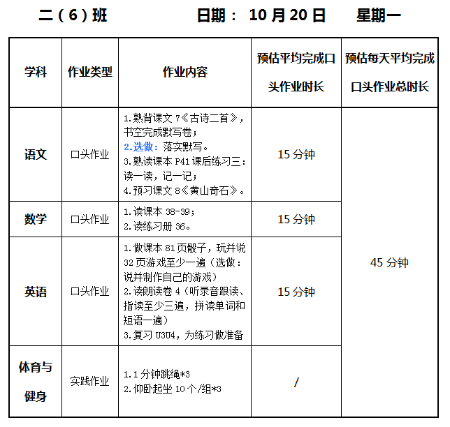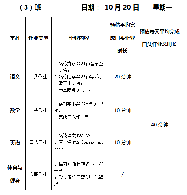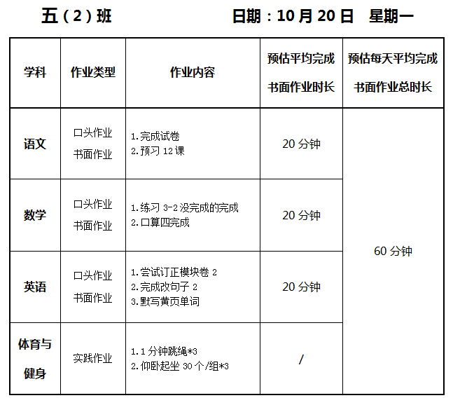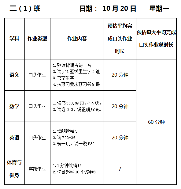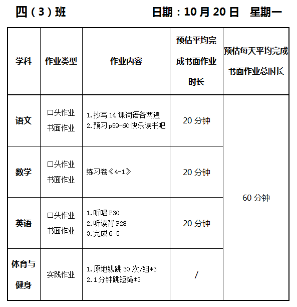 【作业公示】2025学年第一学期南翔小学作业公示(10月20日)