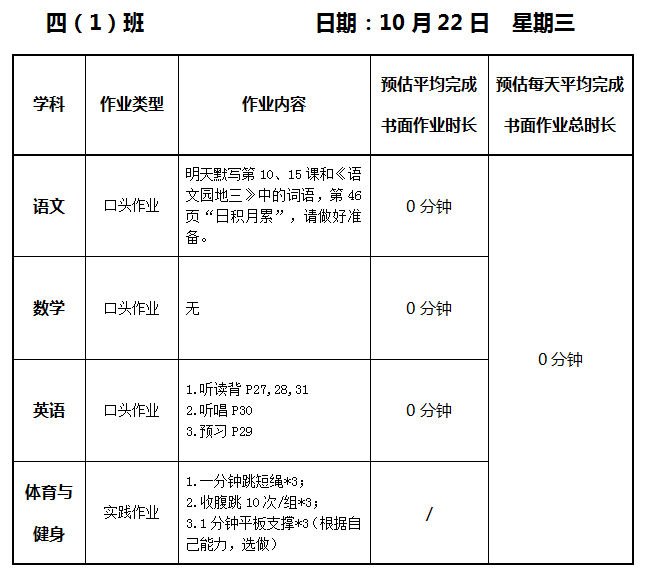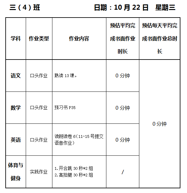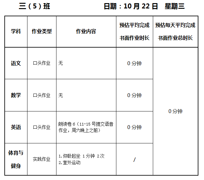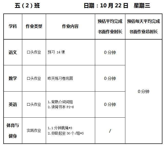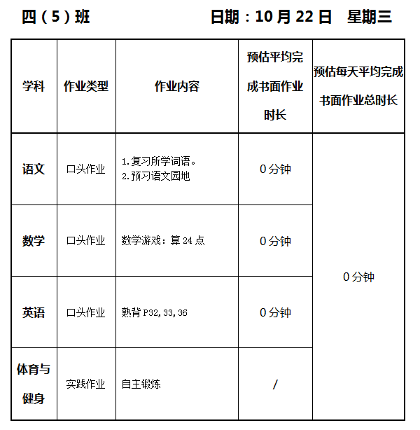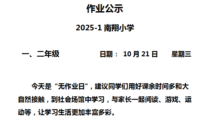【作业公示】2025学年第一学期南翔小学作业公示(10月22日)