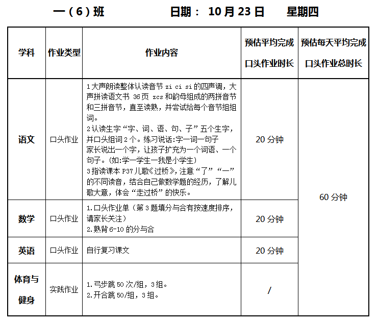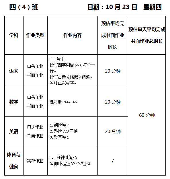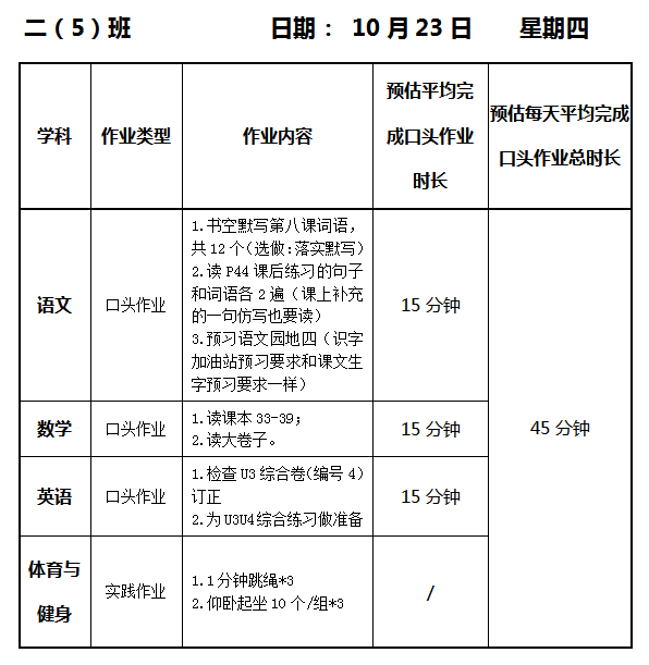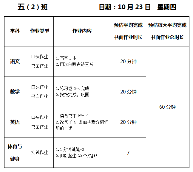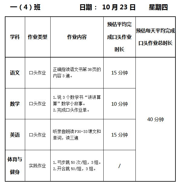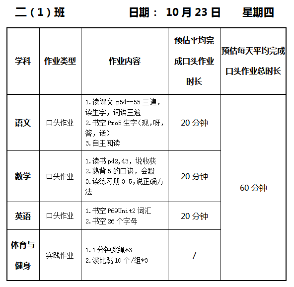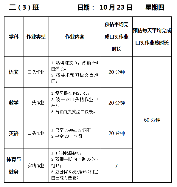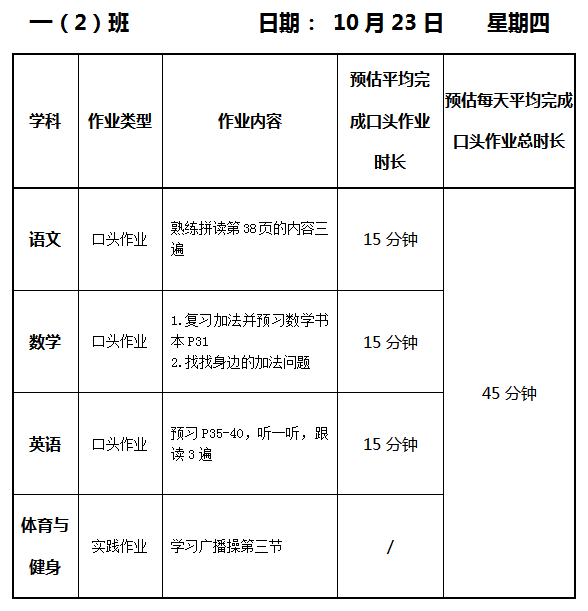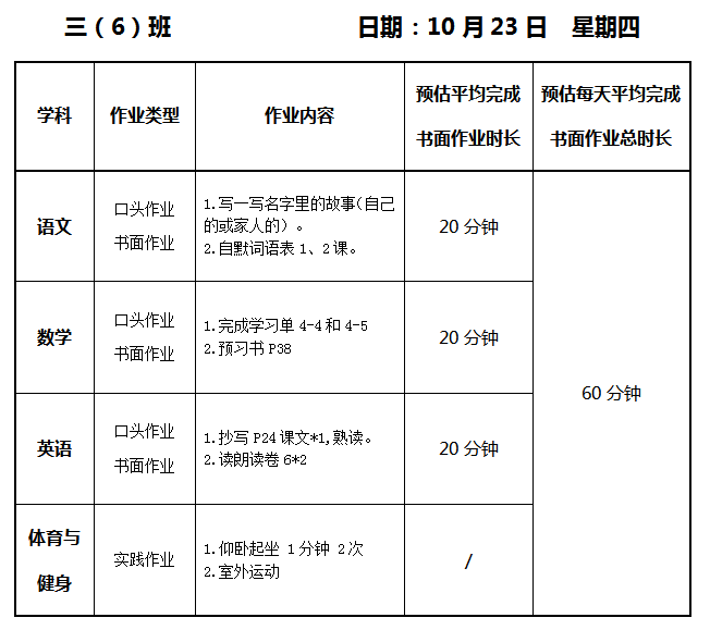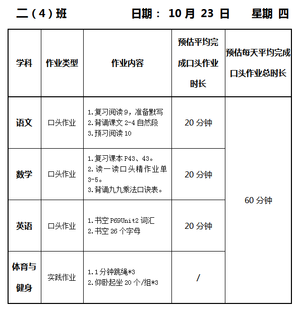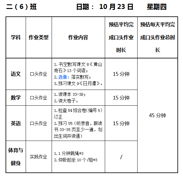 【作业公示】2025学年第一学期南翔小学作业公示(10月23日)