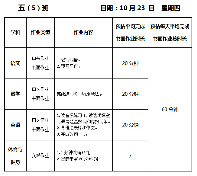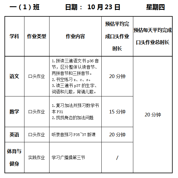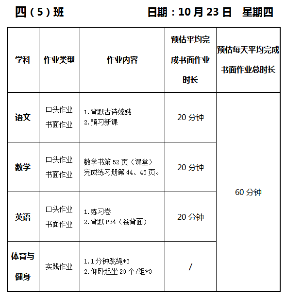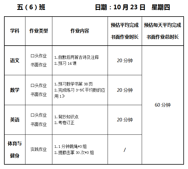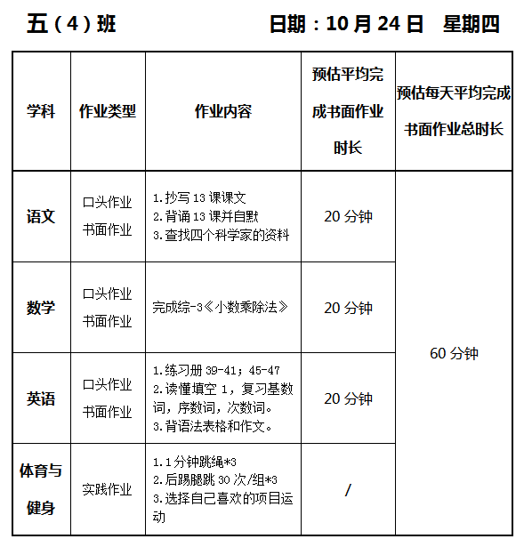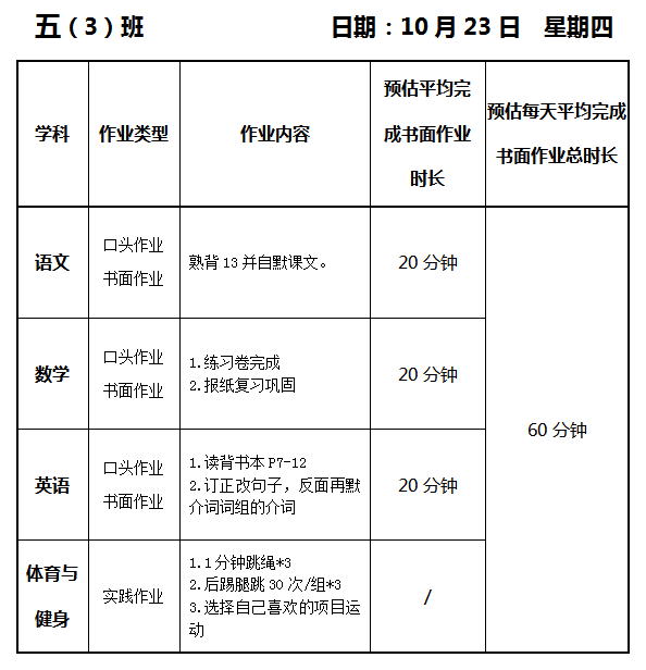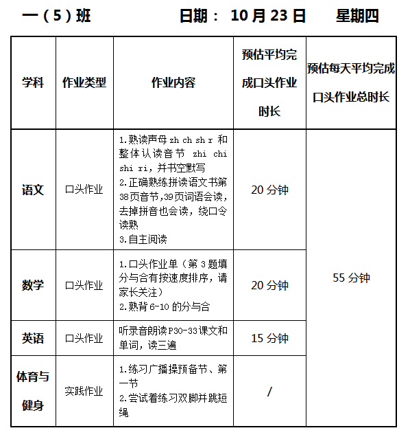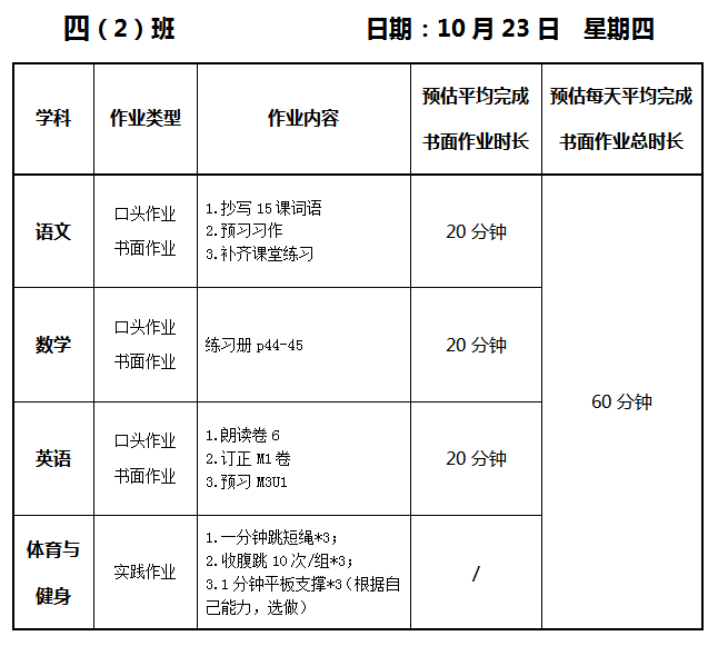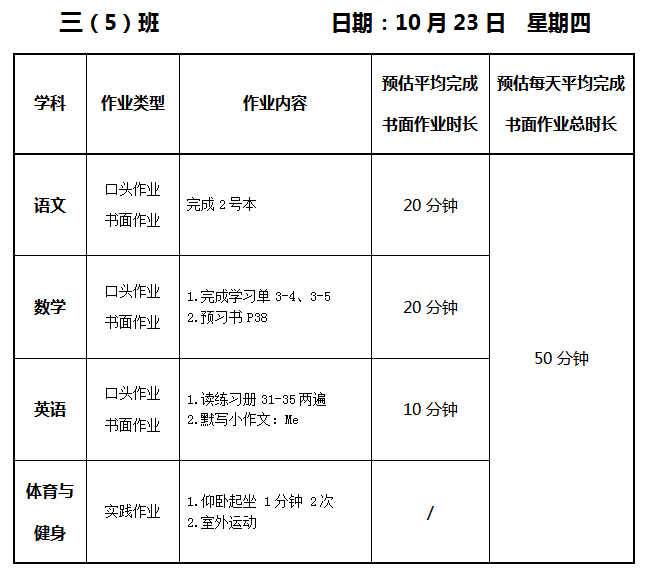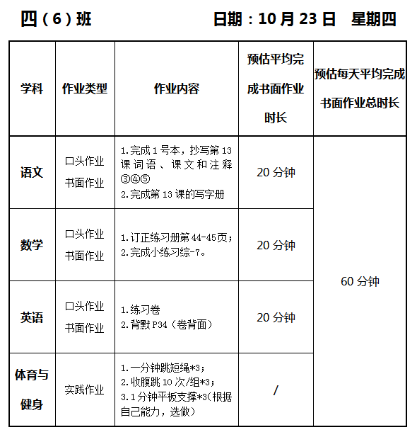 【作业公示】2025学年第一学期南翔小学作业公示(10月23日)