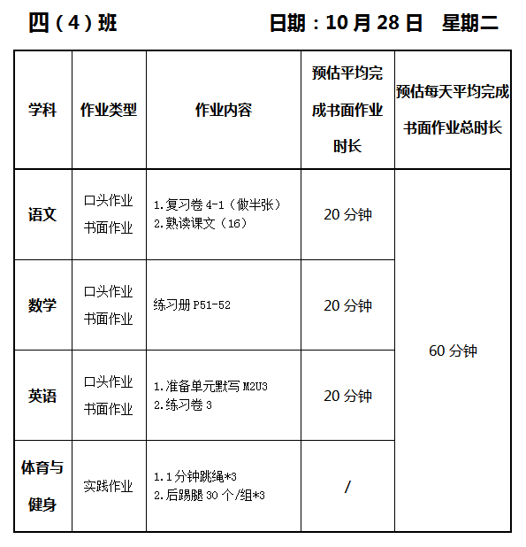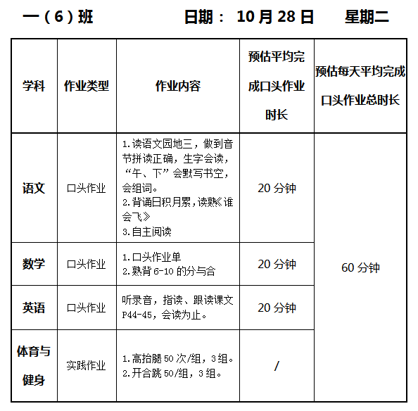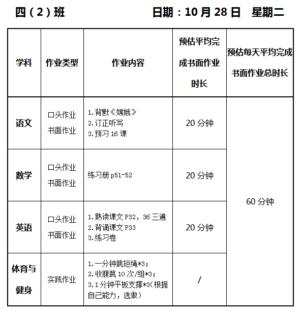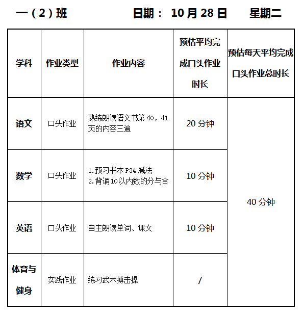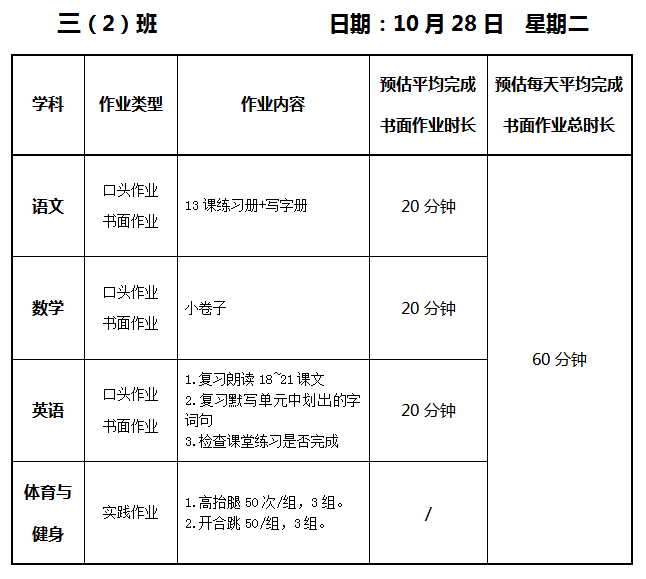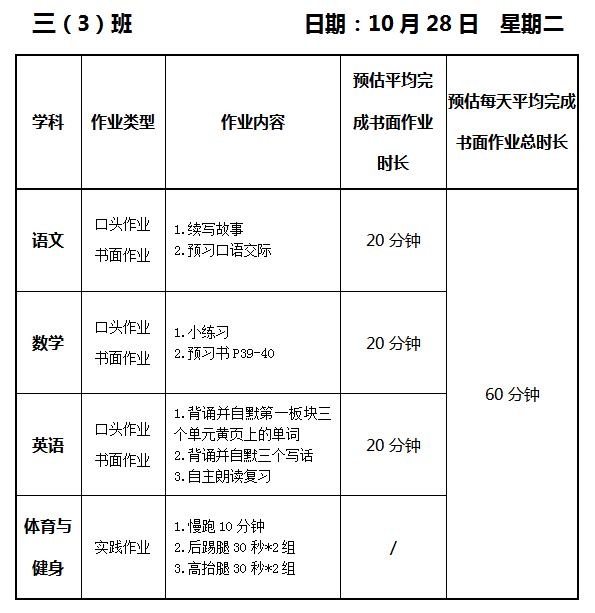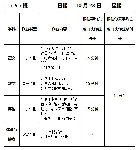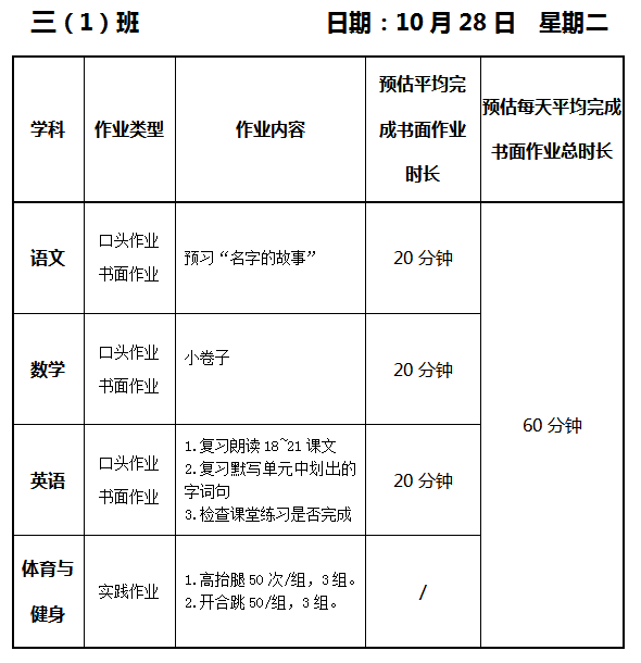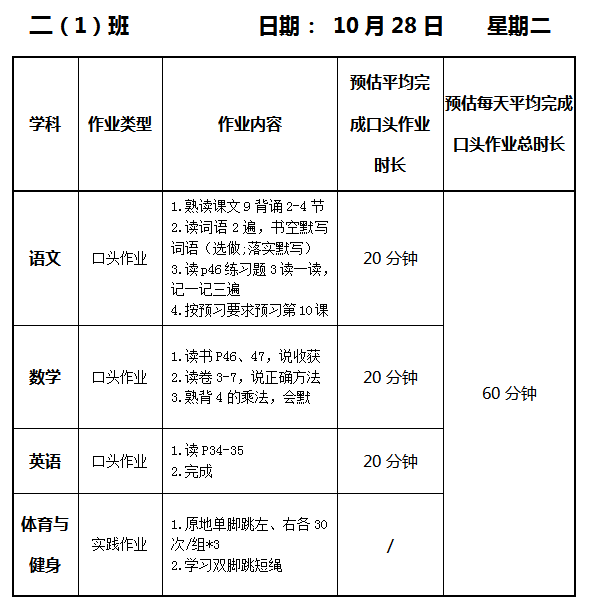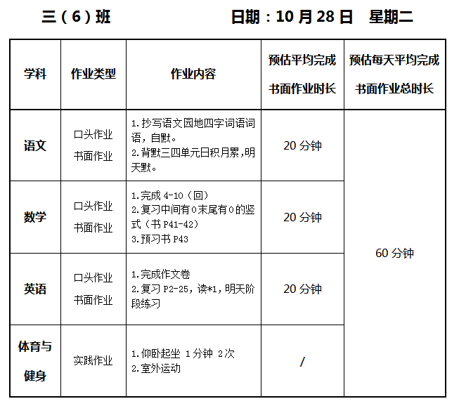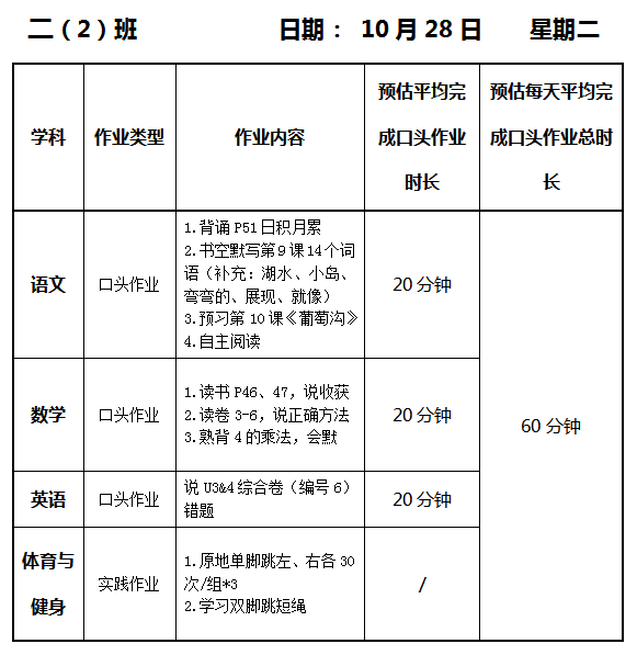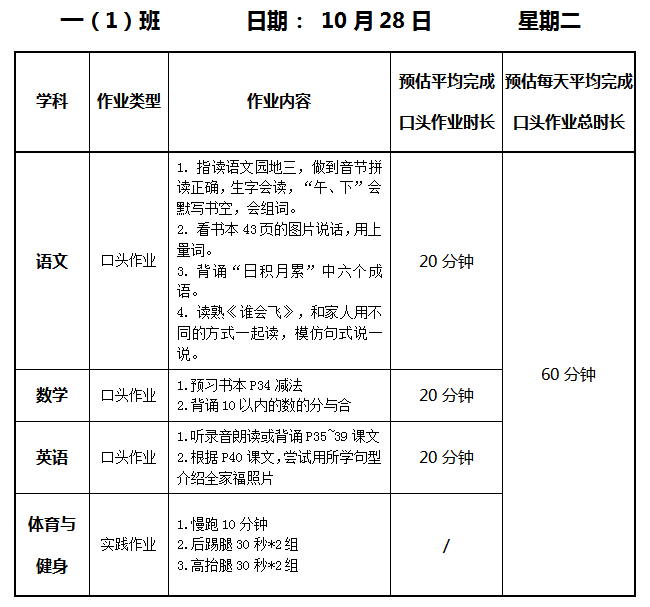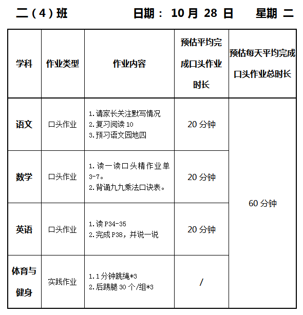 【作业公示】2025学年第一学期南翔小学作业公示(10月28日)