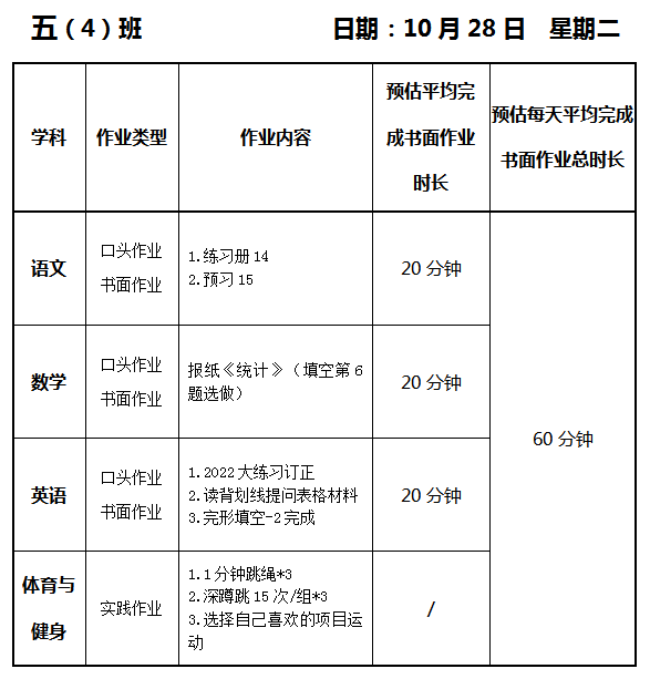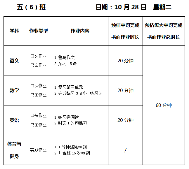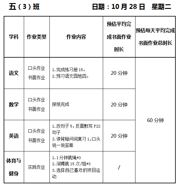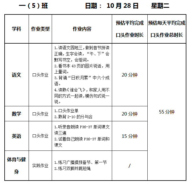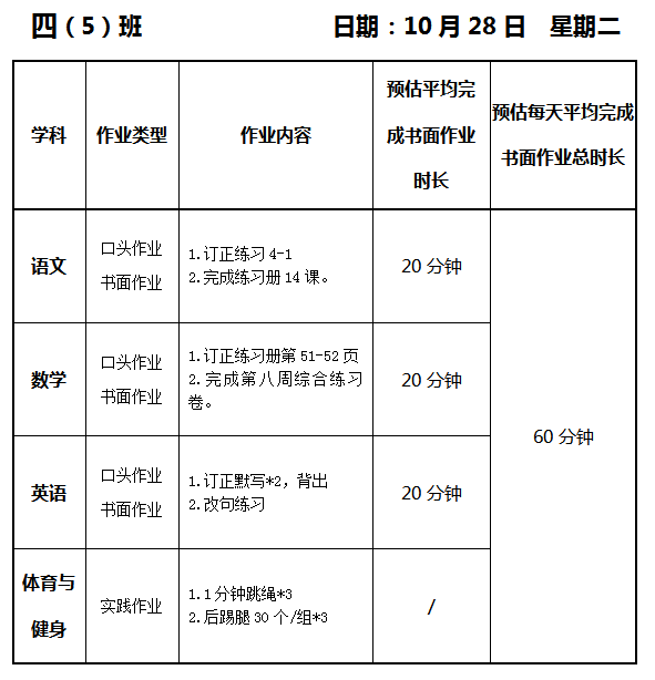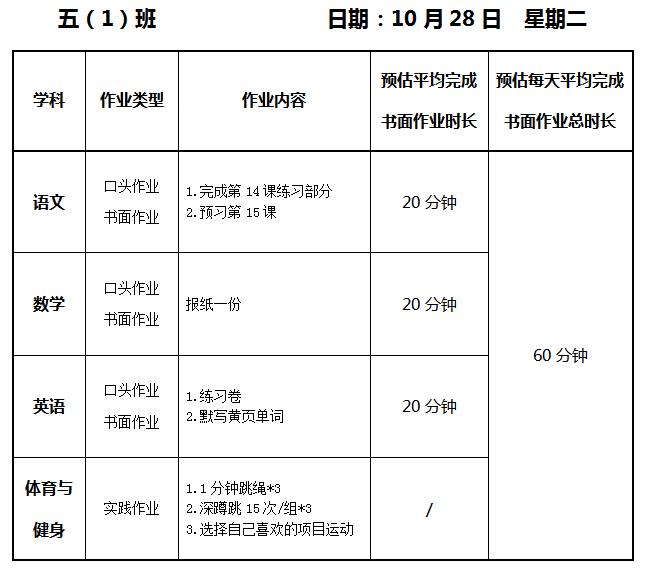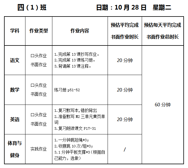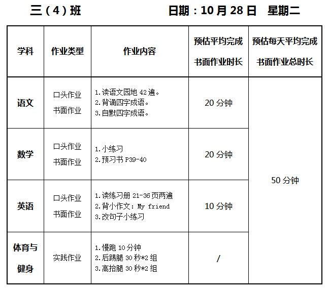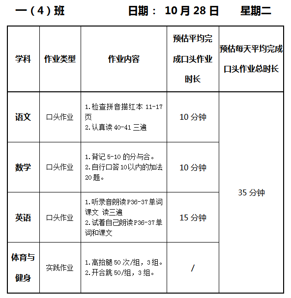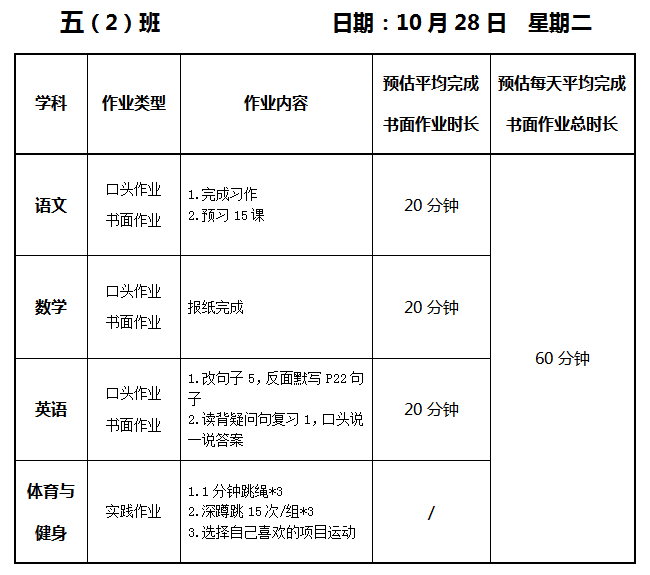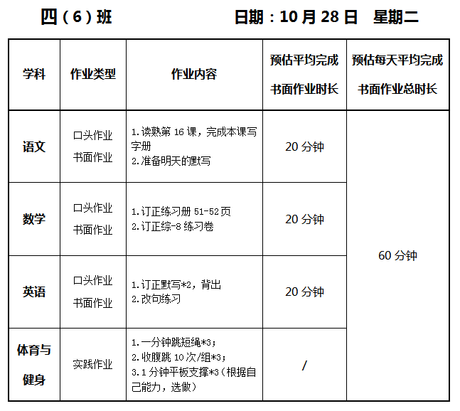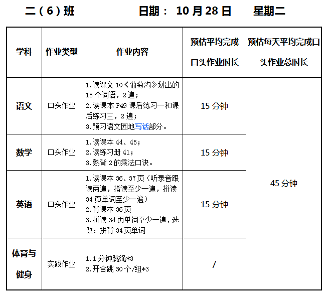 【作业公示】2025学年第一学期南翔小学作业公示(10月28日)