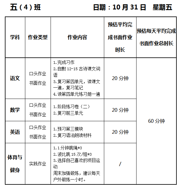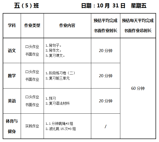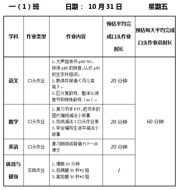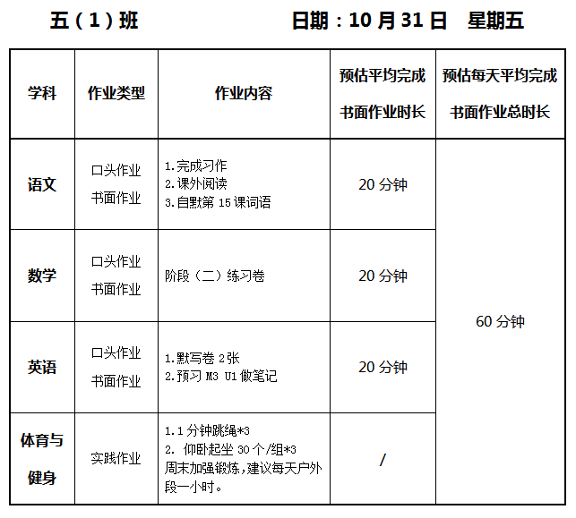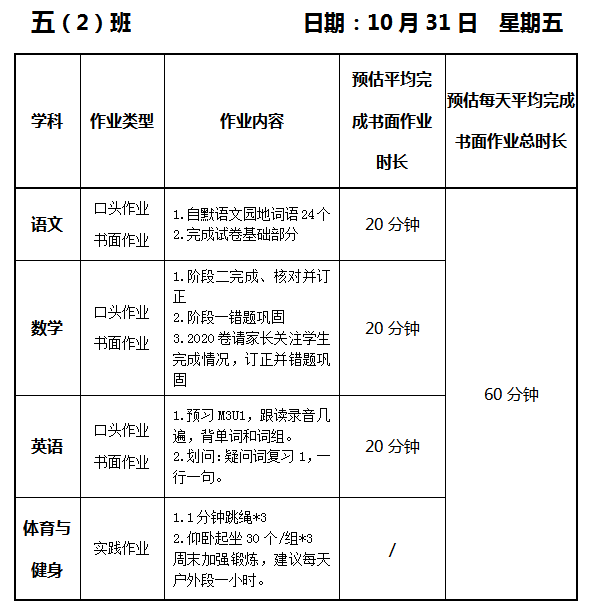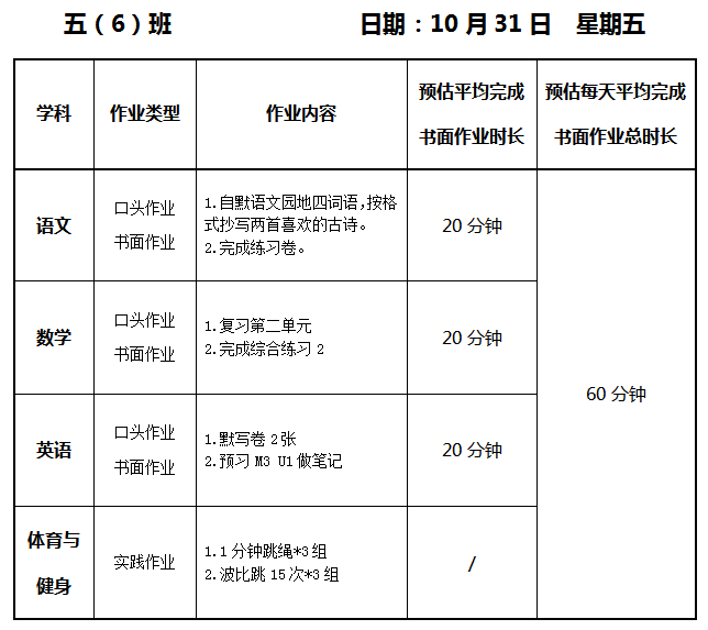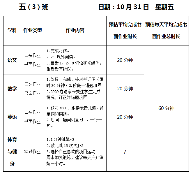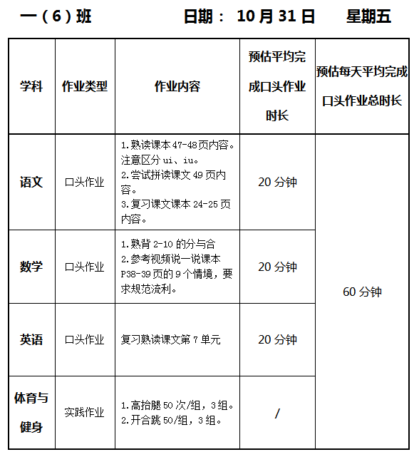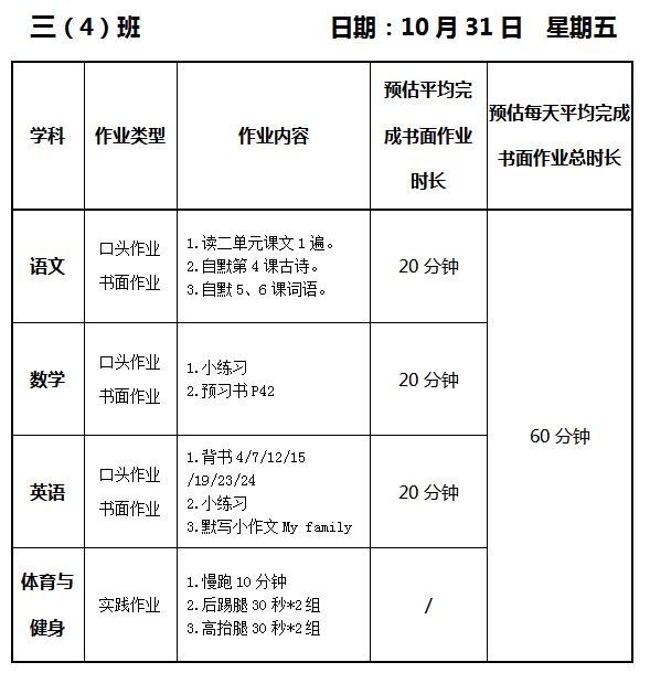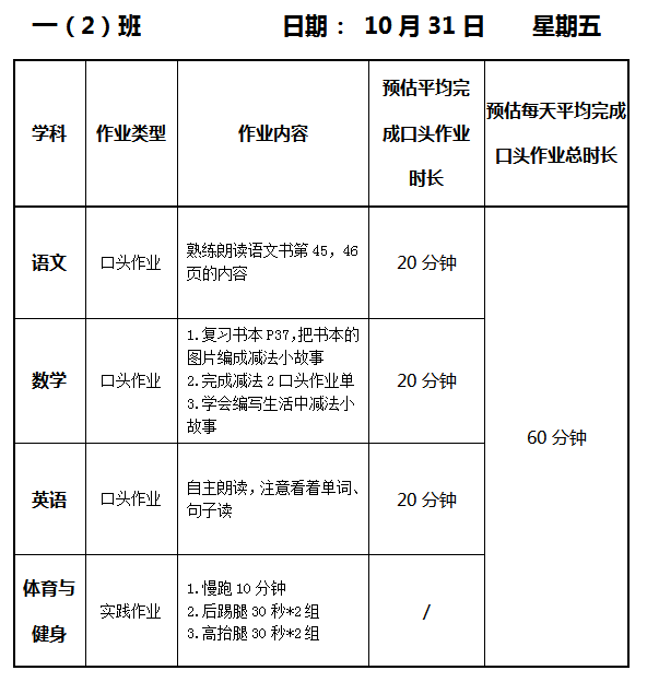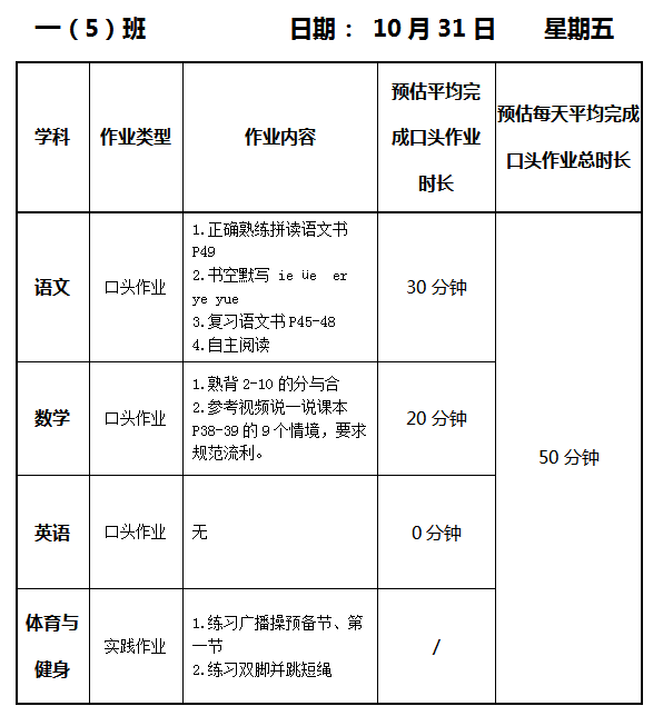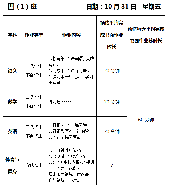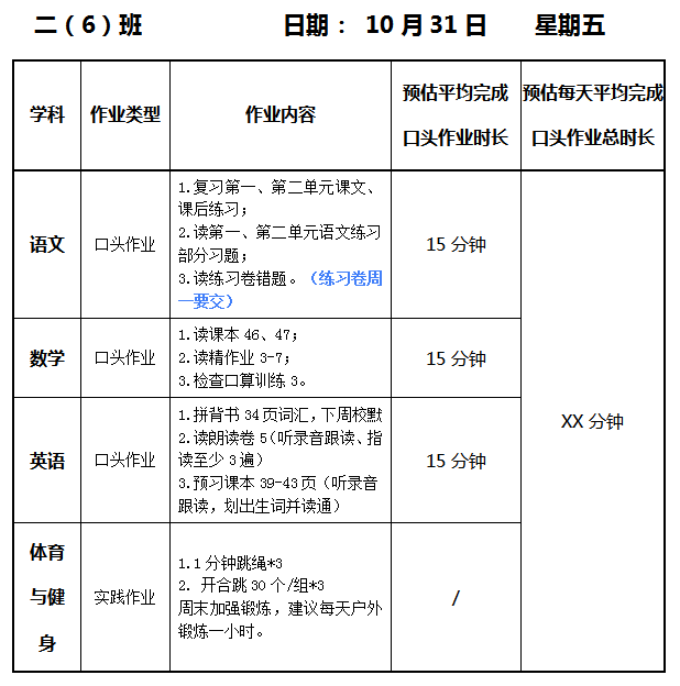 【作业公示】2025学年第一学期南翔小学作业公示(10月31日)