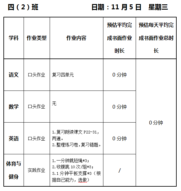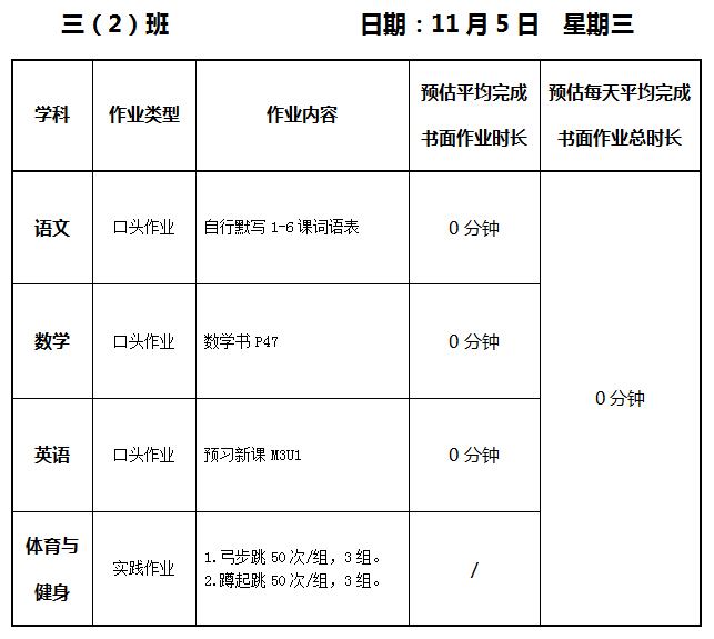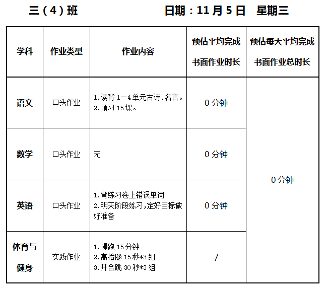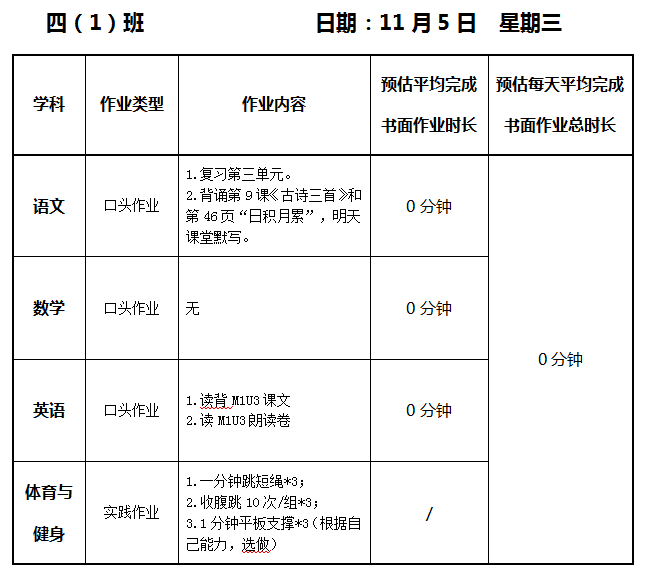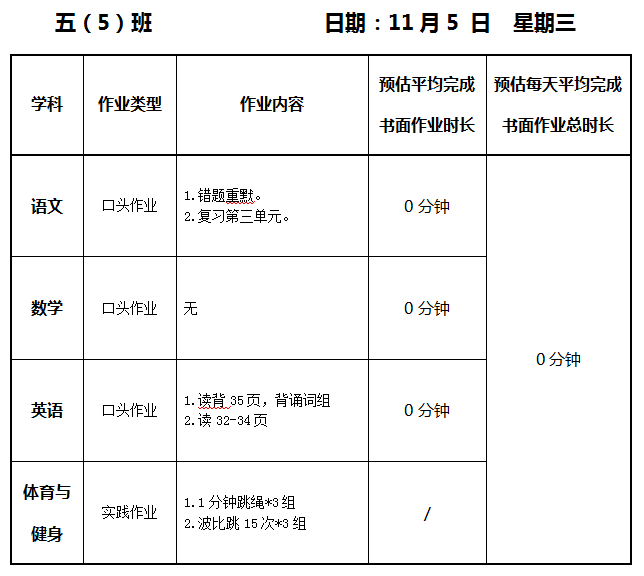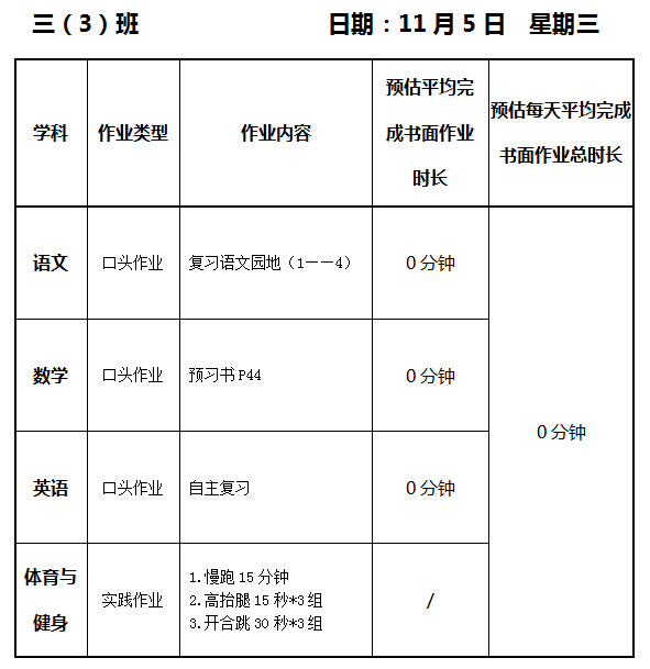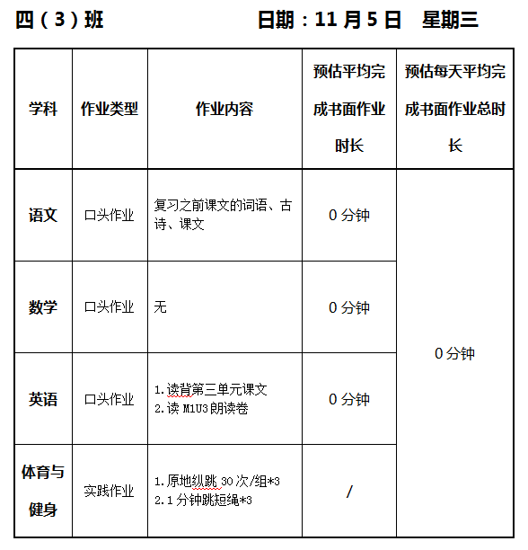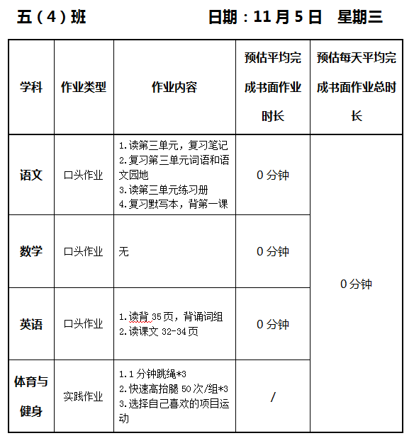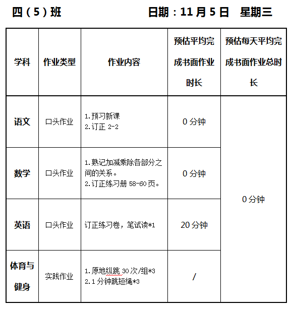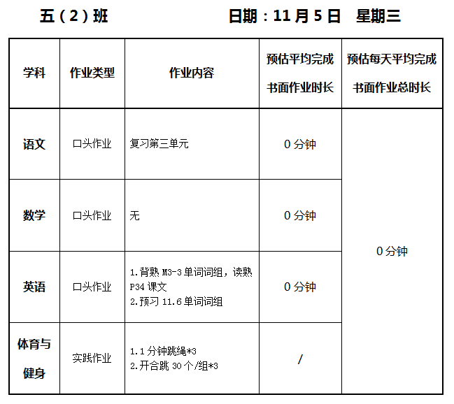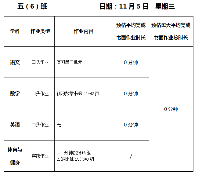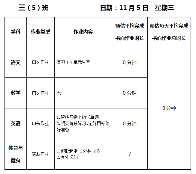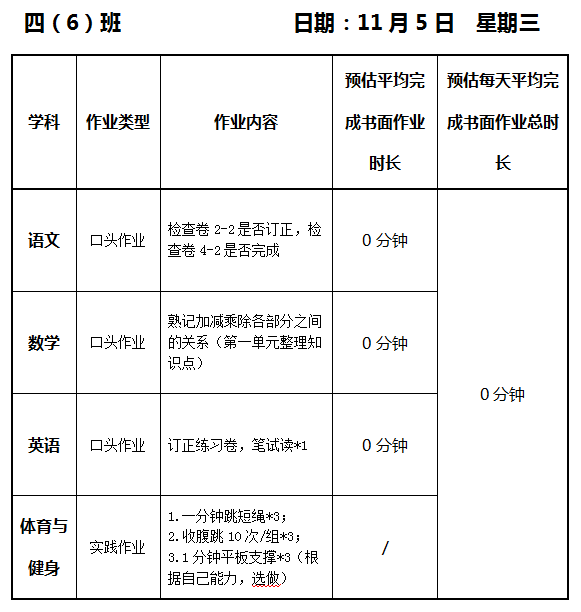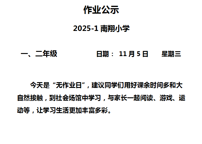 【作业公示】2025学年第一学期南翔小学作业公示(11月5日)