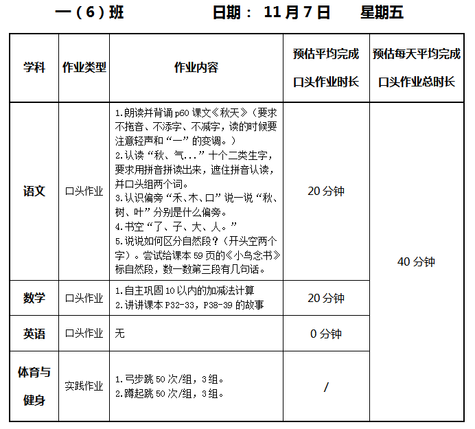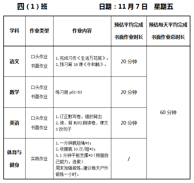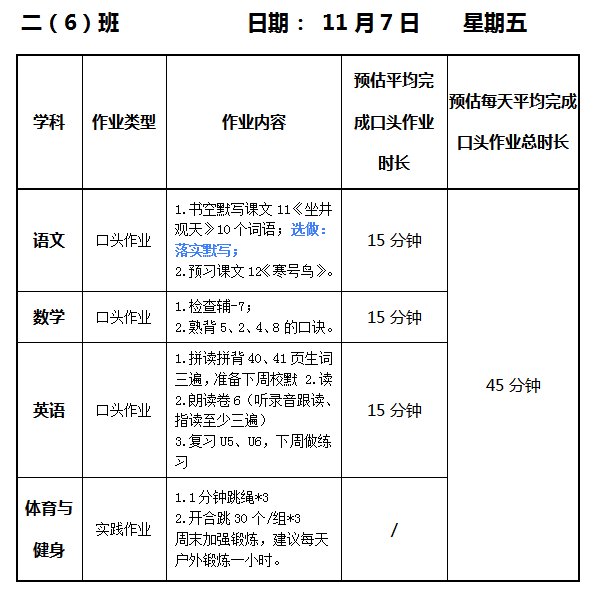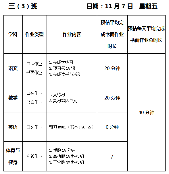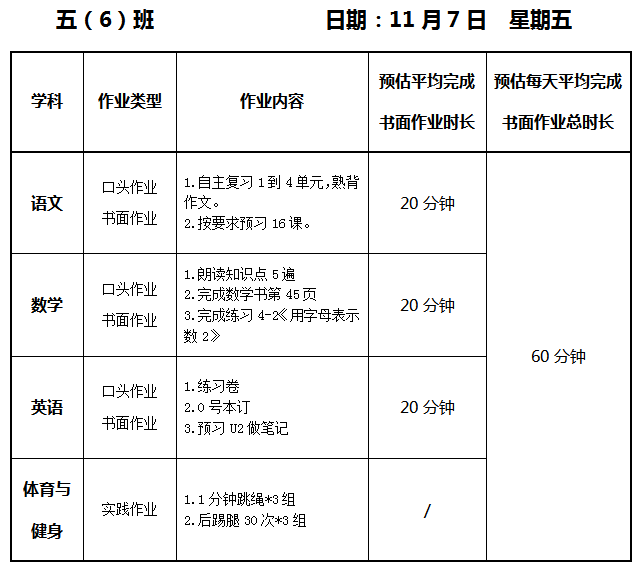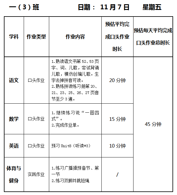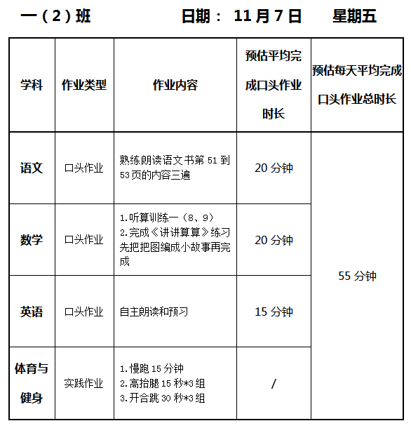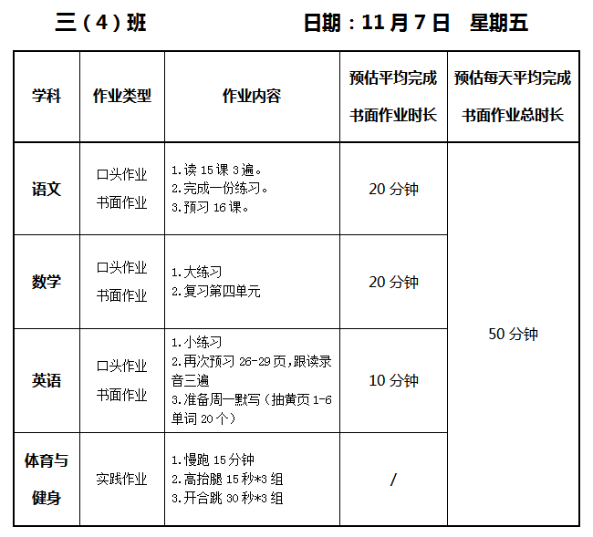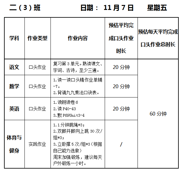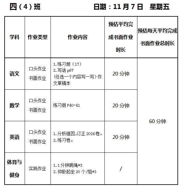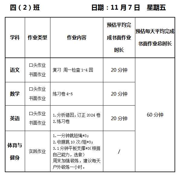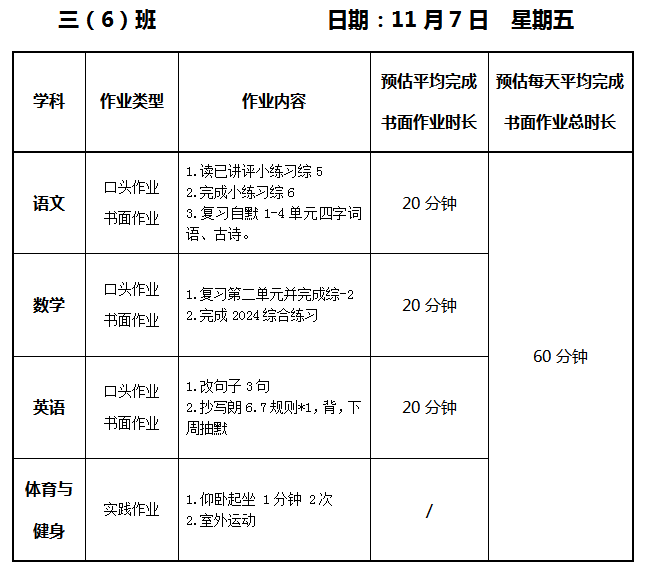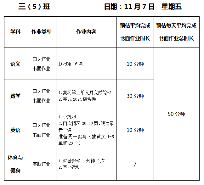 【作业公示】2025学年第一学期南翔小学作业公示(11月7日)