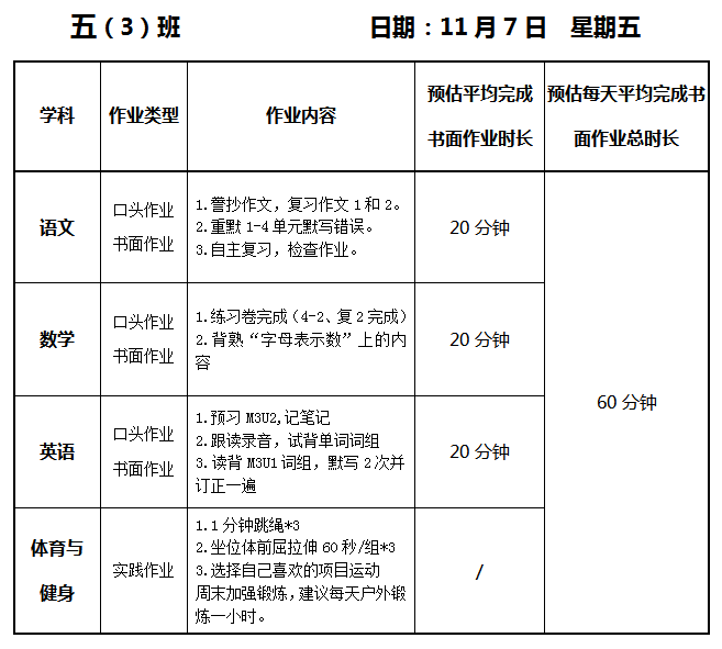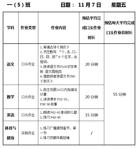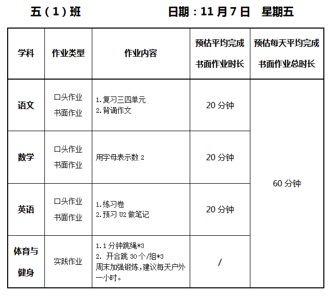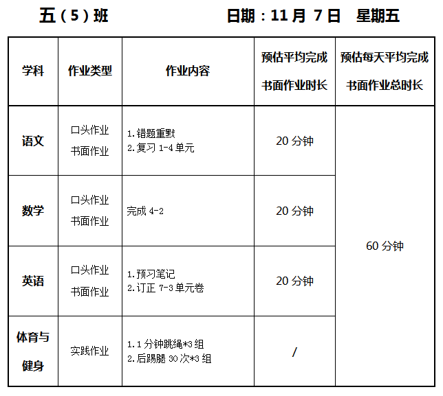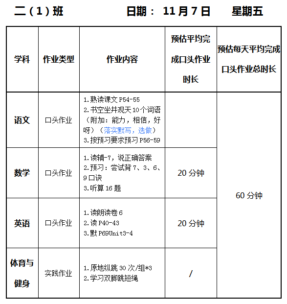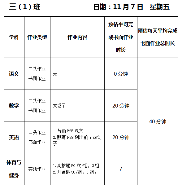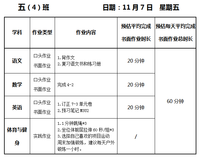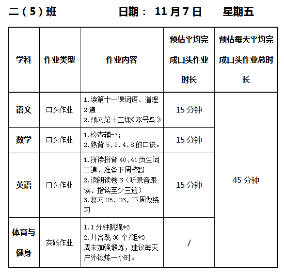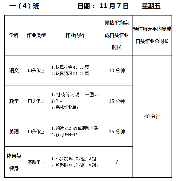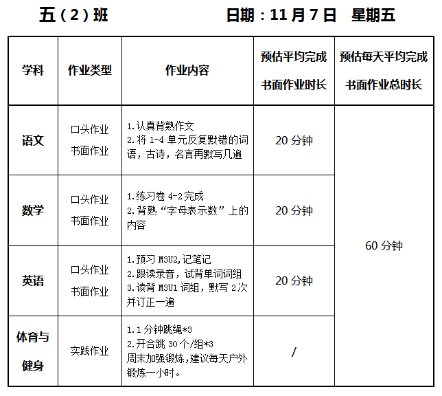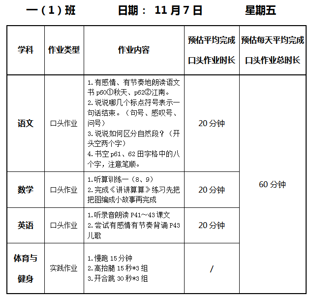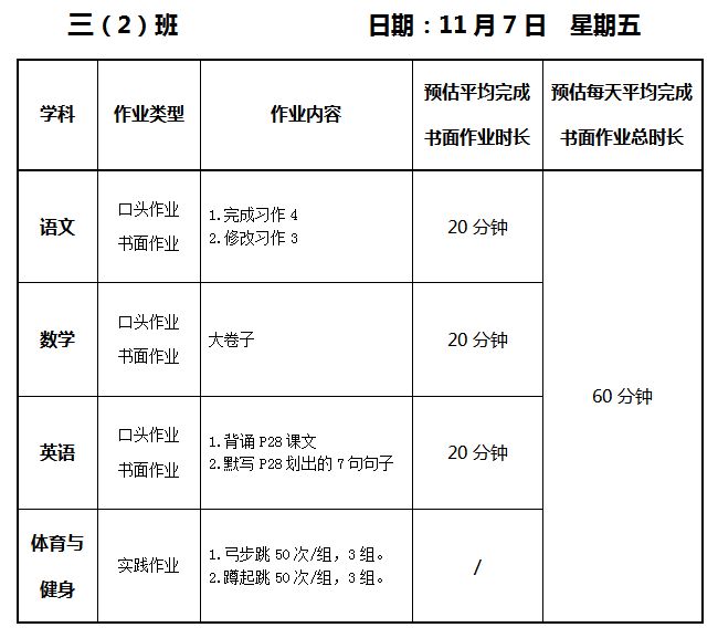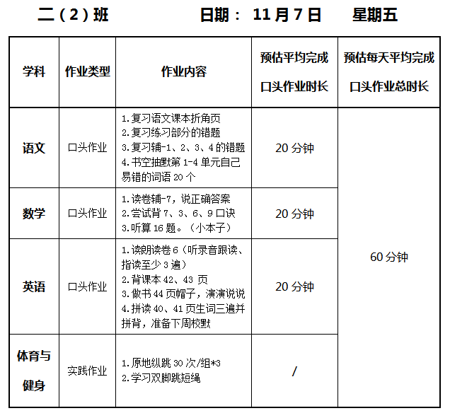 【作业公示】2025学年第一学期南翔小学作业公示(11月7日)