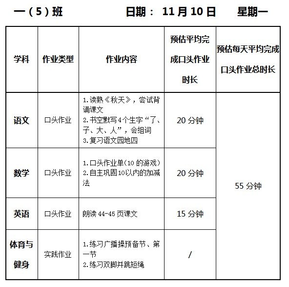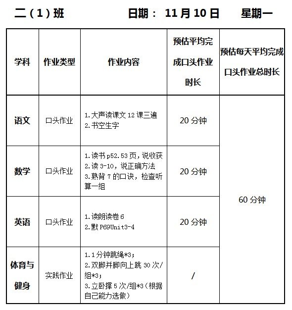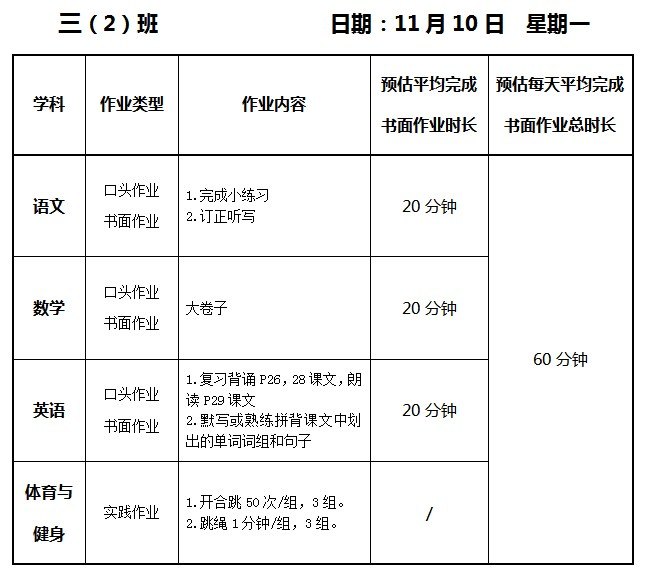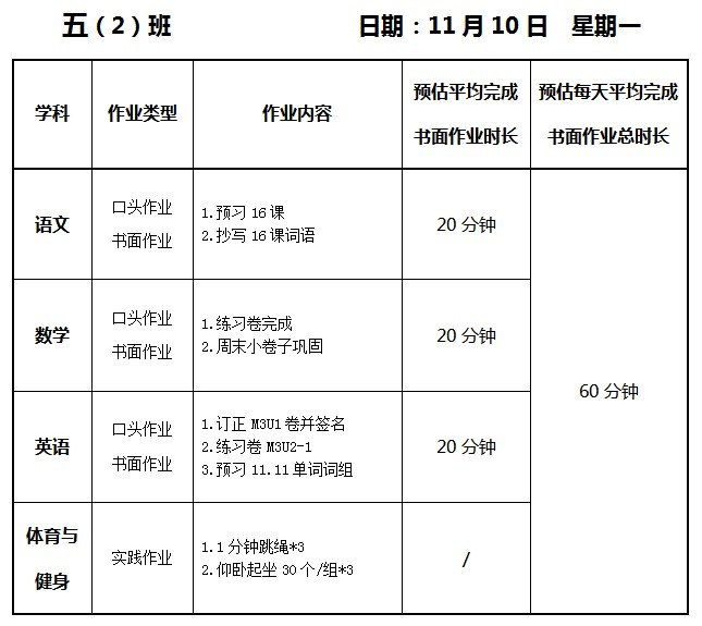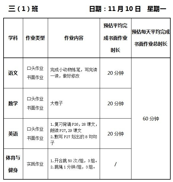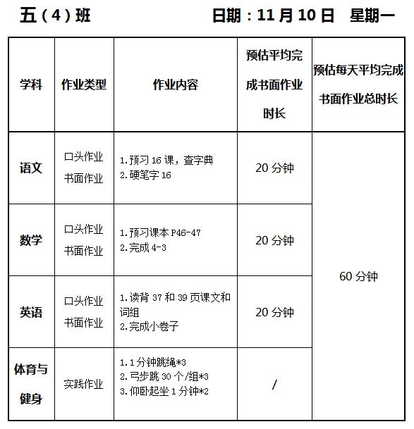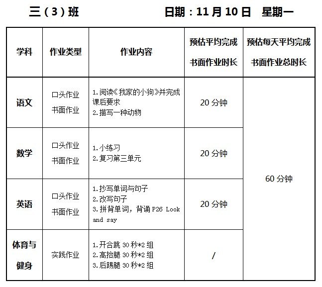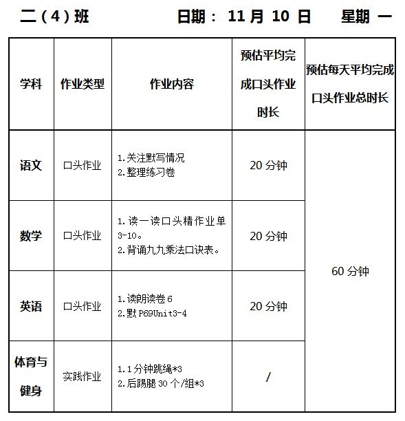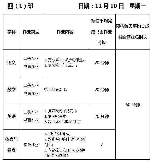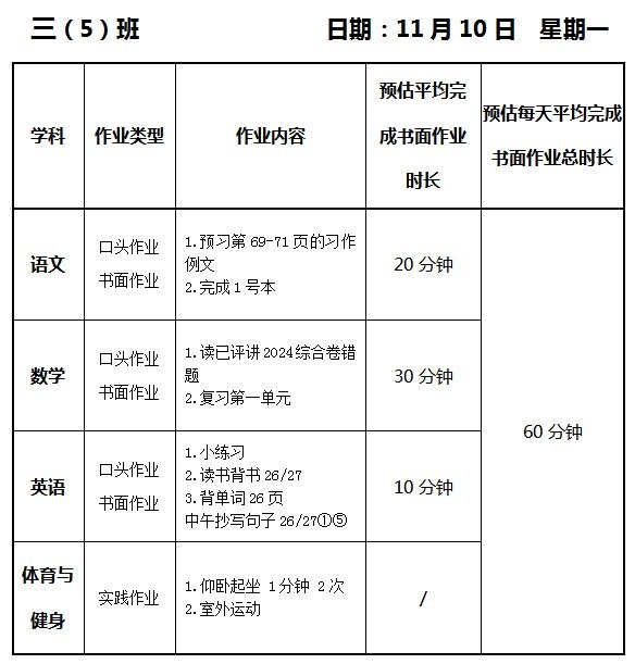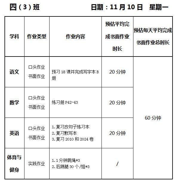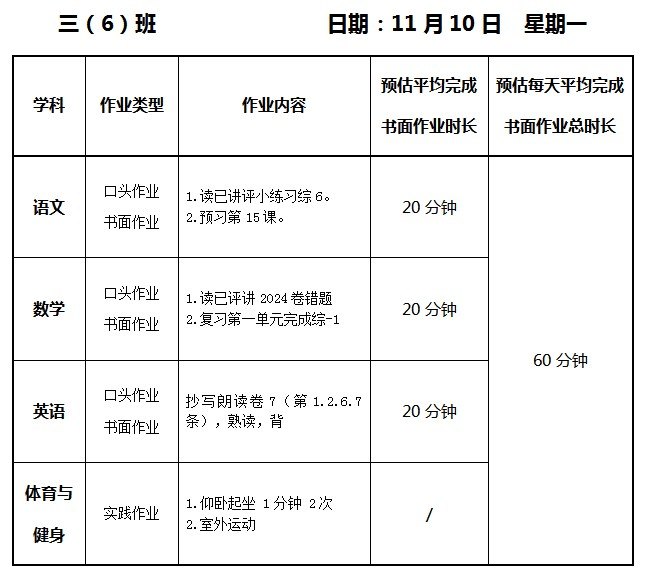 【作业公示】2025学年第一学期南翔小学作业公示(11月10日)