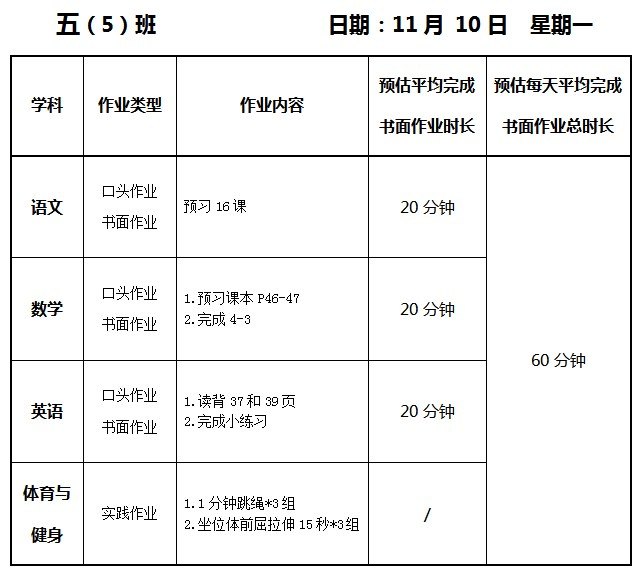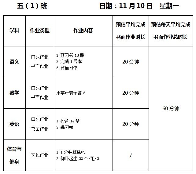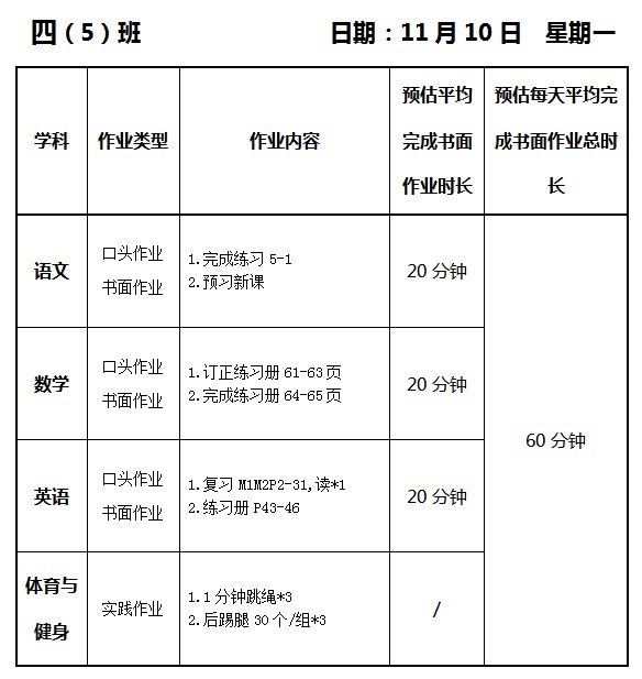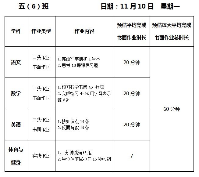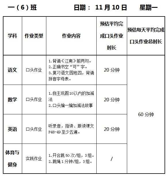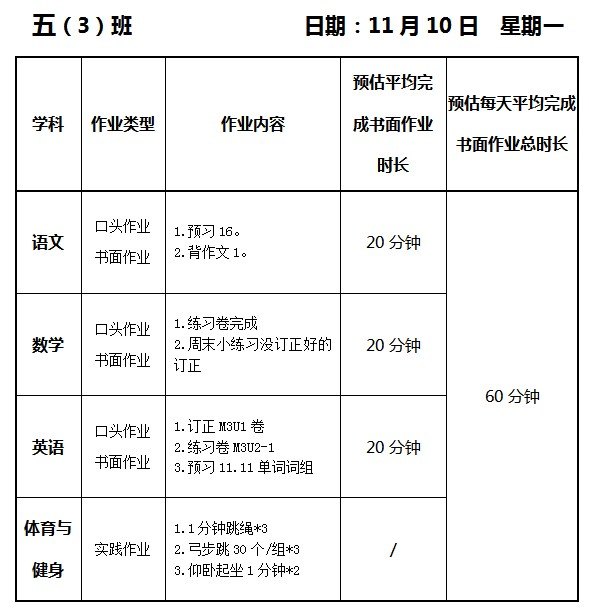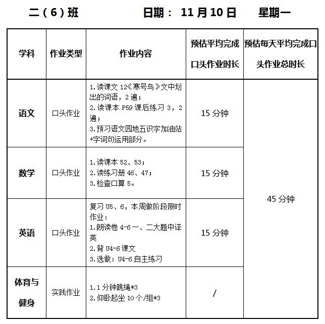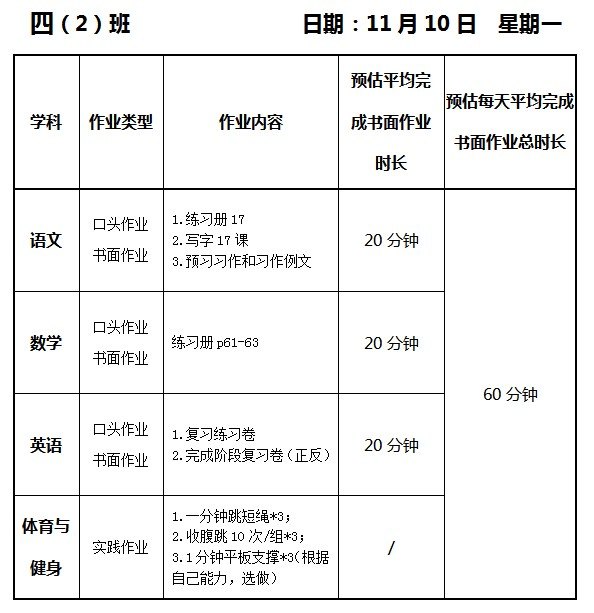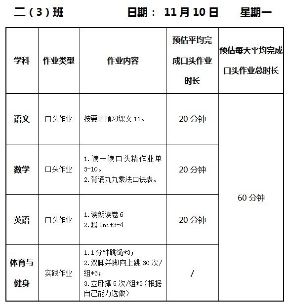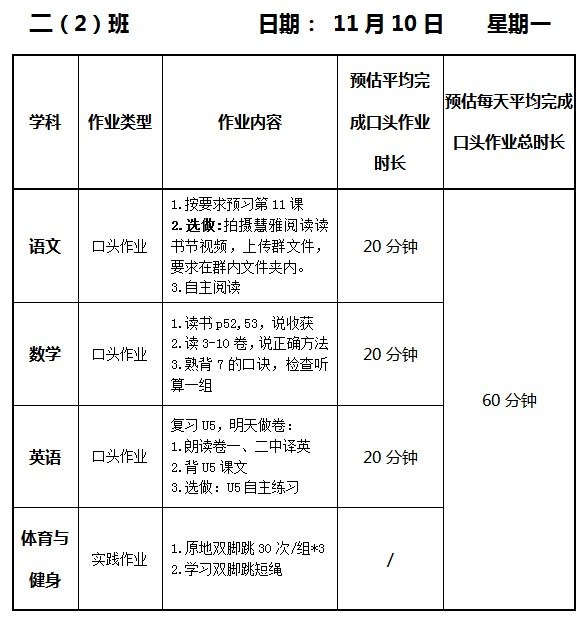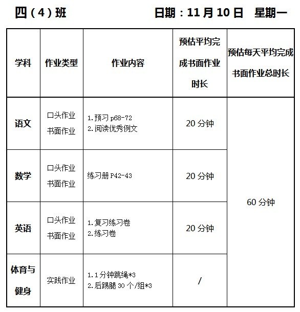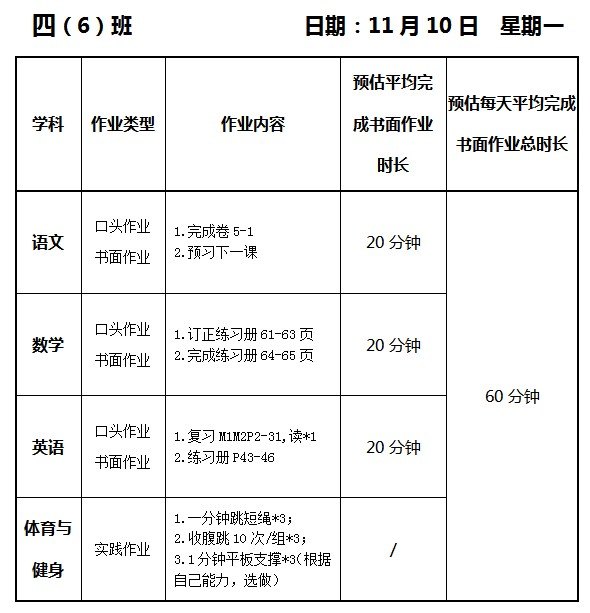 【作业公示】2025学年第一学期南翔小学作业公示(11月10日)