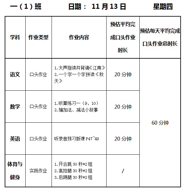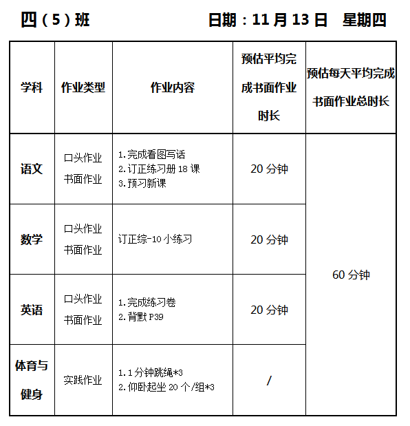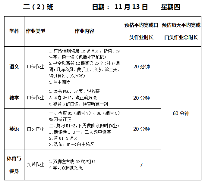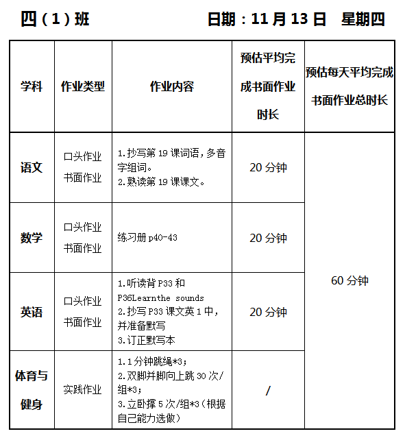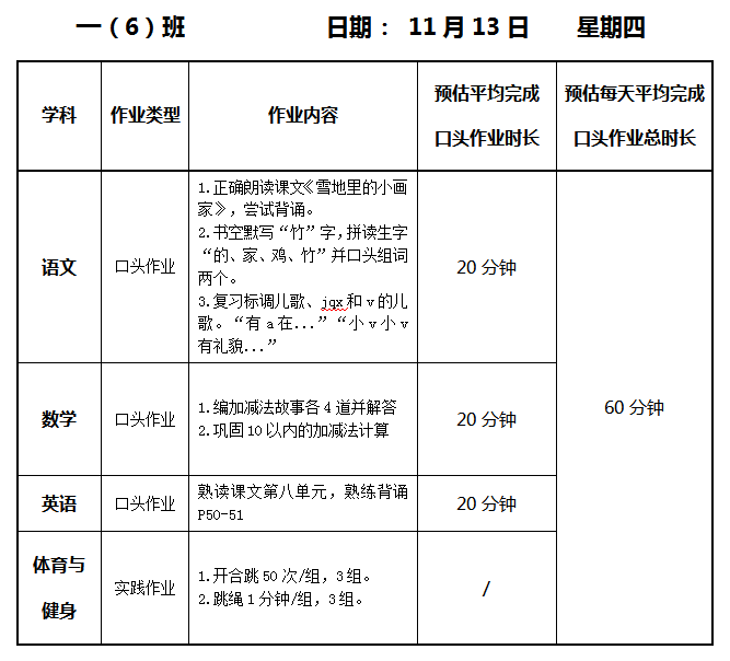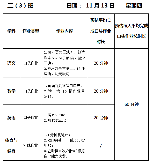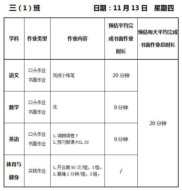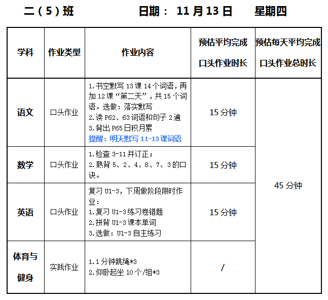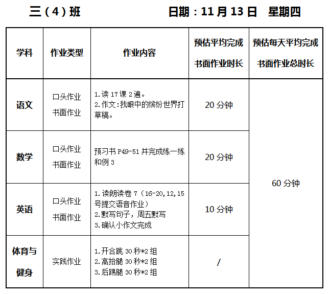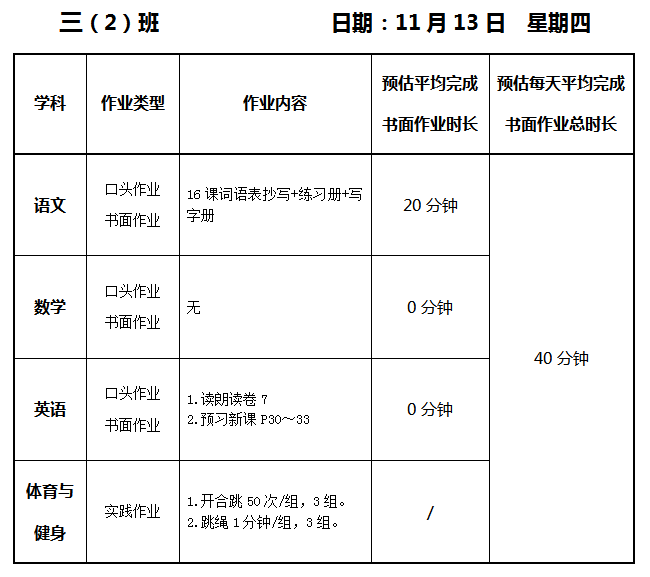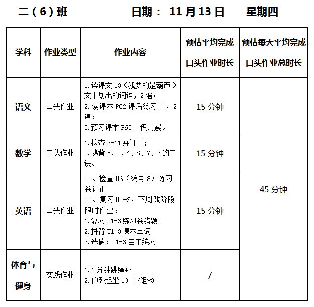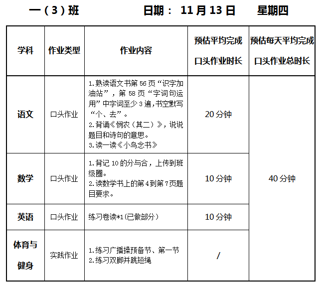 【作业公示】2025学年第一学期南翔小学作业公示(11月13日)