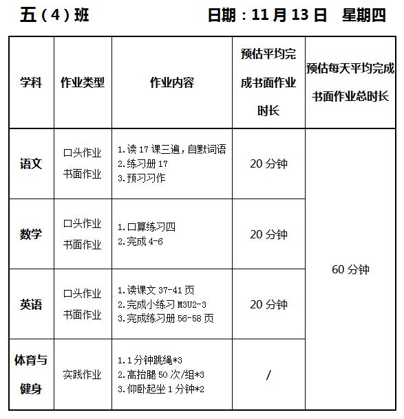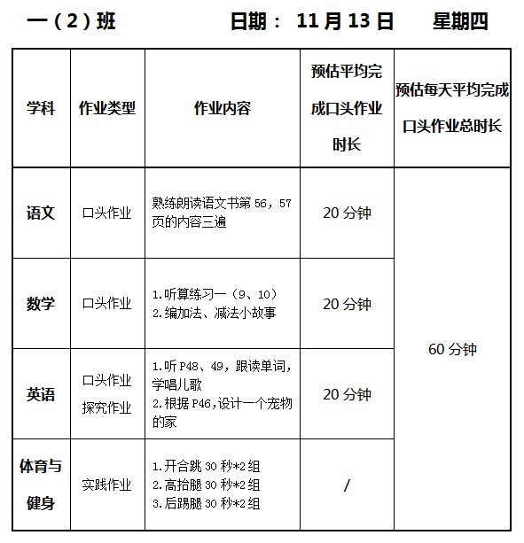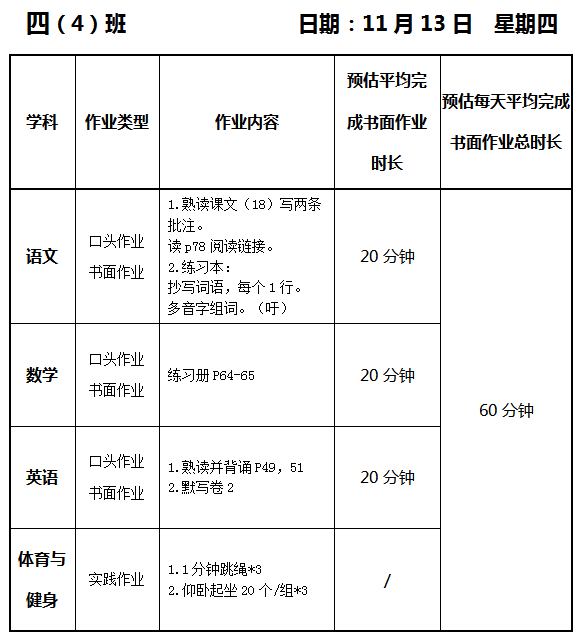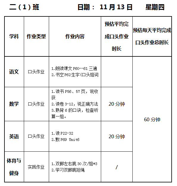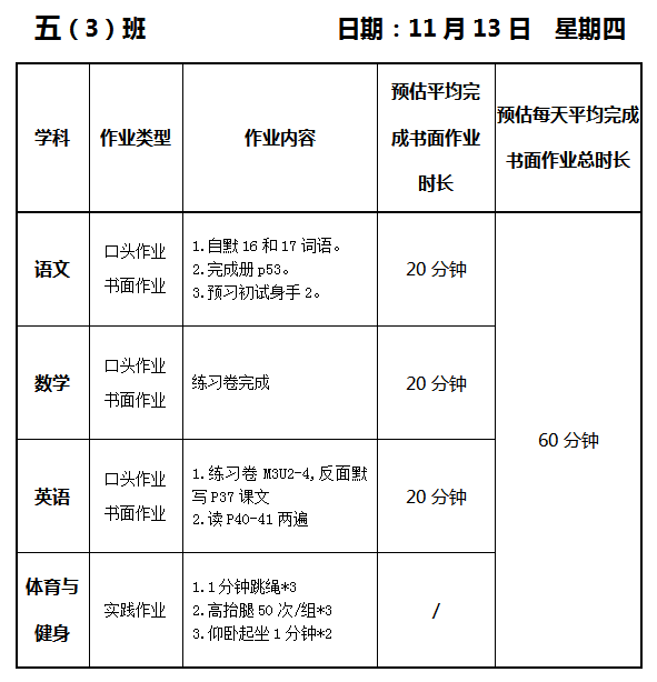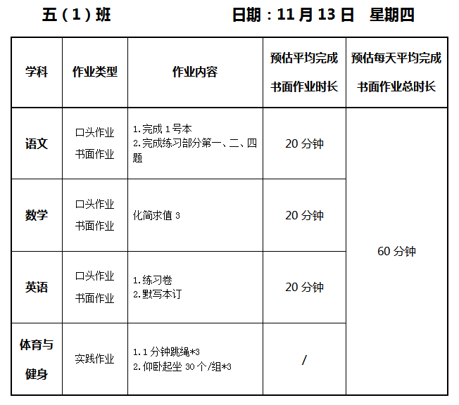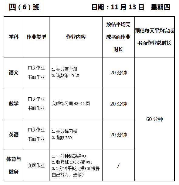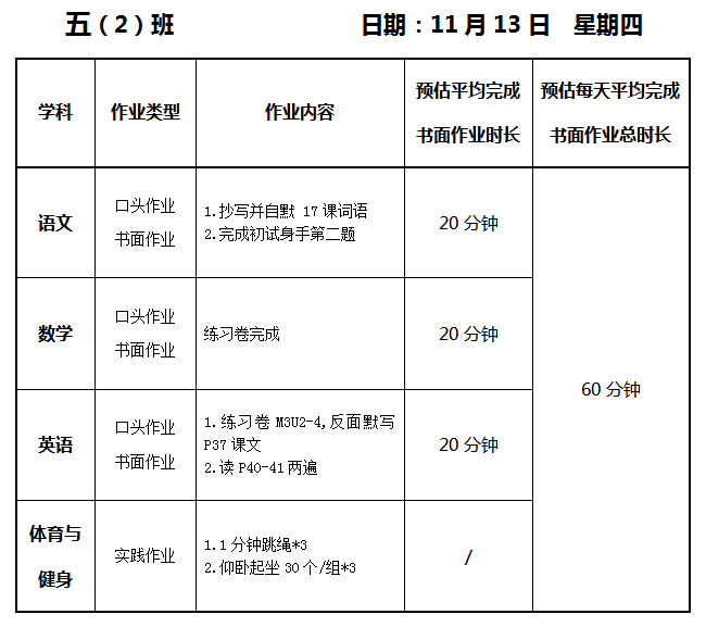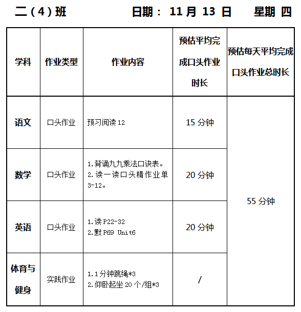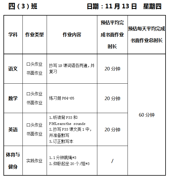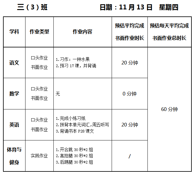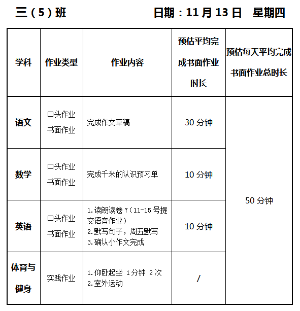 【作业公示】2025学年第一学期南翔小学作业公示(11月13日)