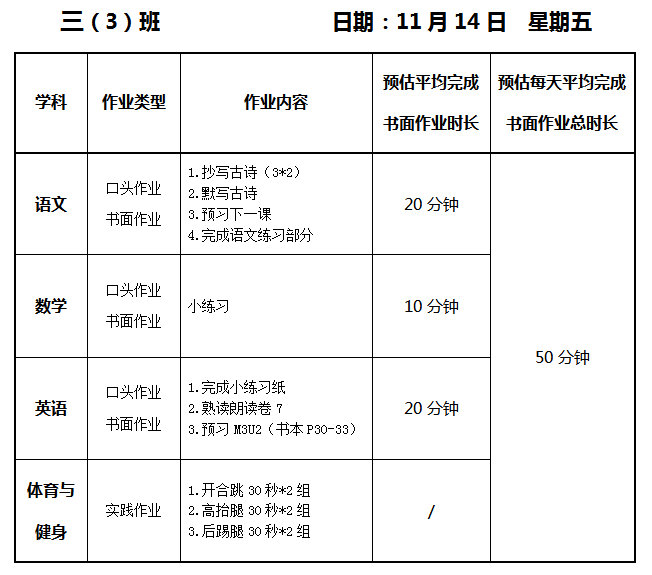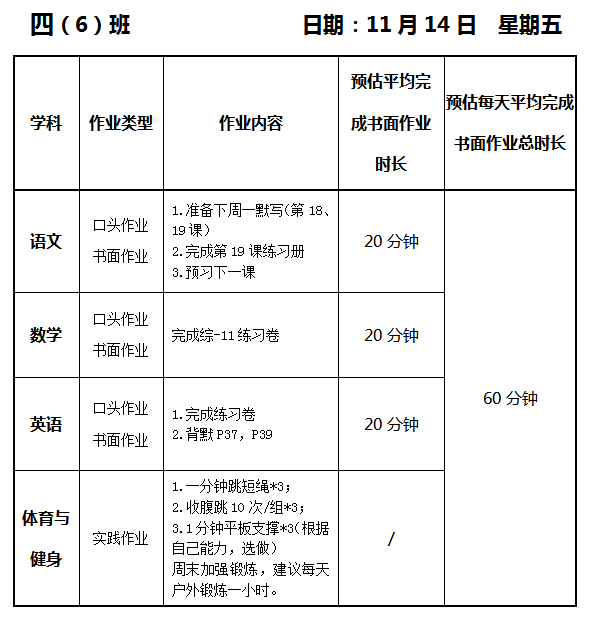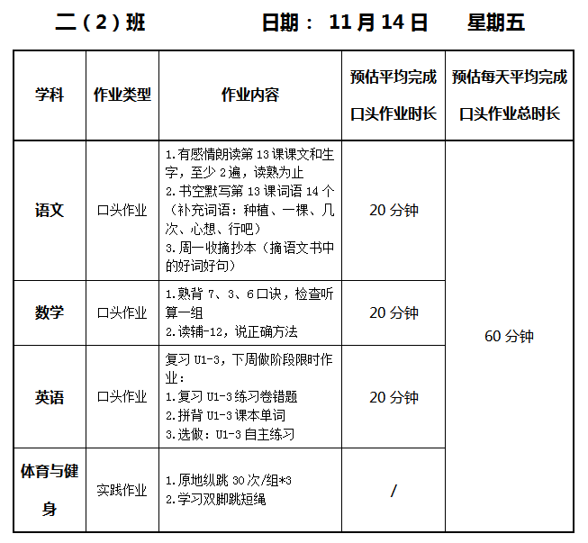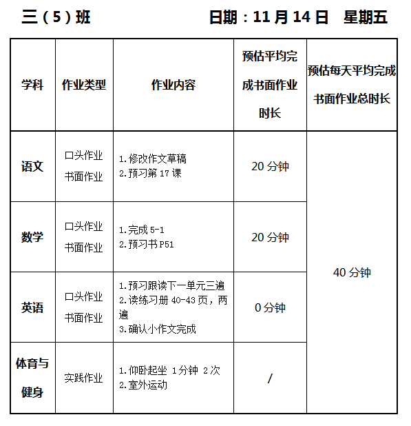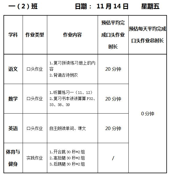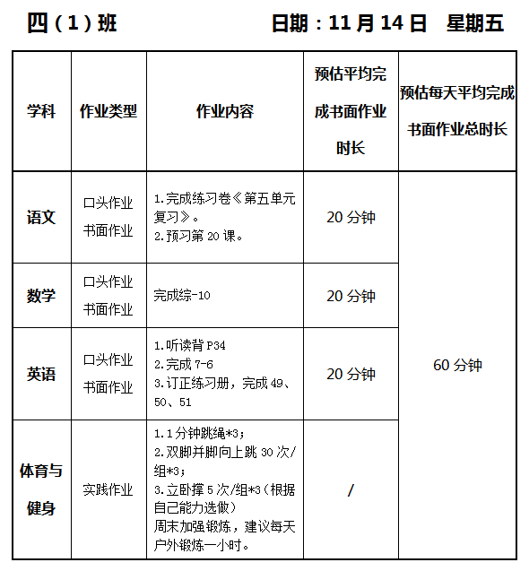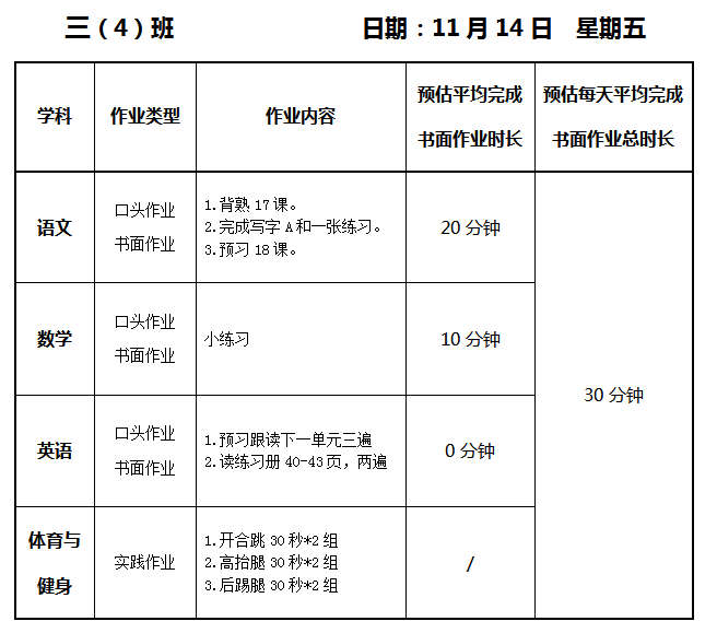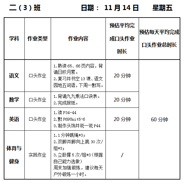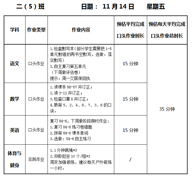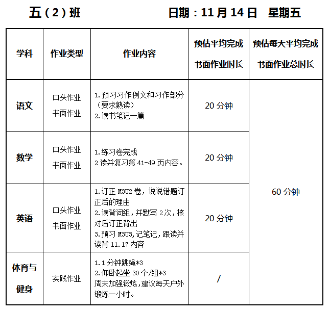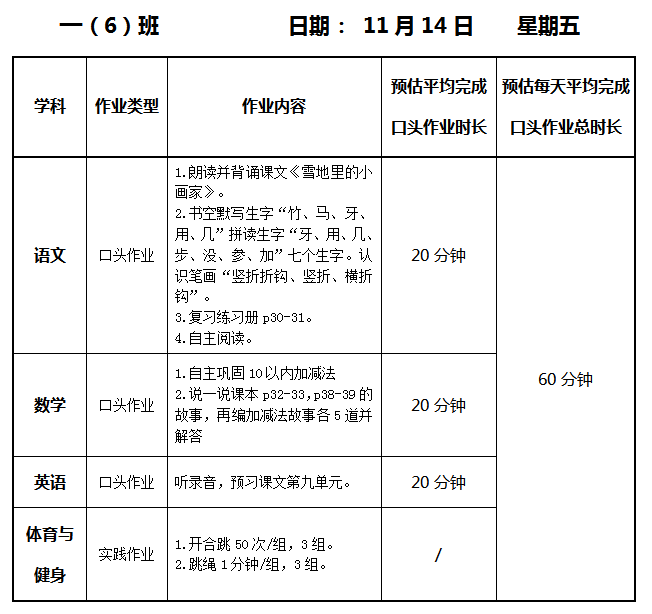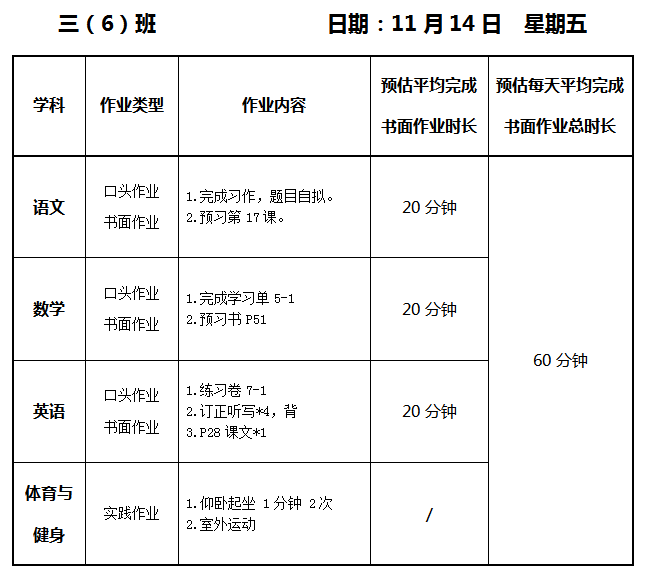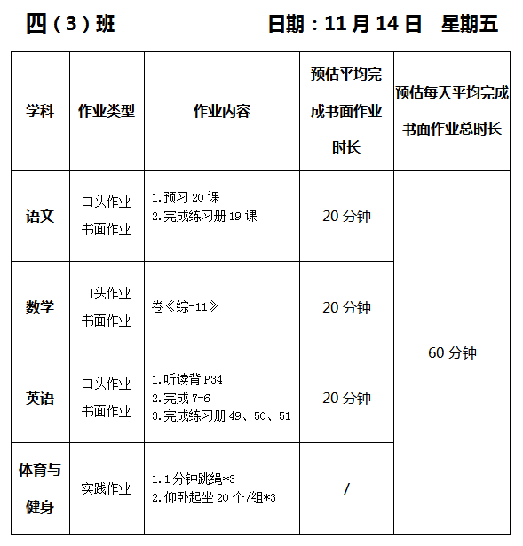 【作业公示】2025学年第一学期南翔小学作业公示(11月14日)