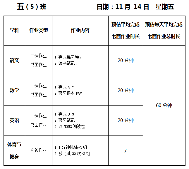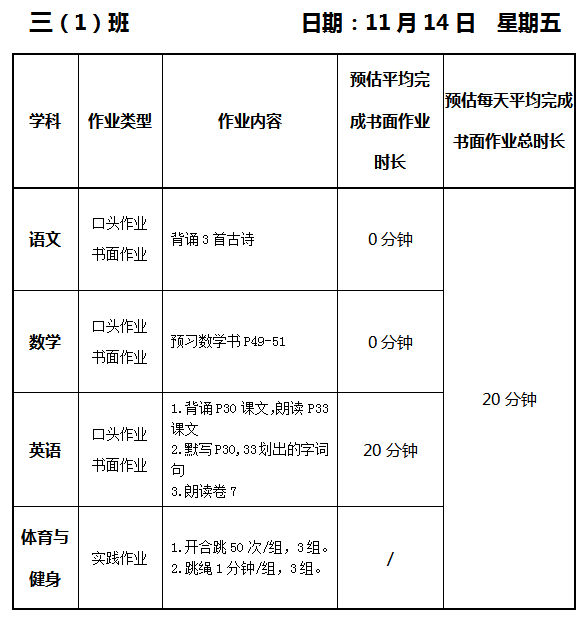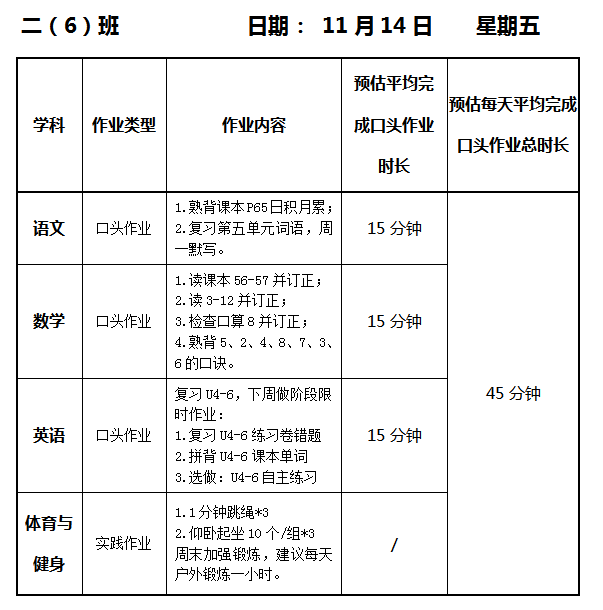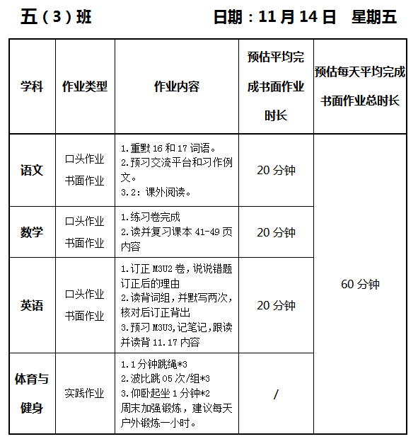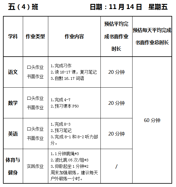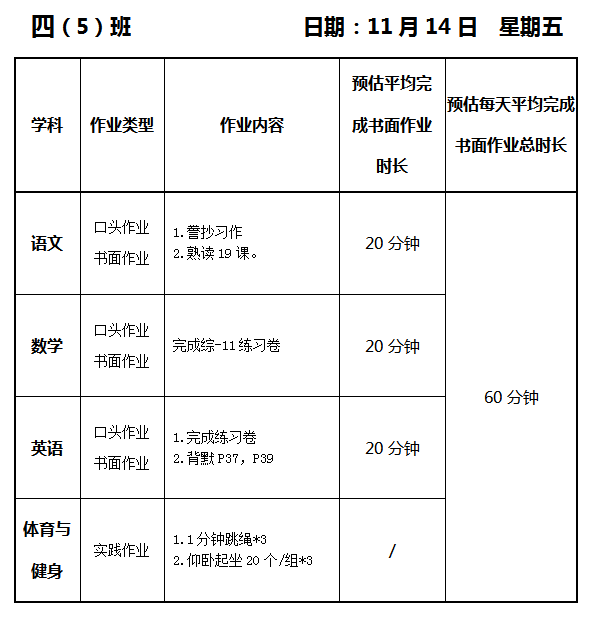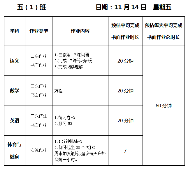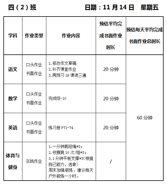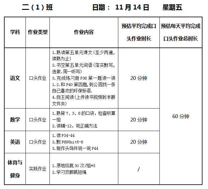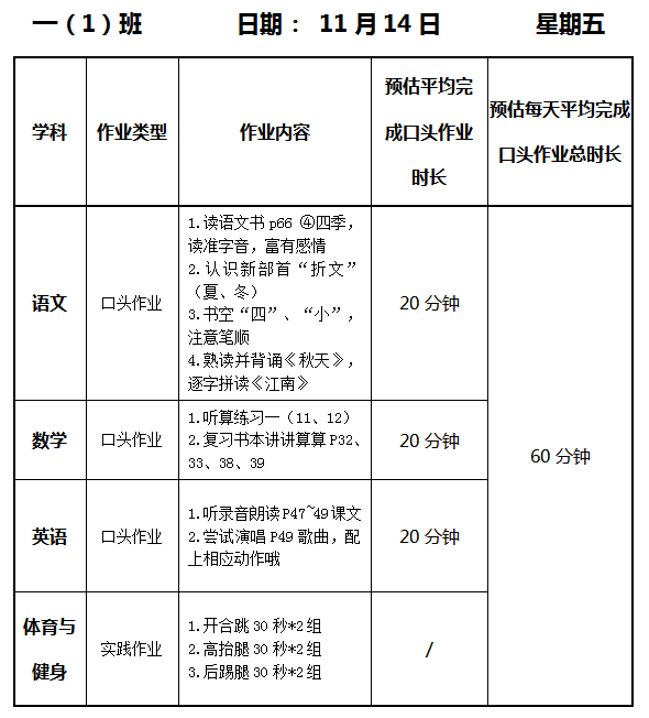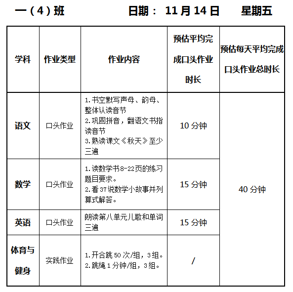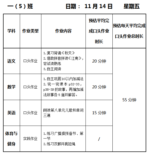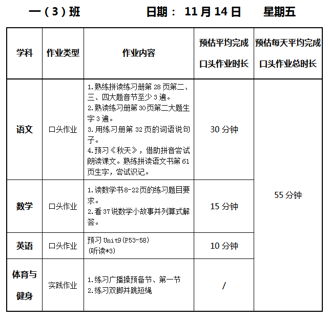 【作业公示】2025学年第一学期南翔小学作业公示(11月14日)