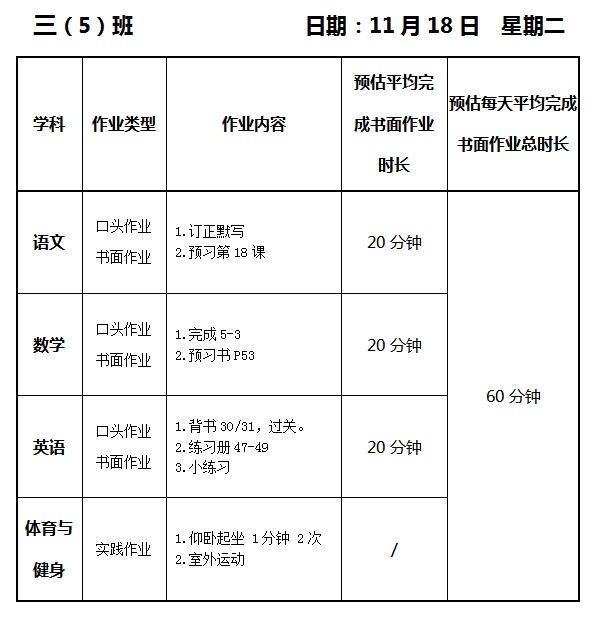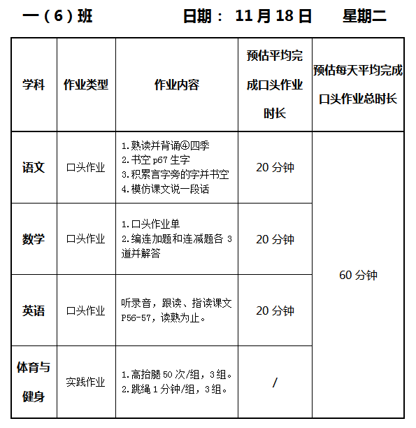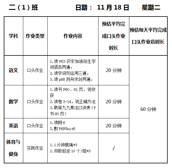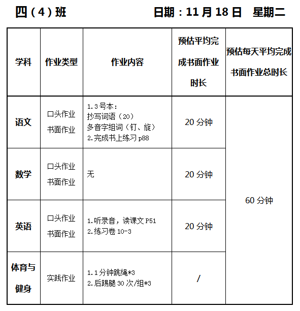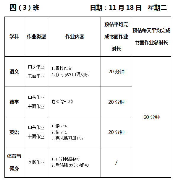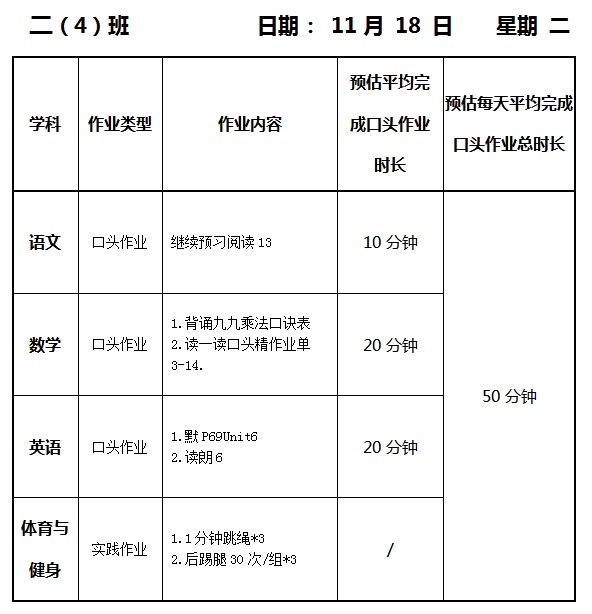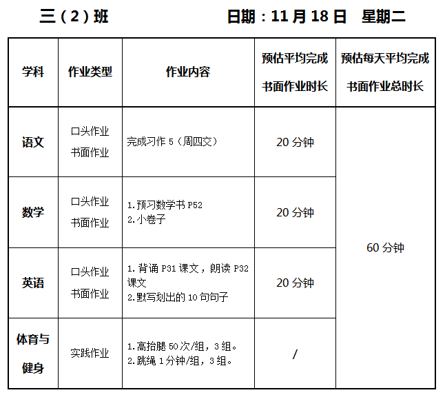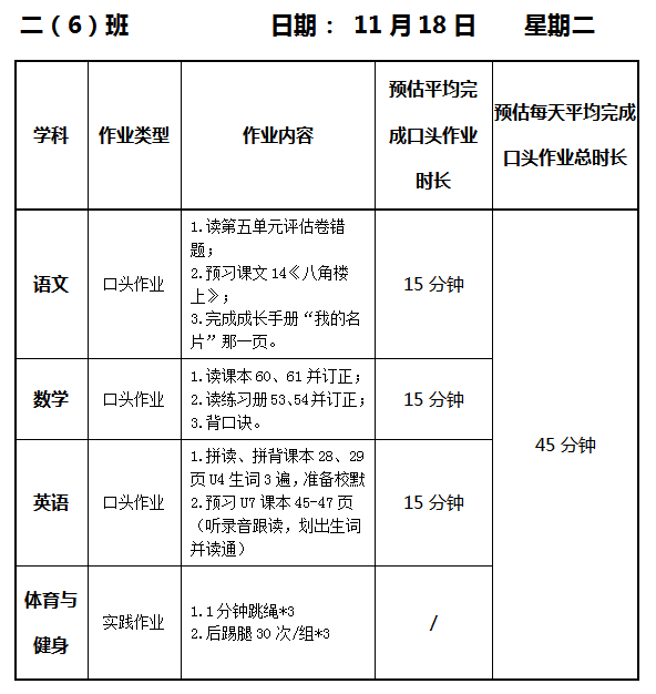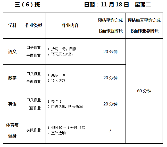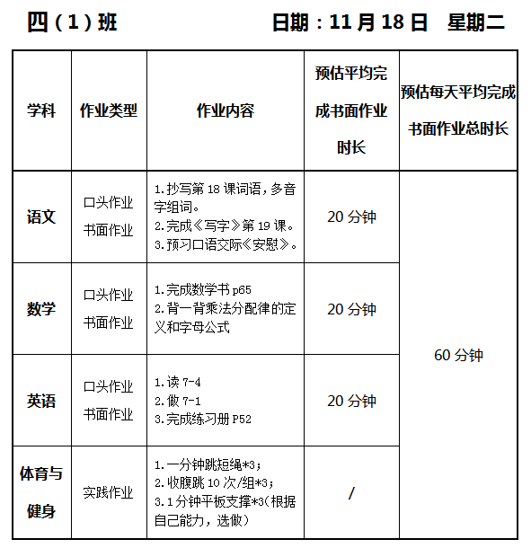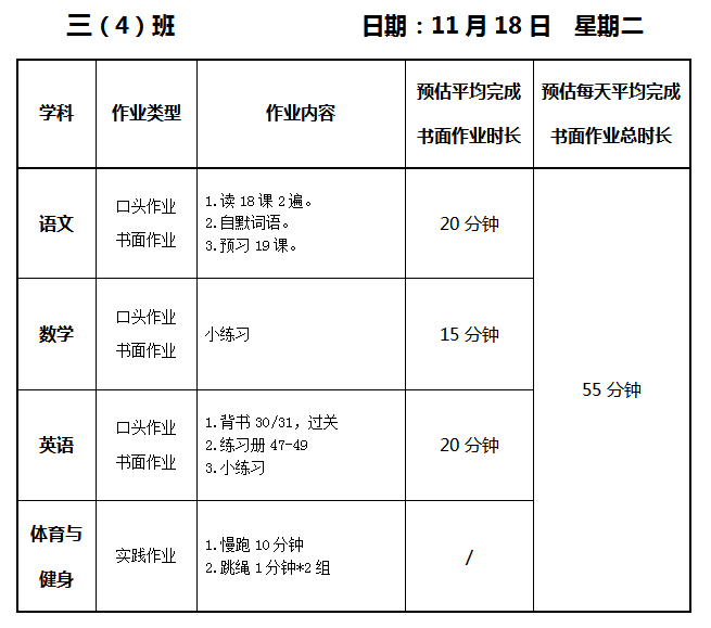 【作业公示】2025学年第一学期南翔小学作业公示(11月18日)