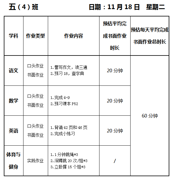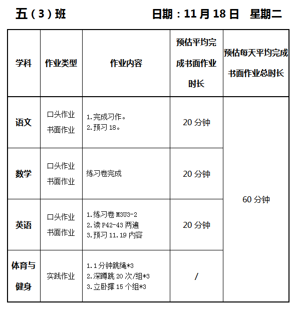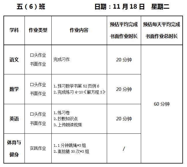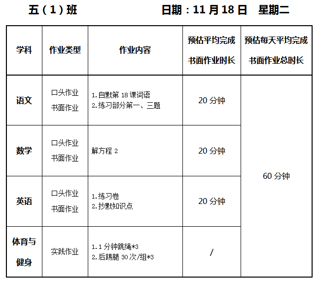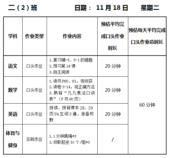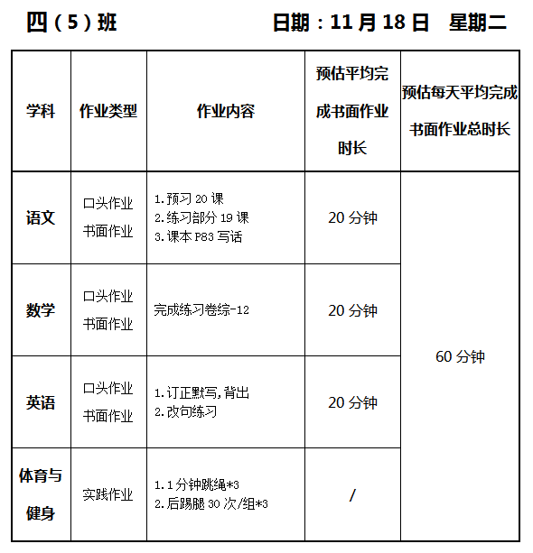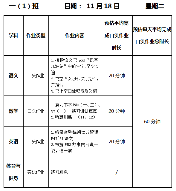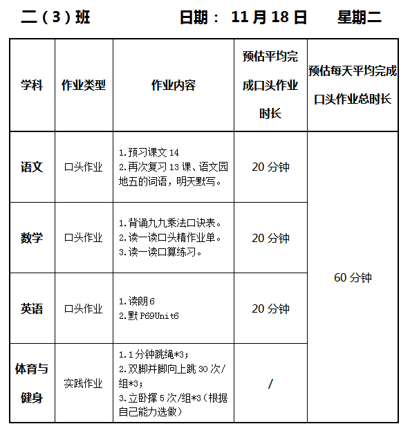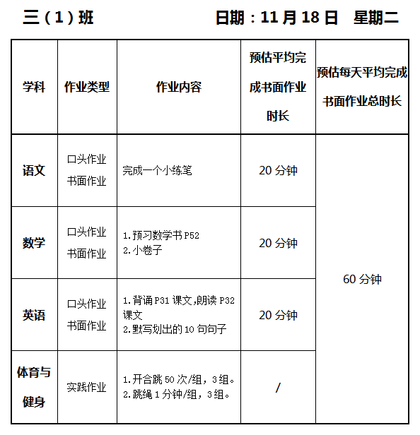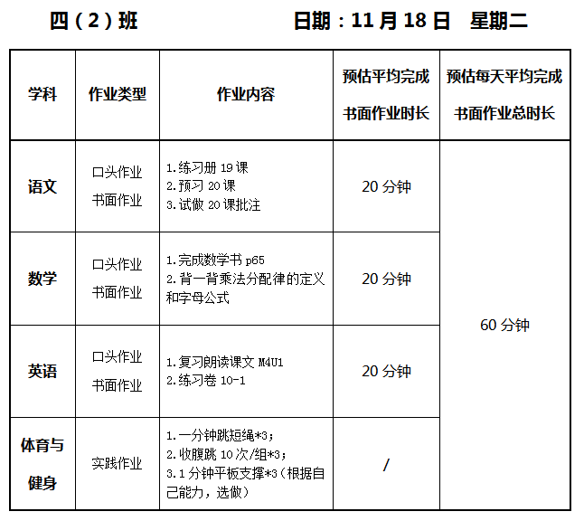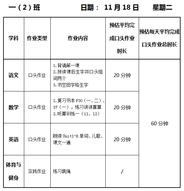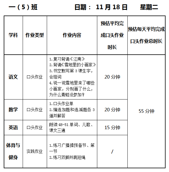 【作业公示】2025学年第一学期南翔小学作业公示(11月18日)