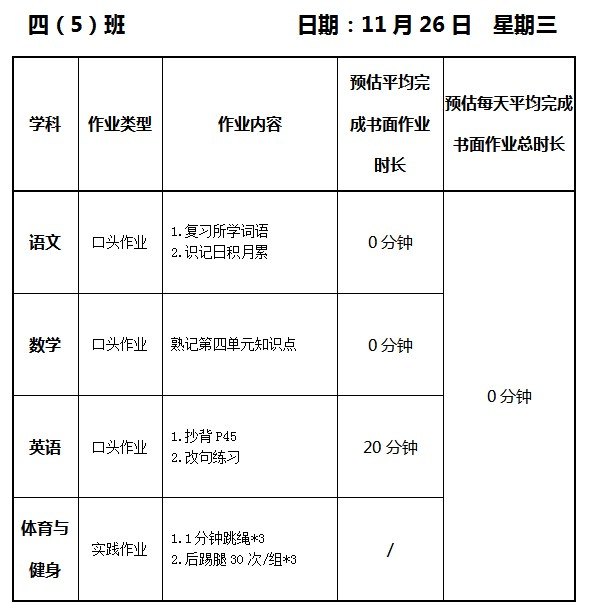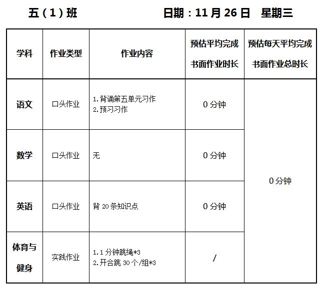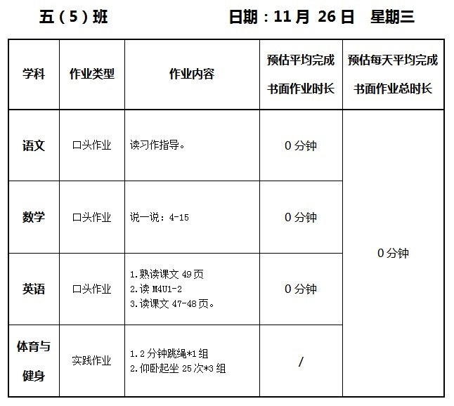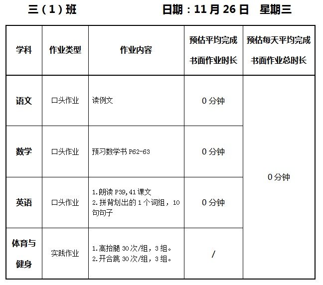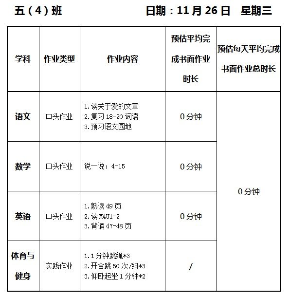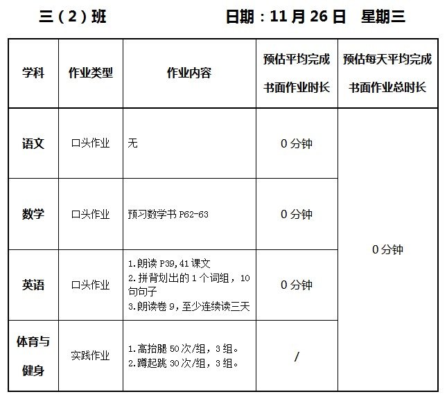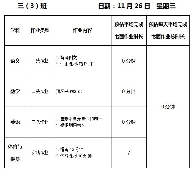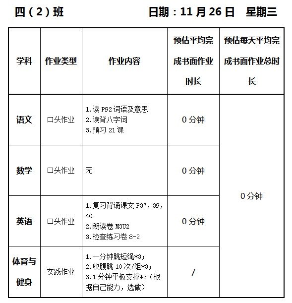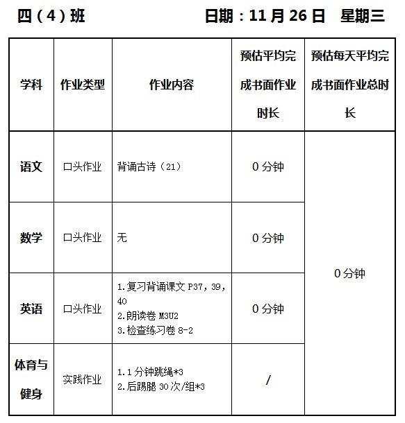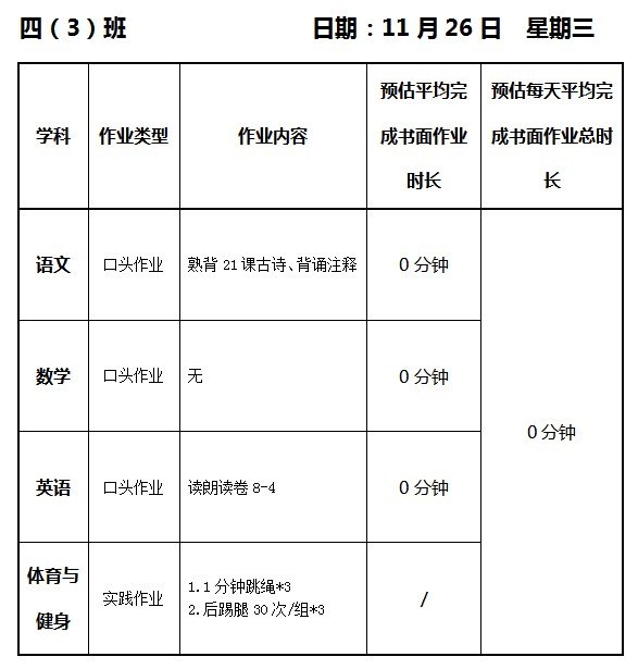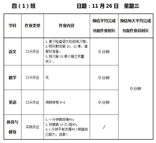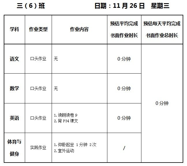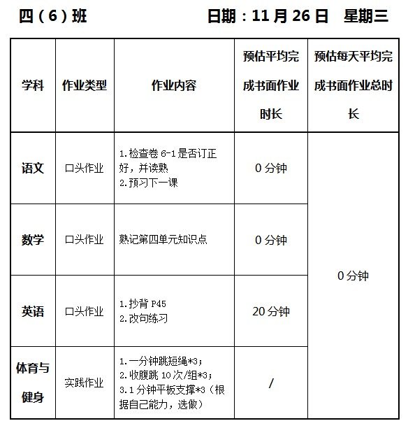 【作业公示】2025学年第一学期南翔小学作业公示(11月26日)