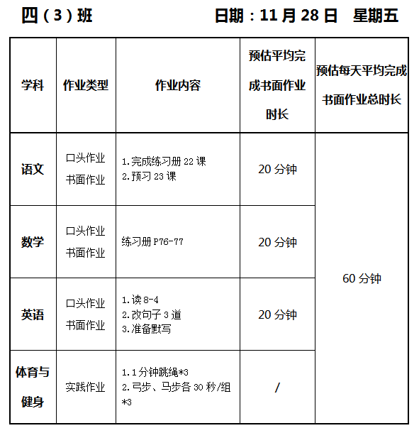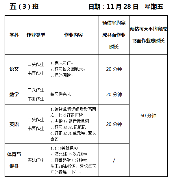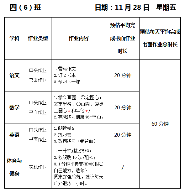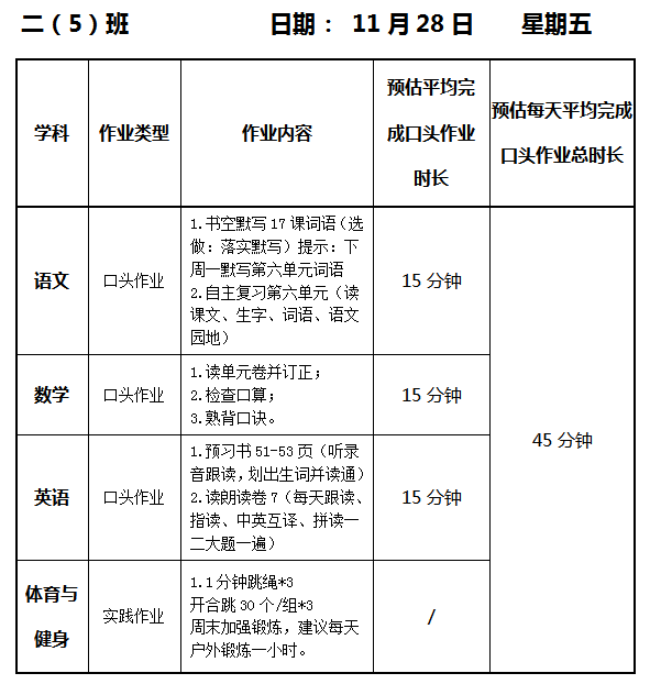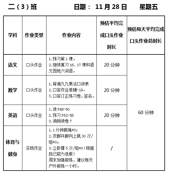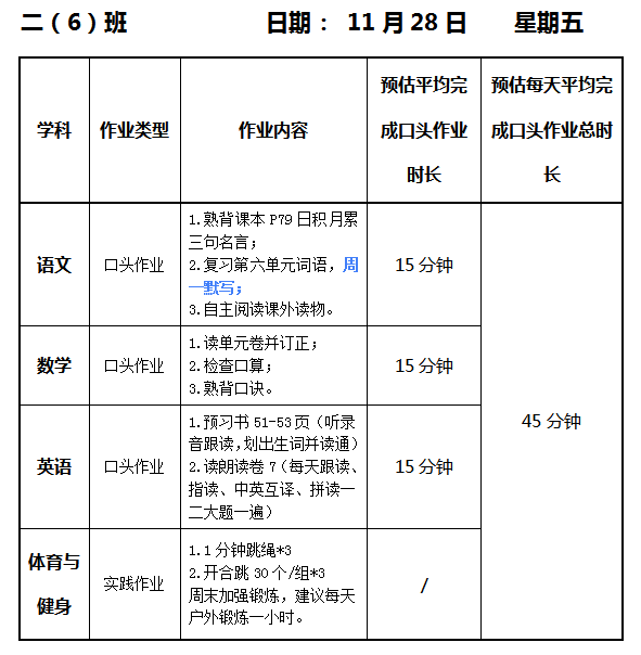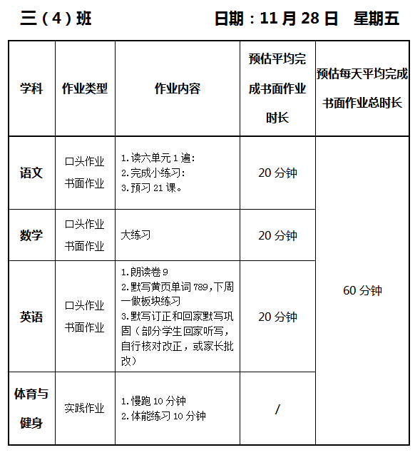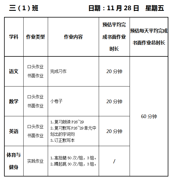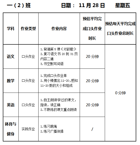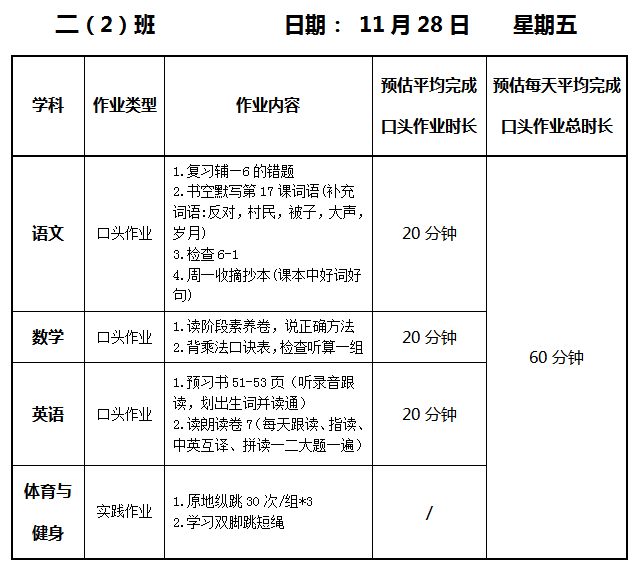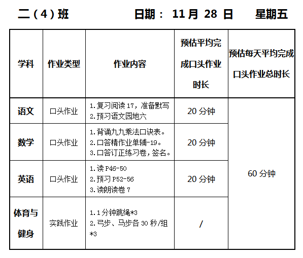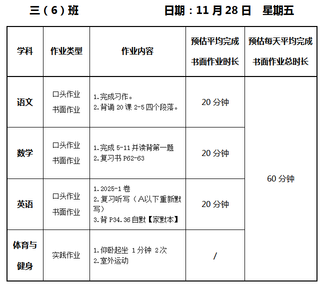 【作业公示】2025学年第一学期南翔小学作业公示(11月28日)
