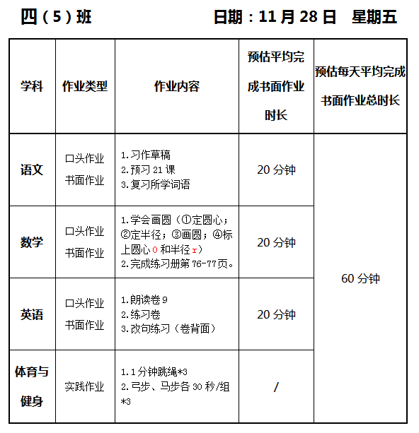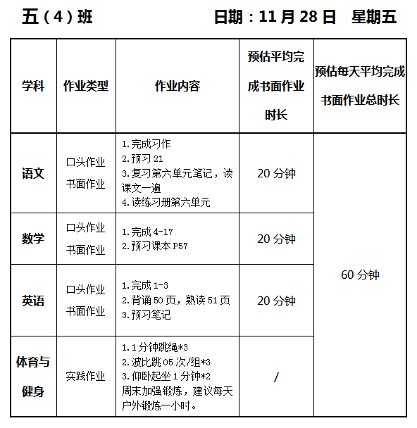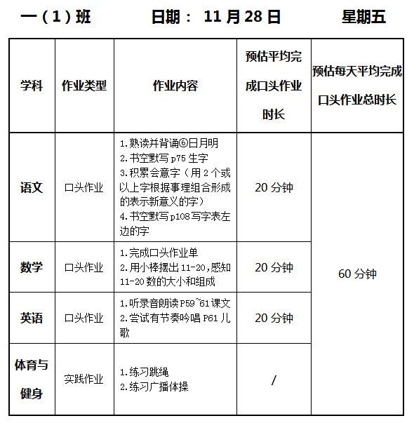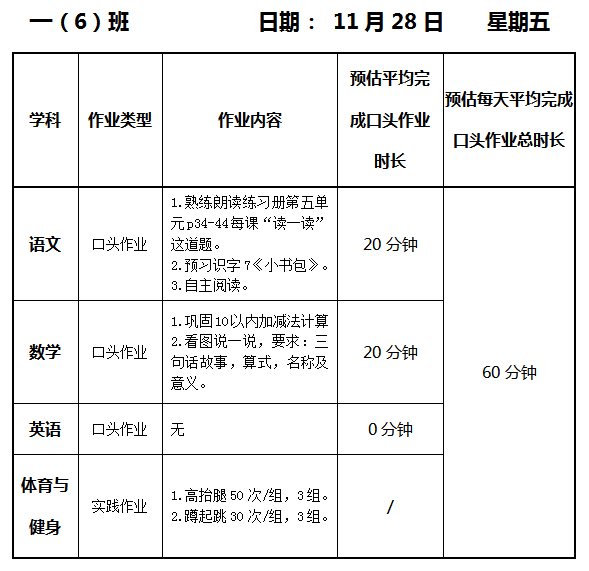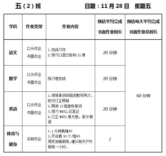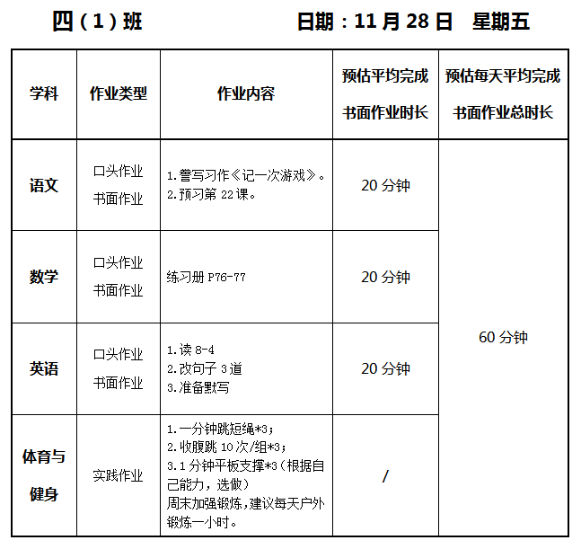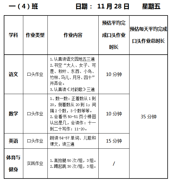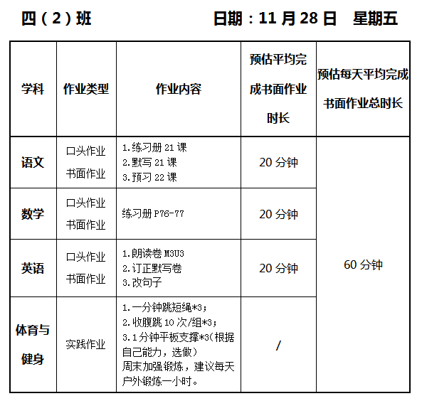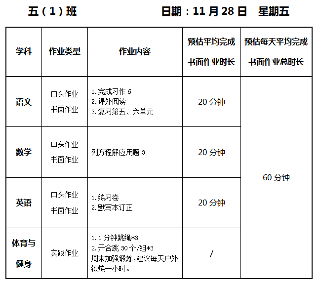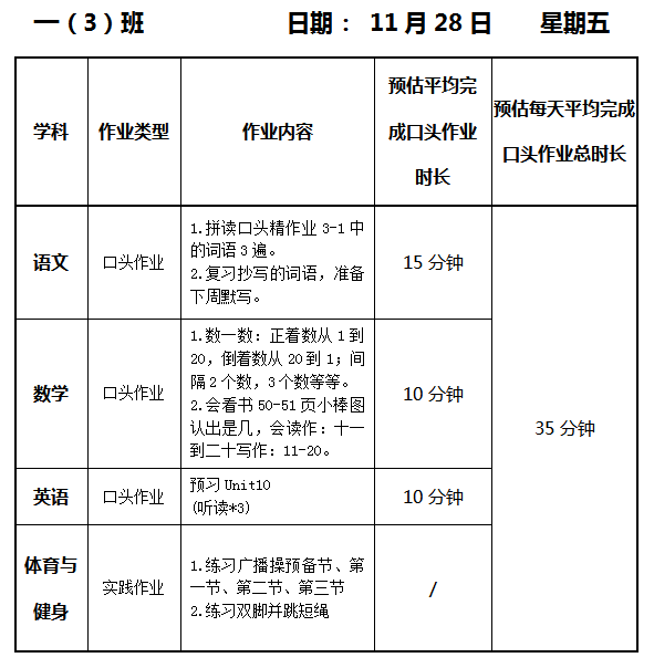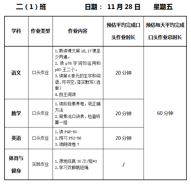 【作业公示】2025学年第一学期南翔小学作业公示(11月28日)