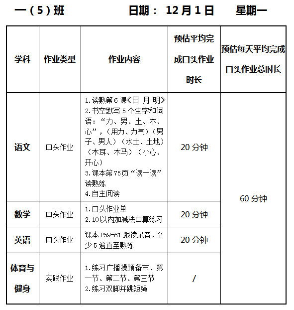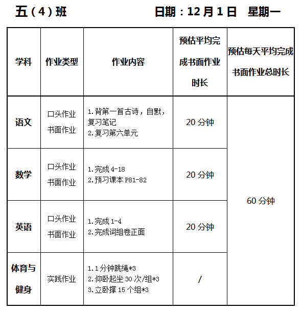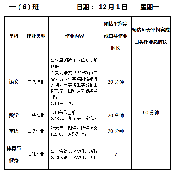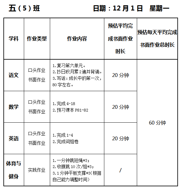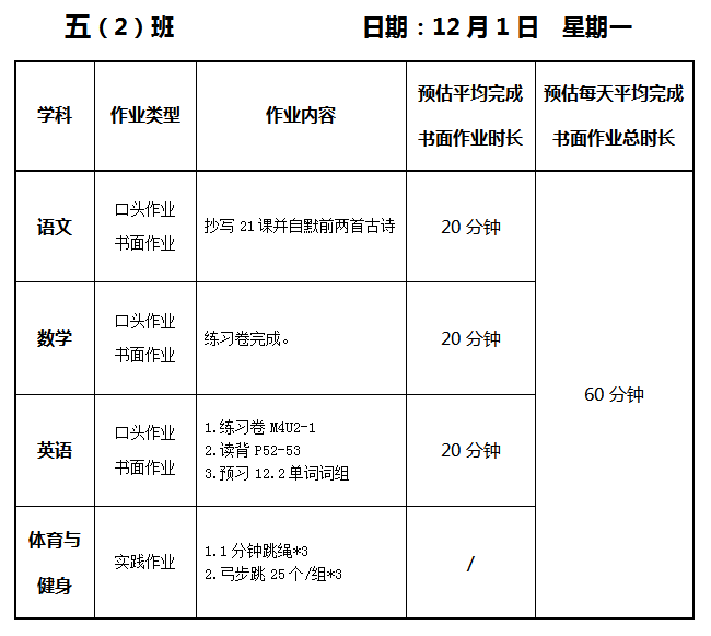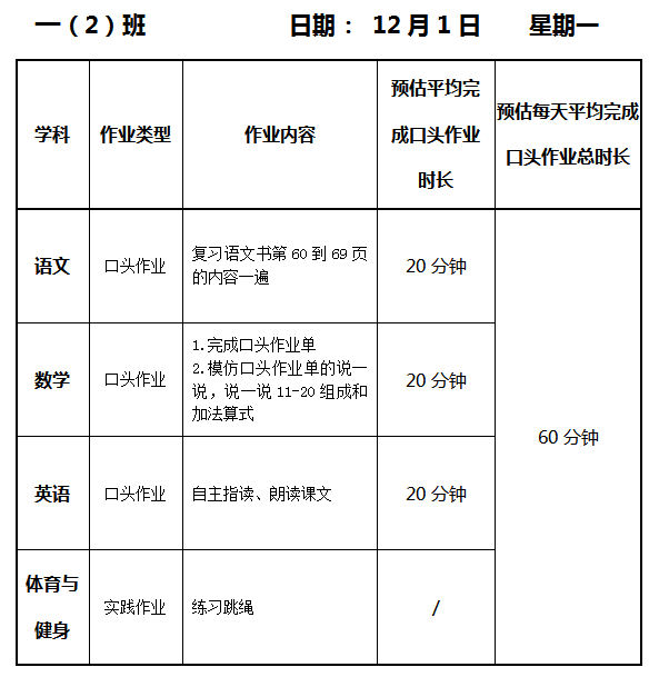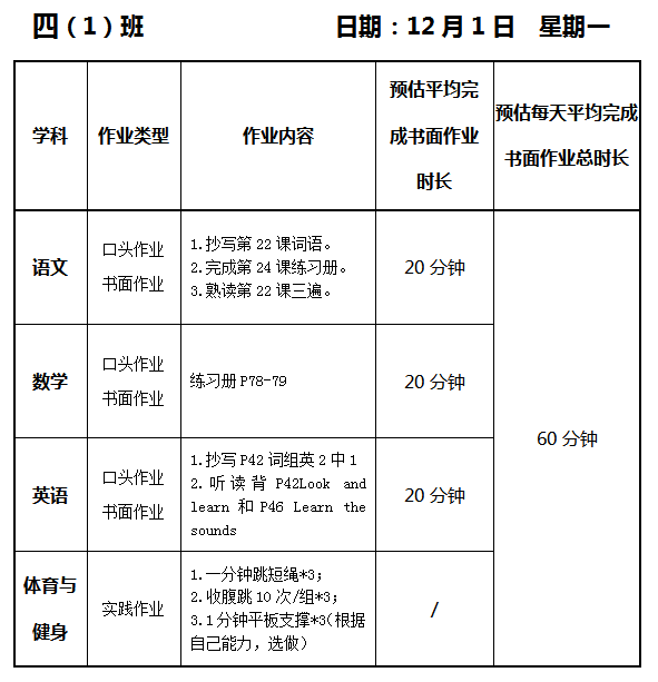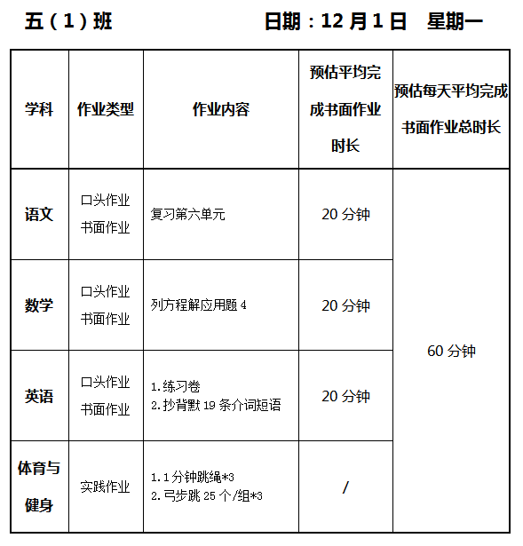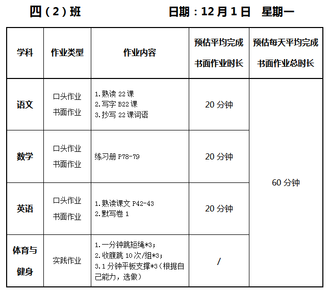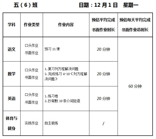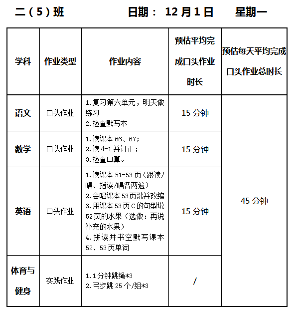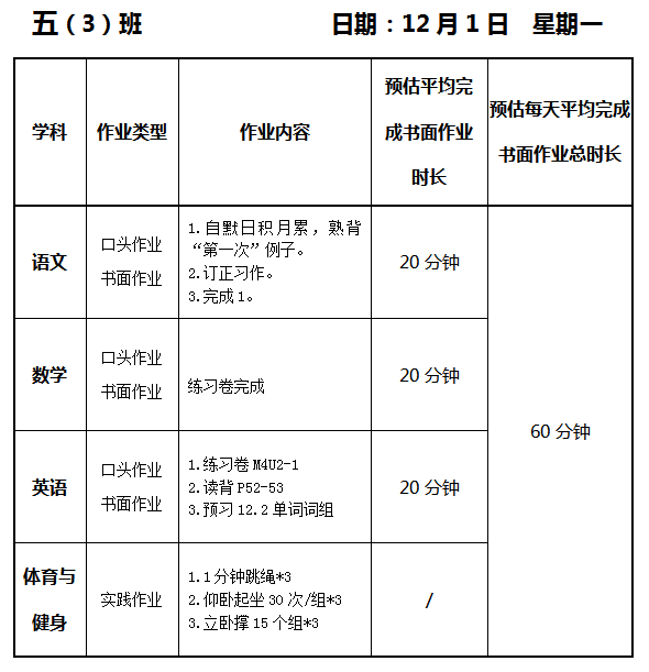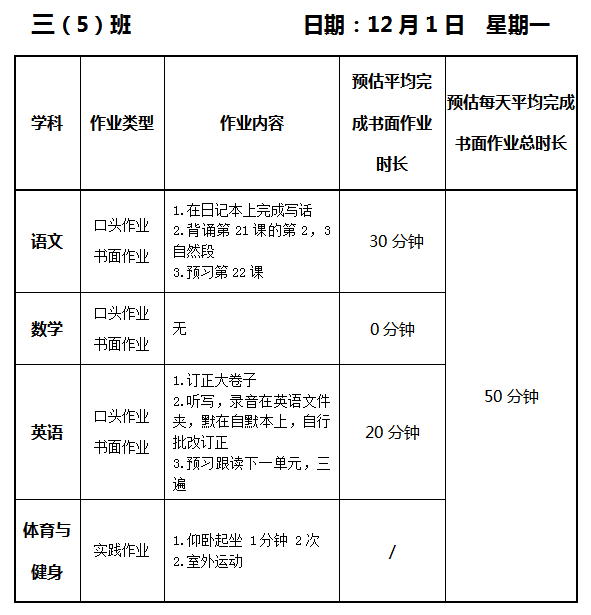 【作业公示】2025学年第一学期南翔小学作业公示(12月1日)