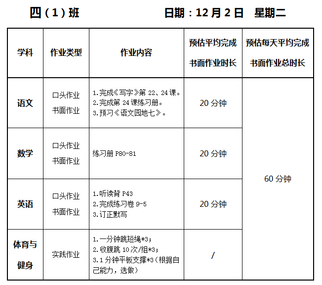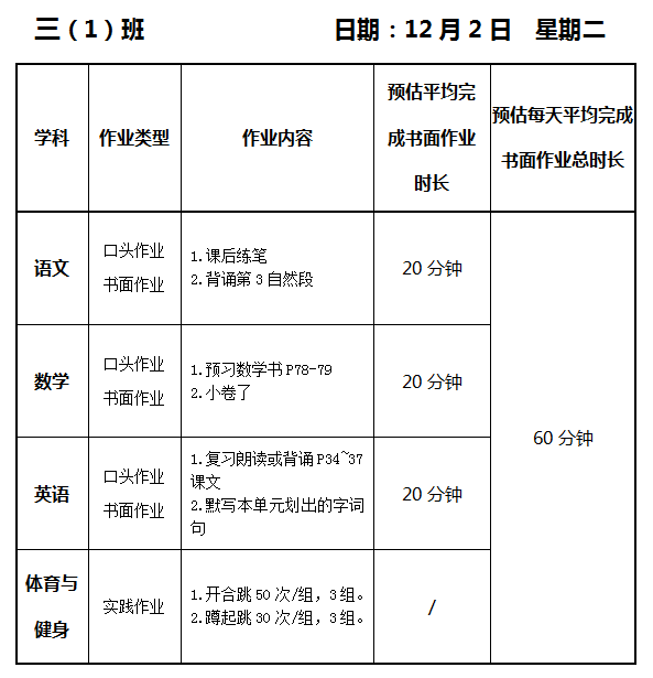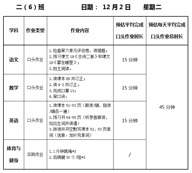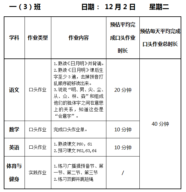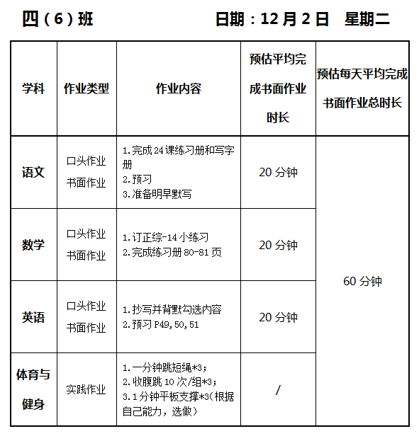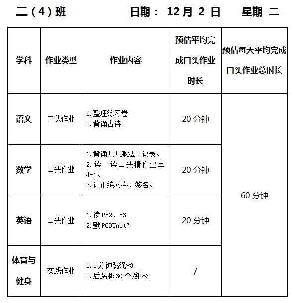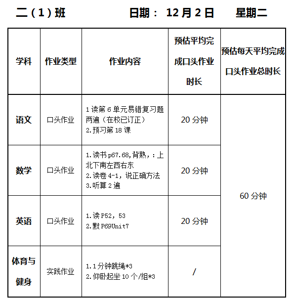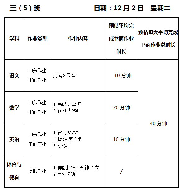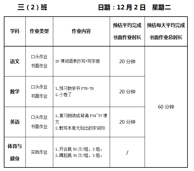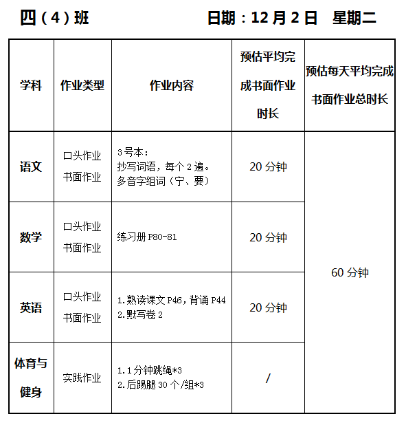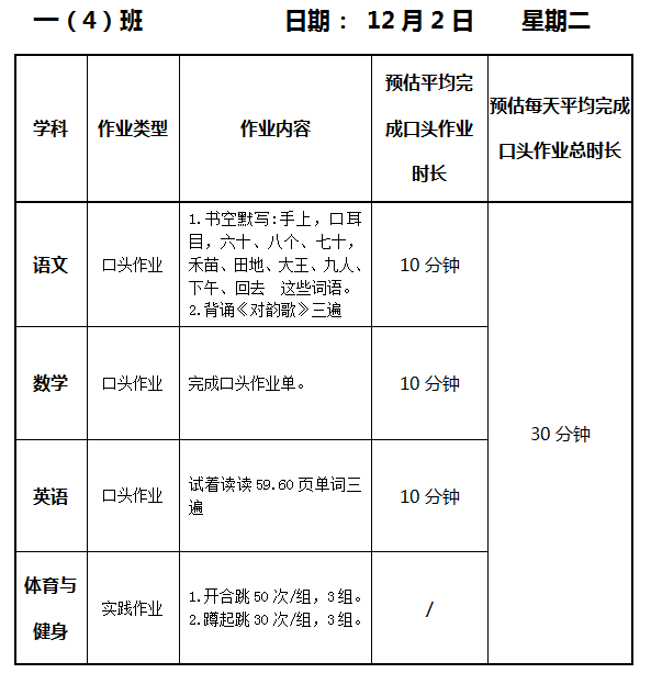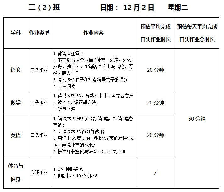 【作业公示】2025学年第一学期南翔小学作业公示(12月2日)