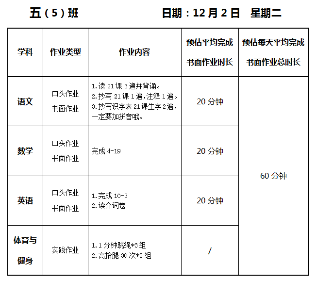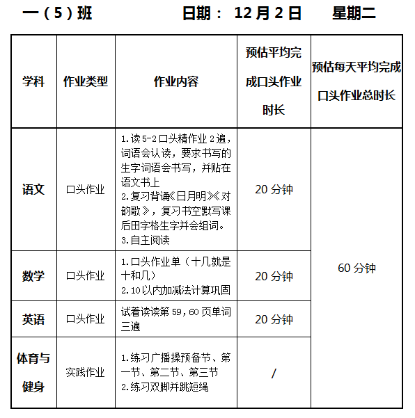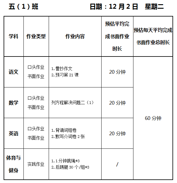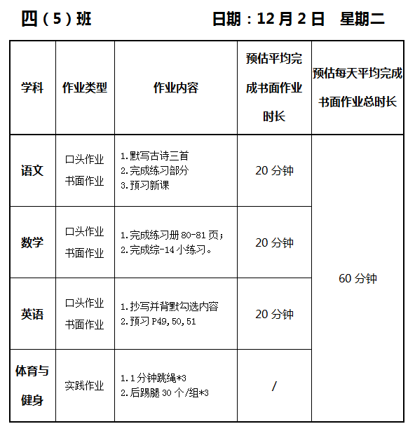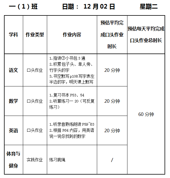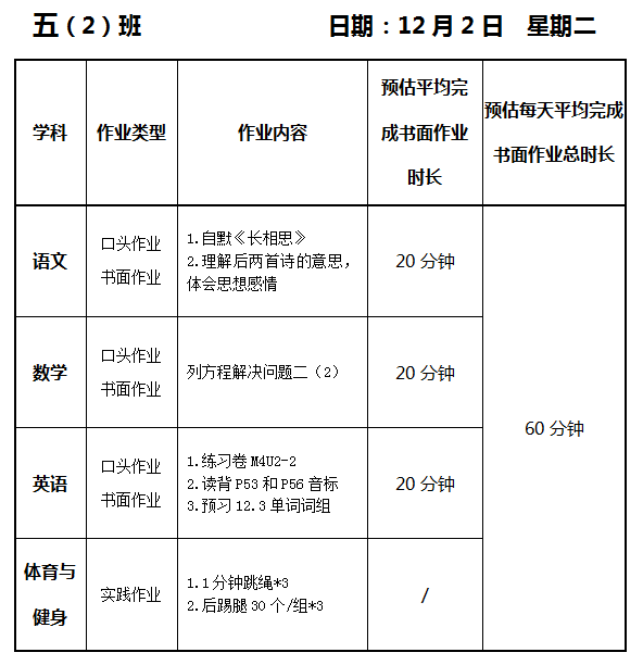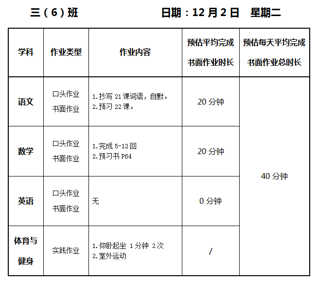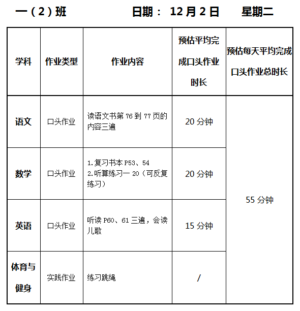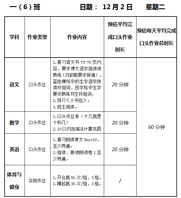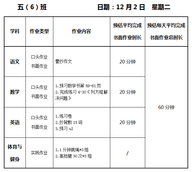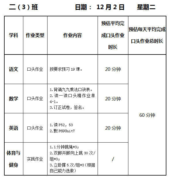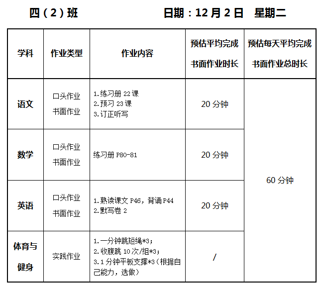 【作业公示】2025学年第一学期南翔小学作业公示(12月2日)