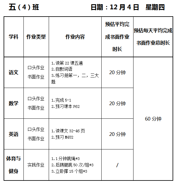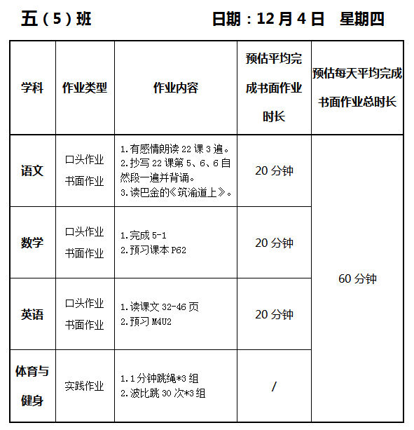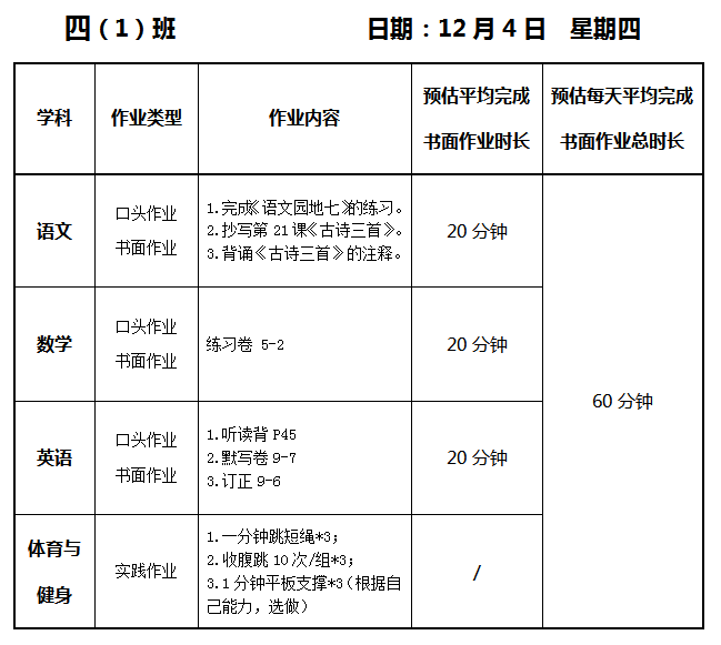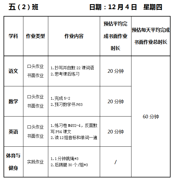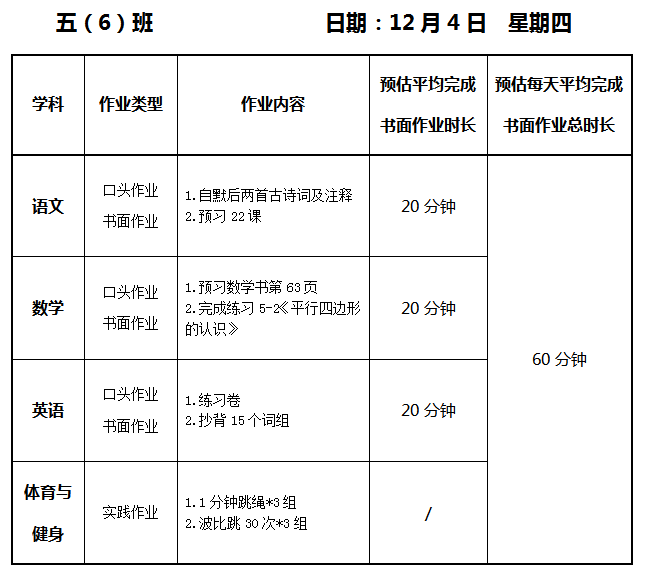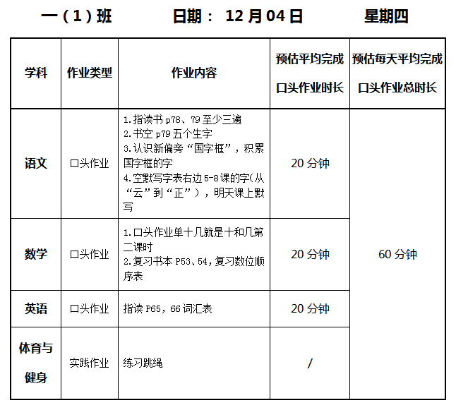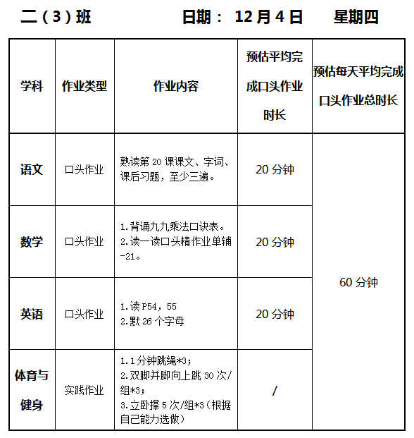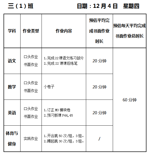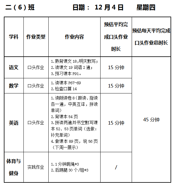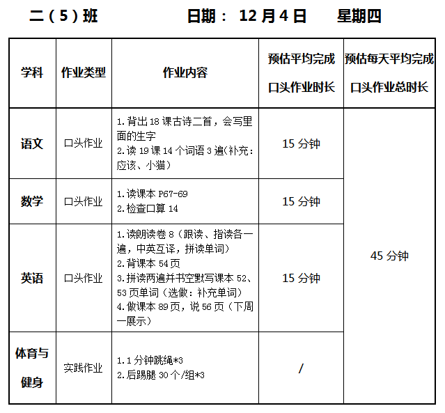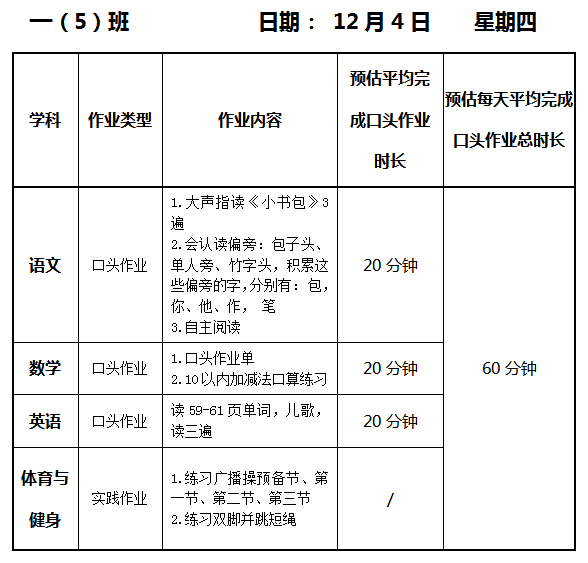 【作业公示】2025学年第一学期南翔小学作业公示(12月4日)