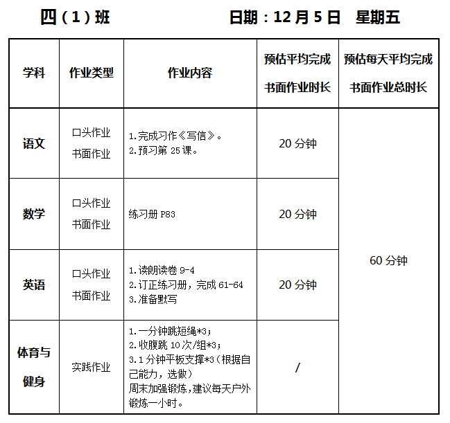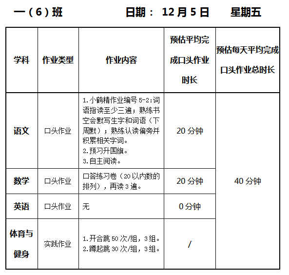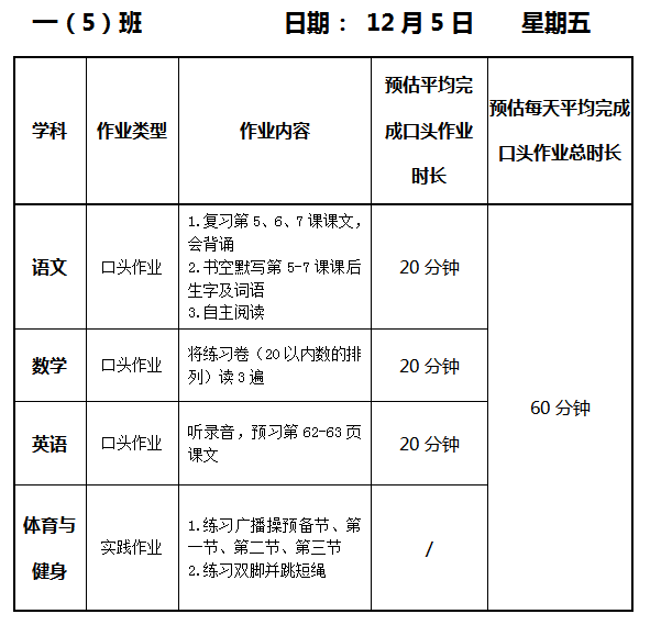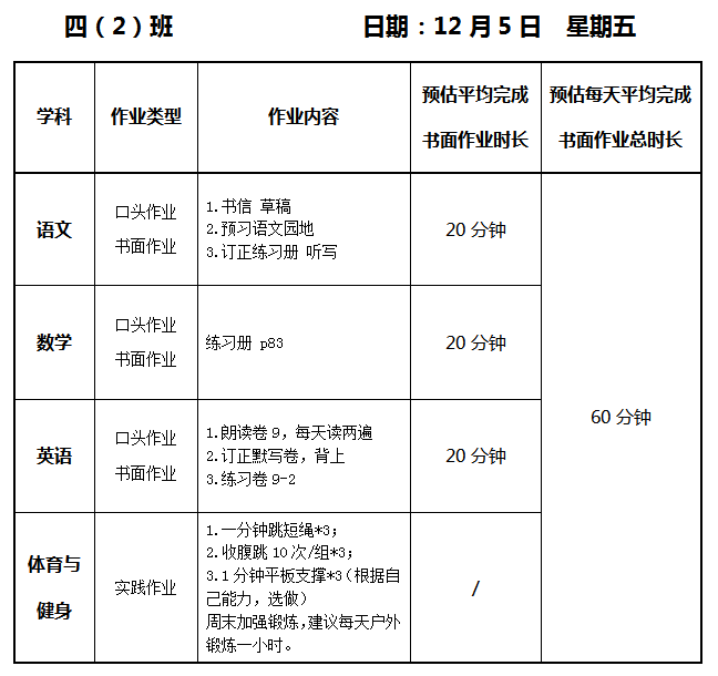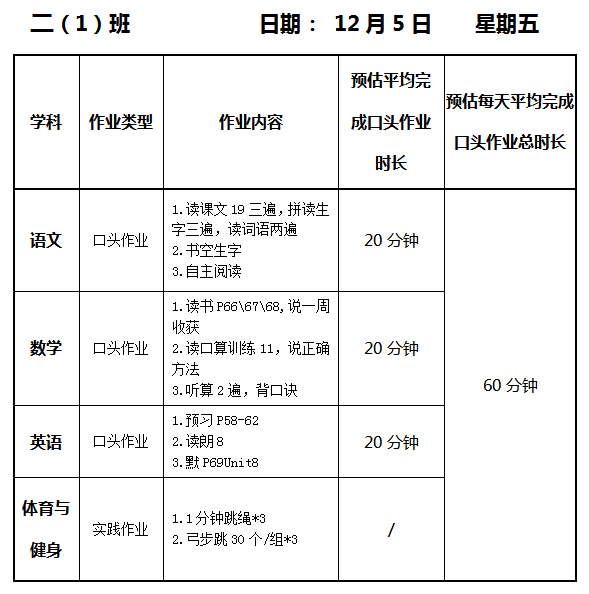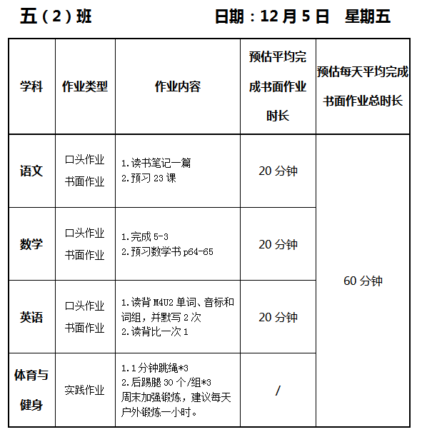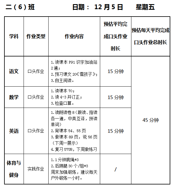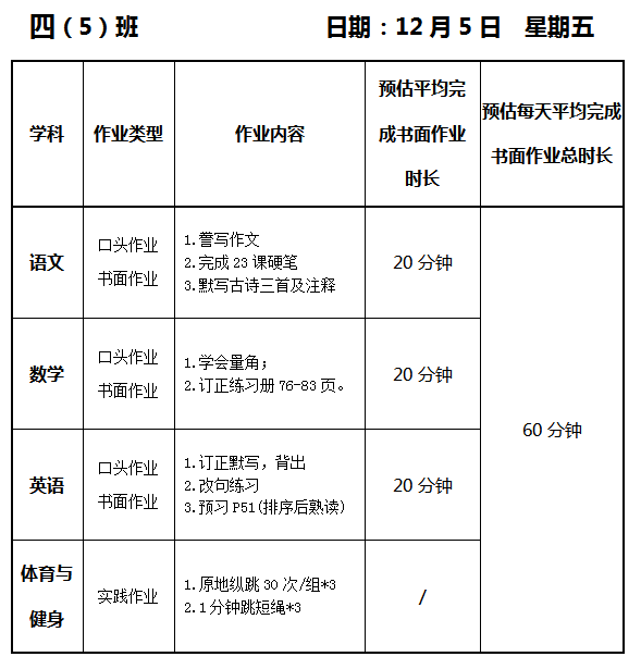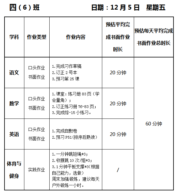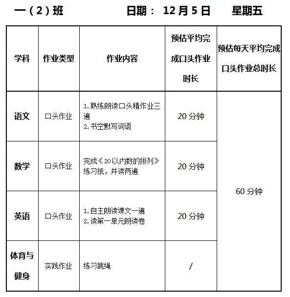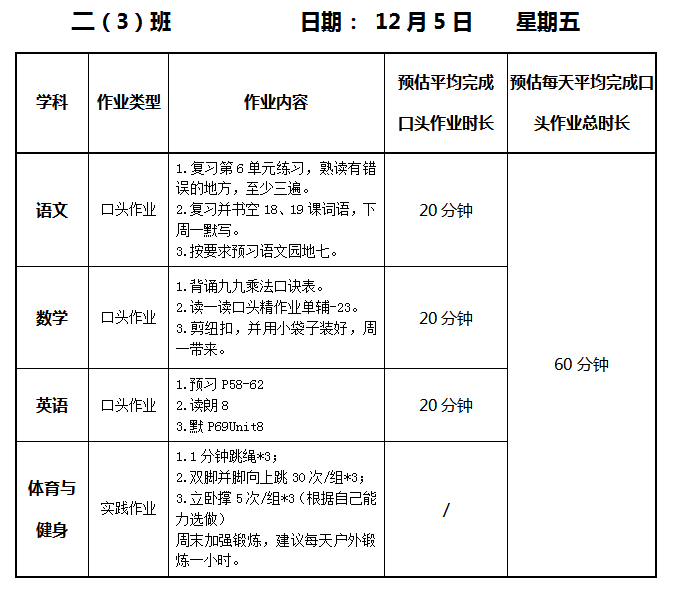 【作业公示】2025学年第一学期南翔小学作业公示(12月5日)