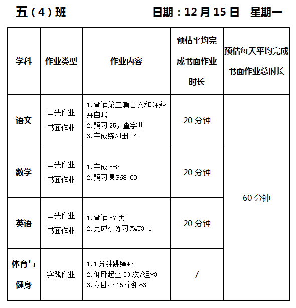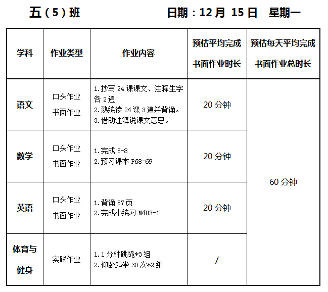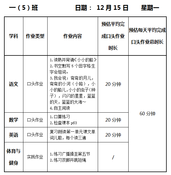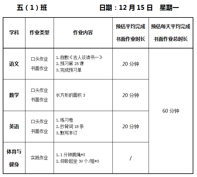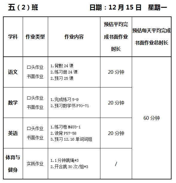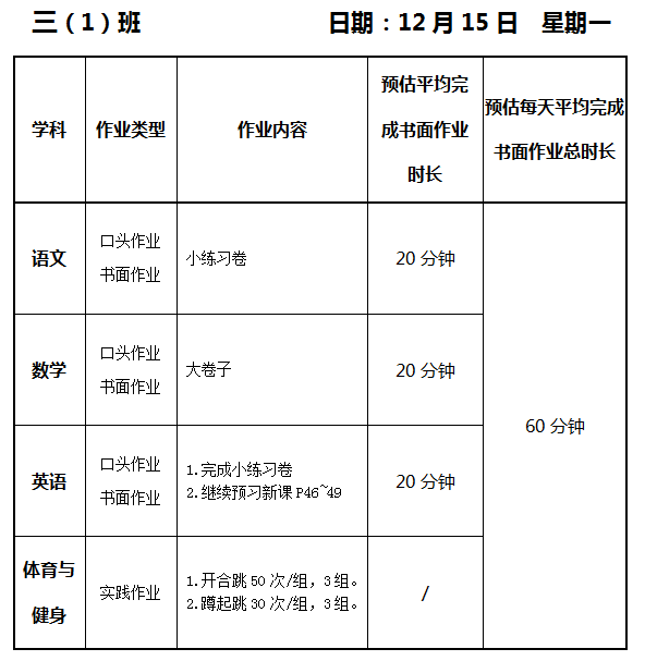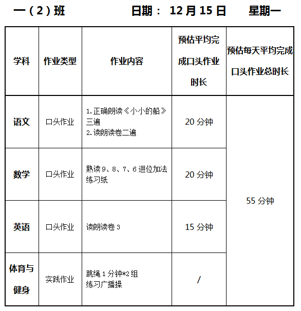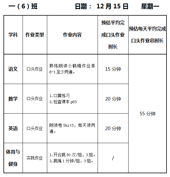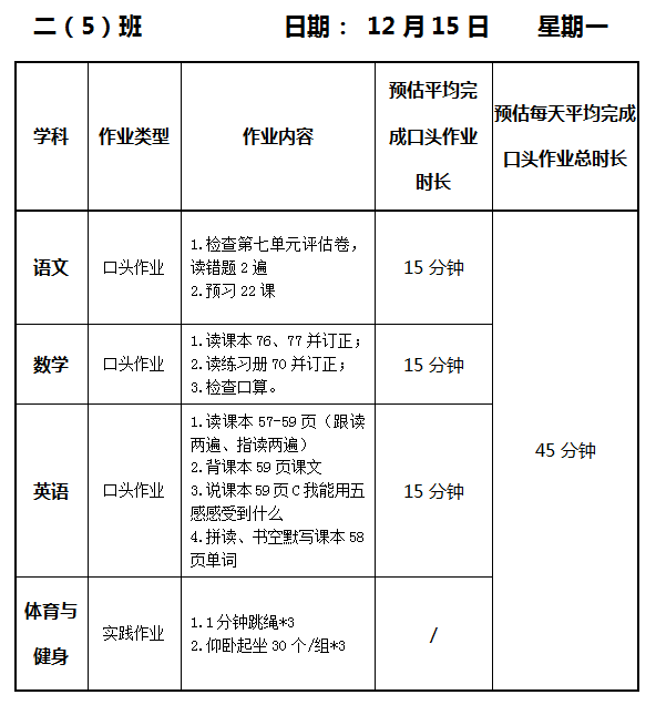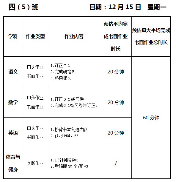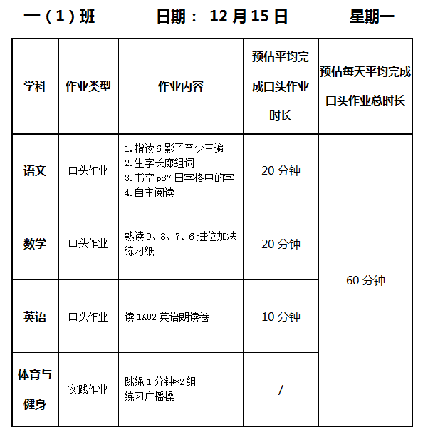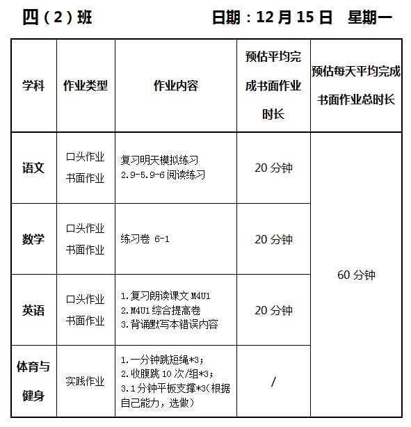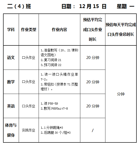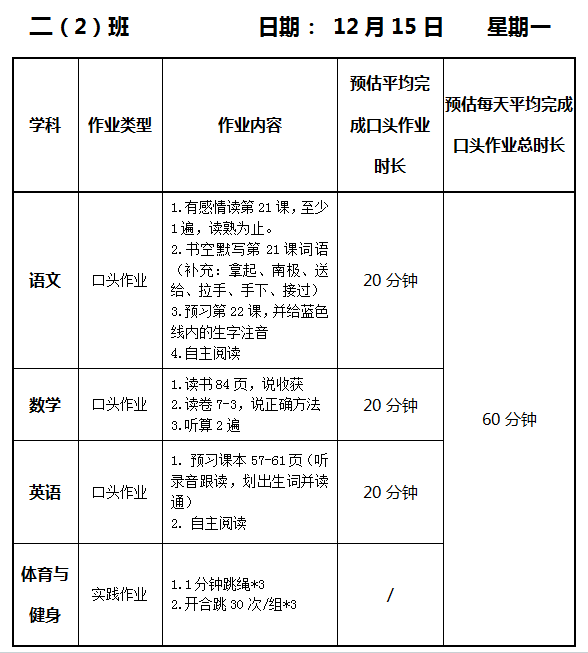 【作业公示】2025学年第一学期南翔小学作业公示(12月15日)