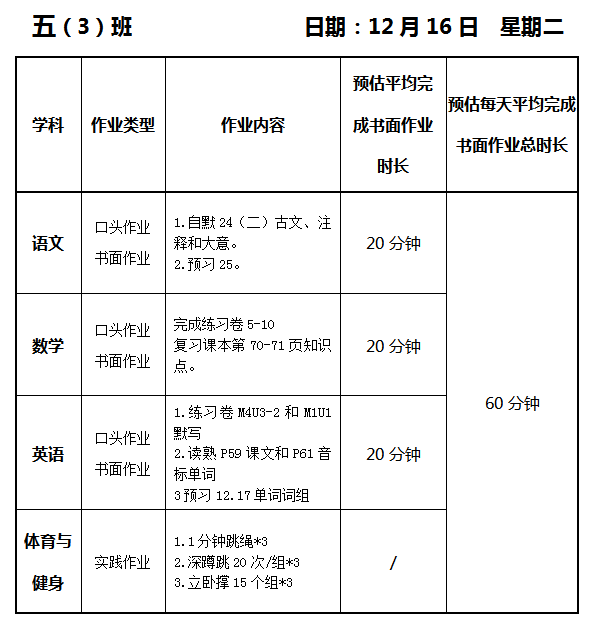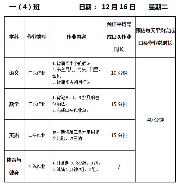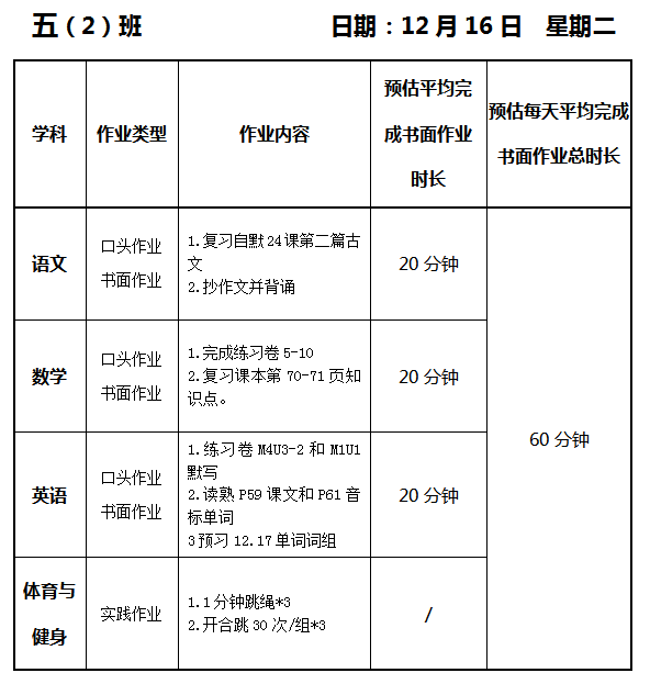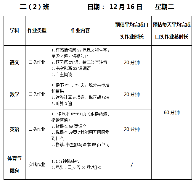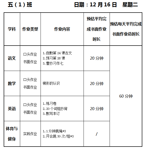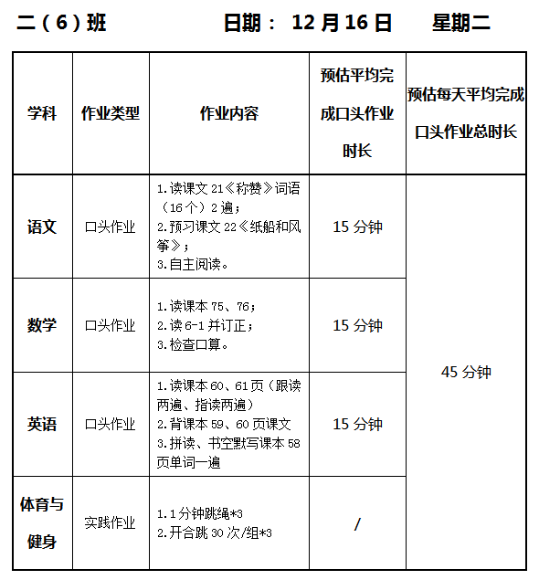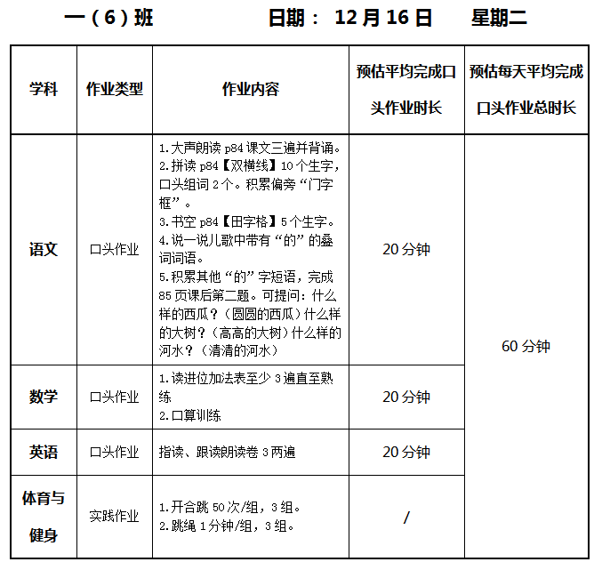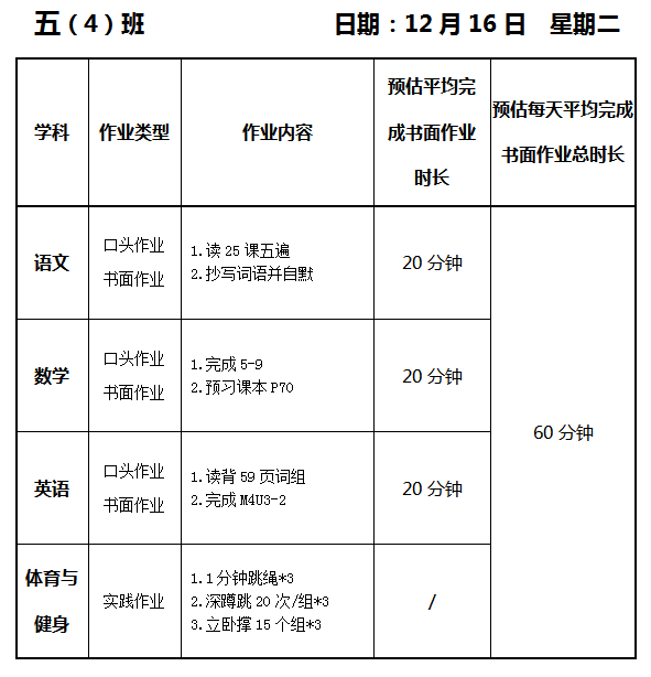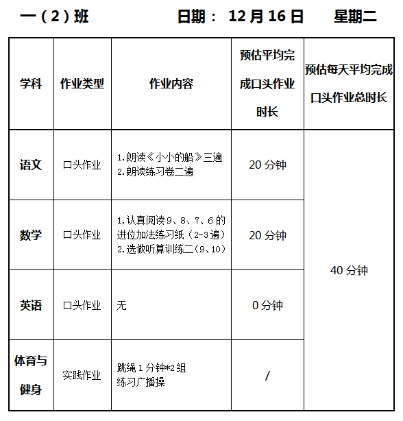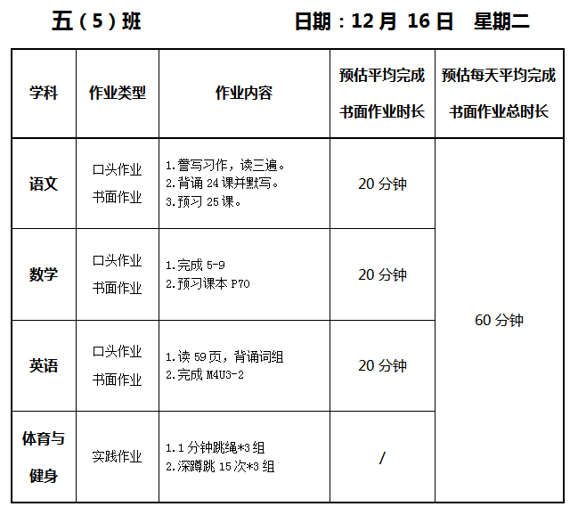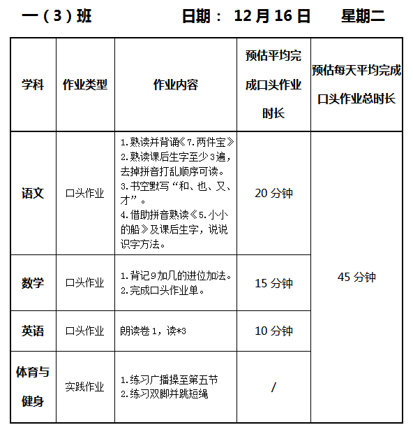 【作业公示】2025学年第一学期南翔小学作业公示(12月16日)
