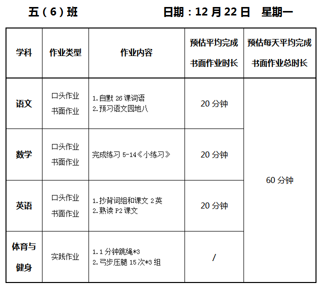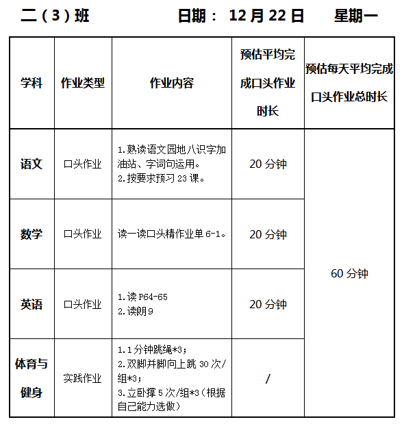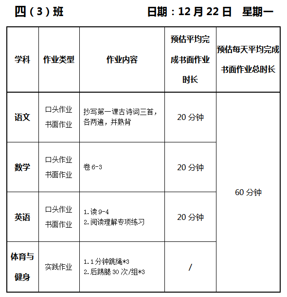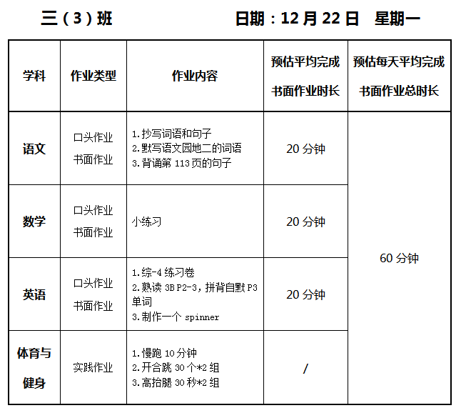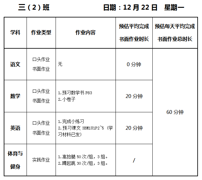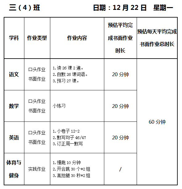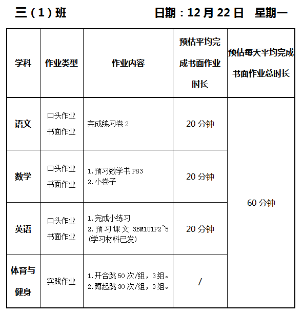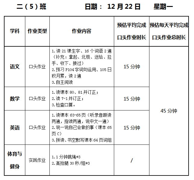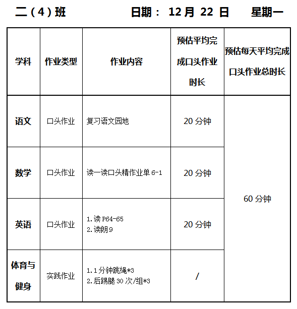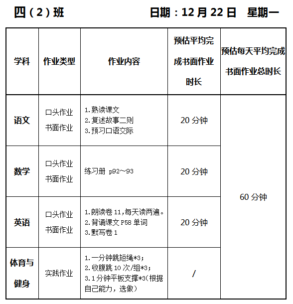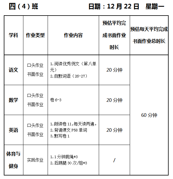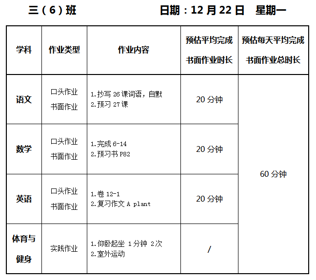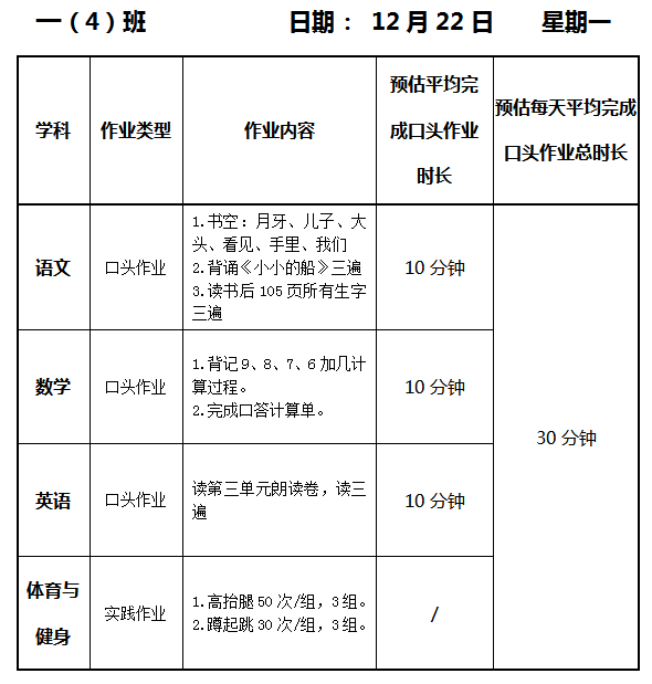 【作业公示】2025学年第一学期南翔小学作业公示(12月22日)