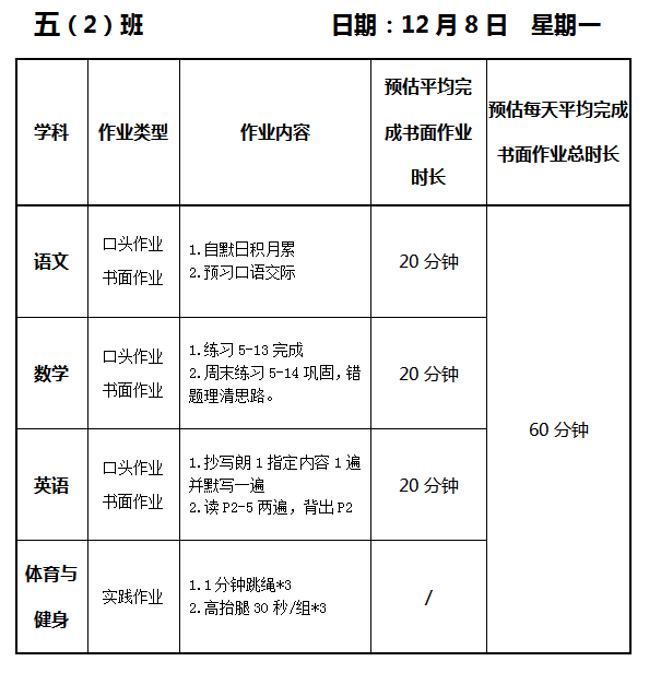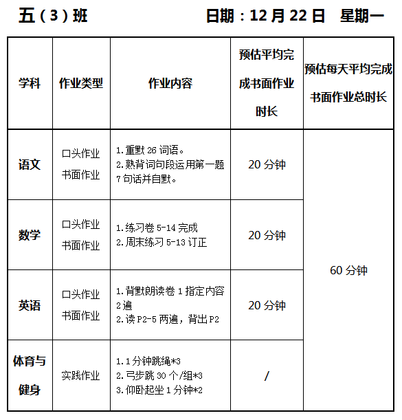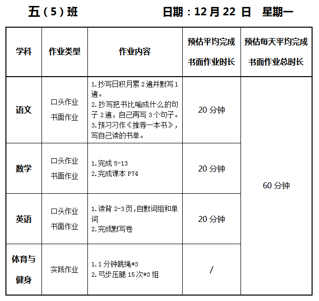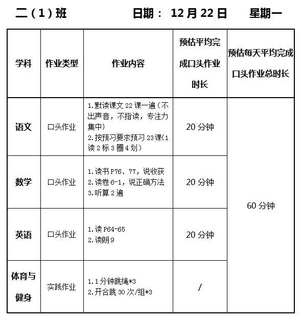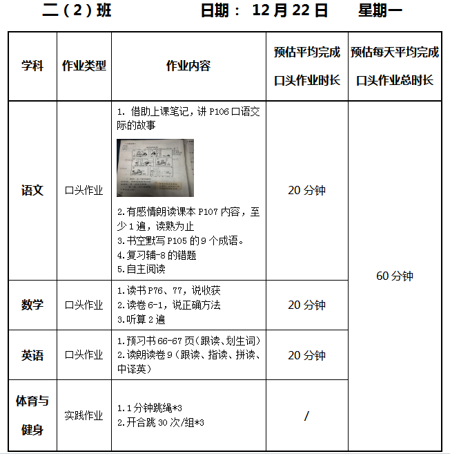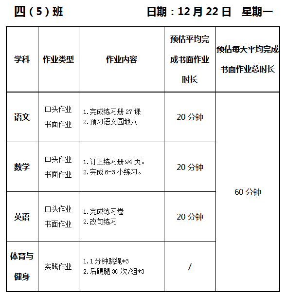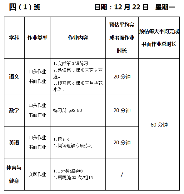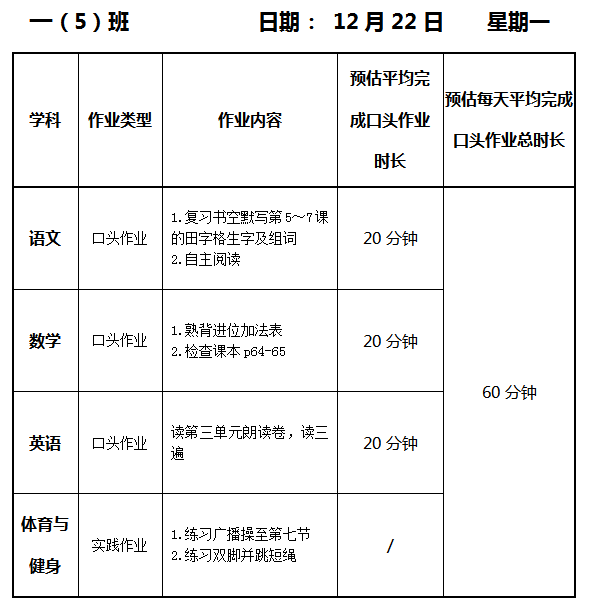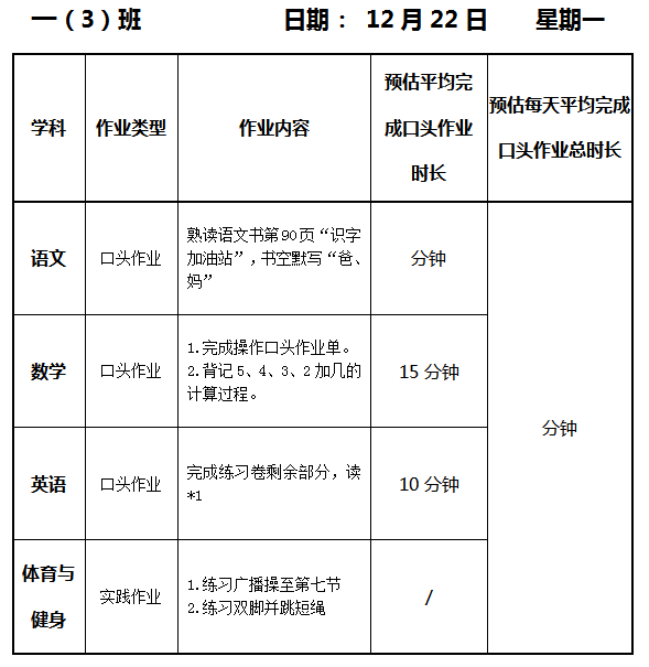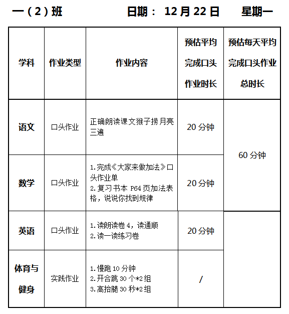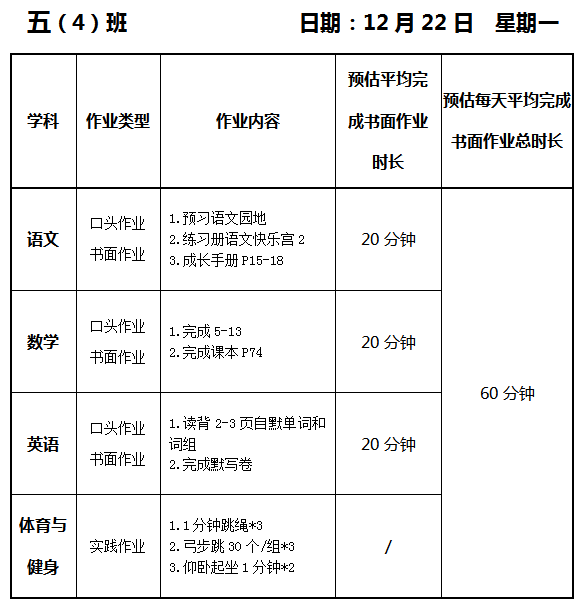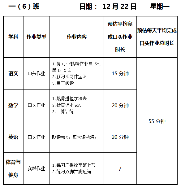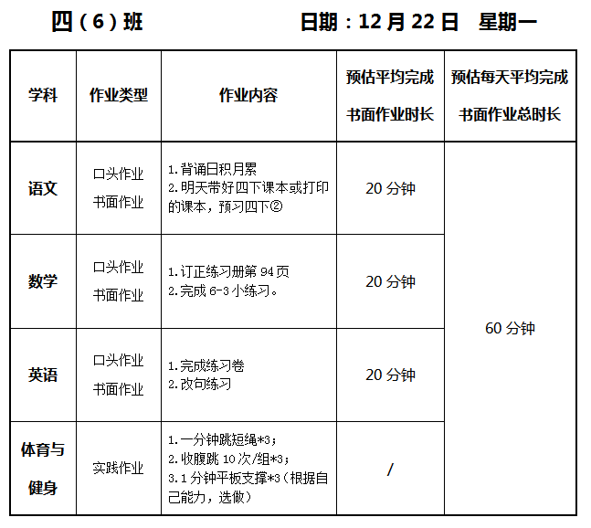 【作业公示】2025学年第一学期南翔小学作业公示(12月22日)