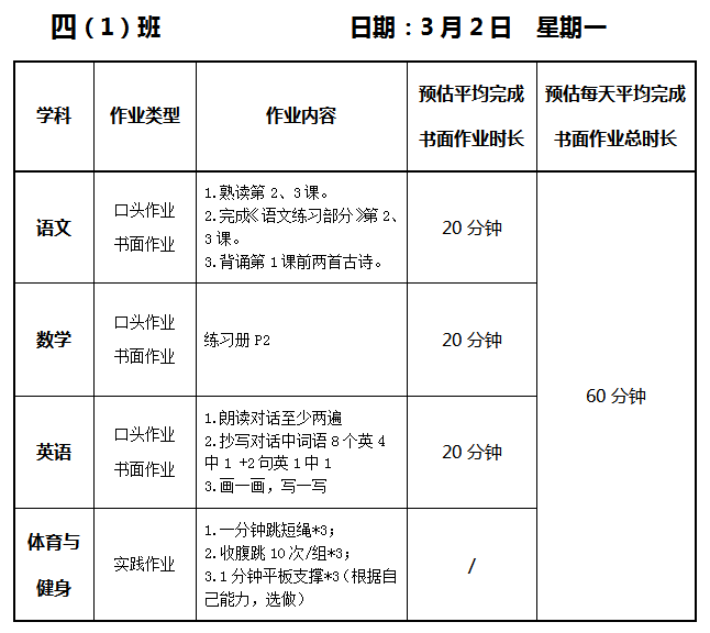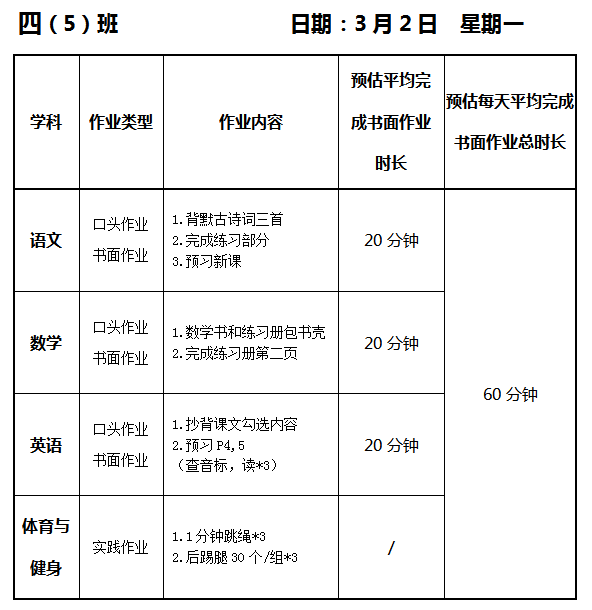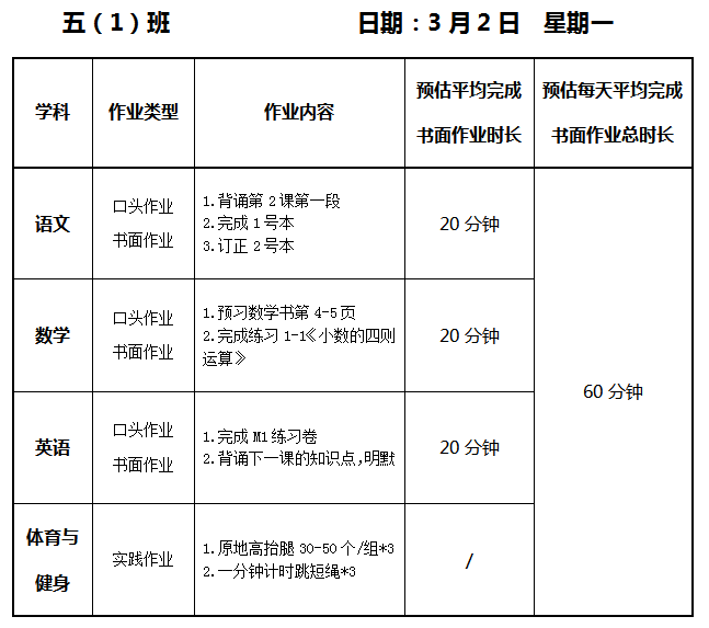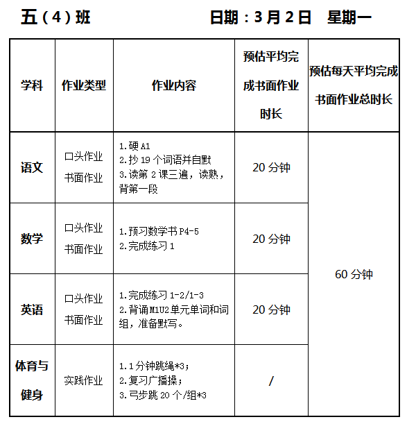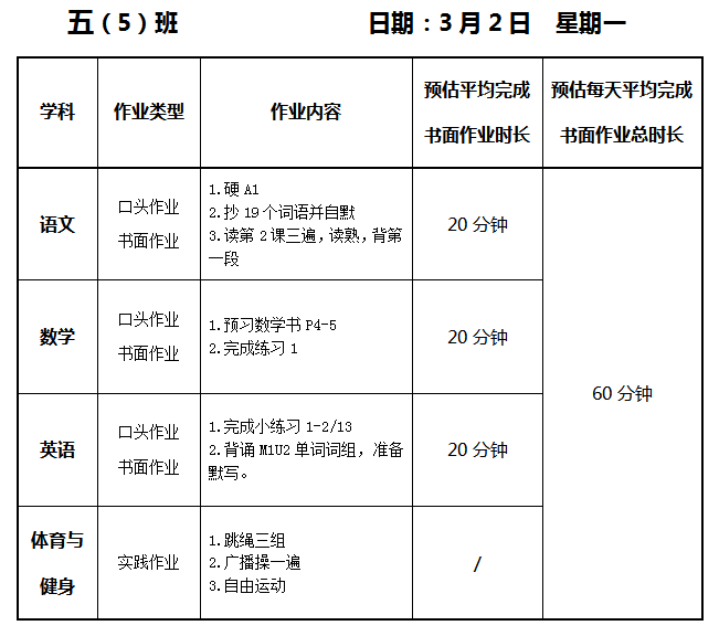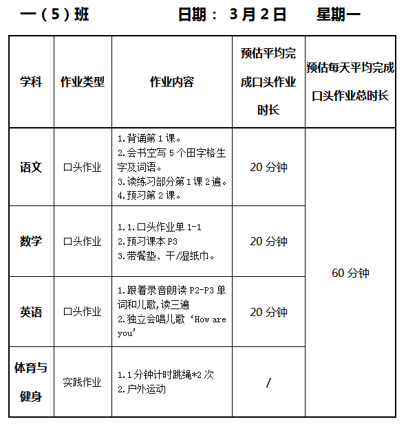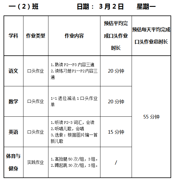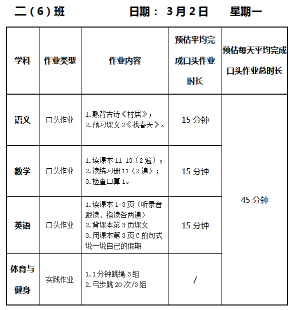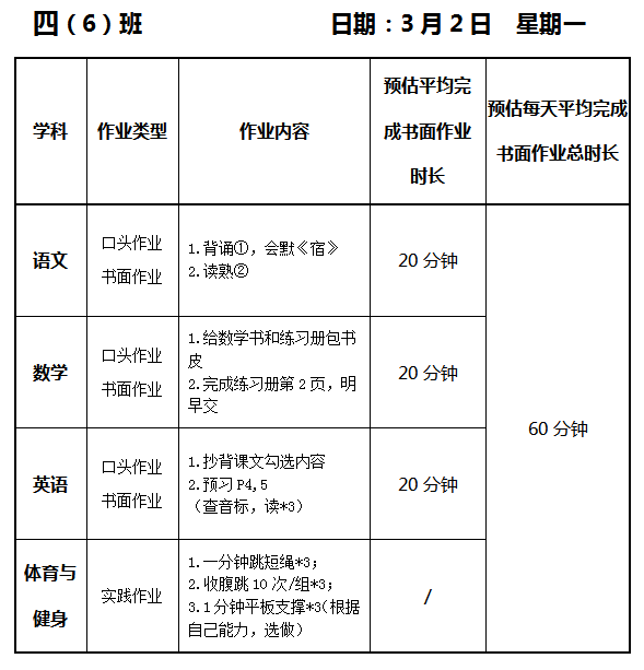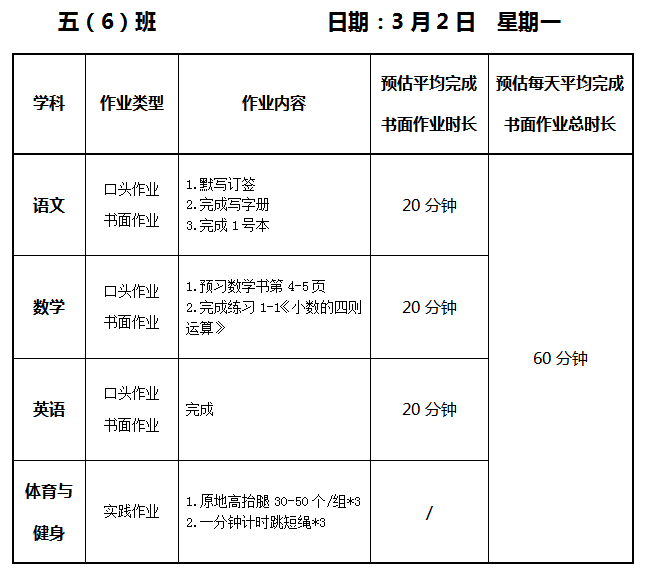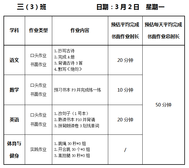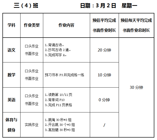 【作业公示】2025学年第二学期南翔小学作业公示(3月2日)