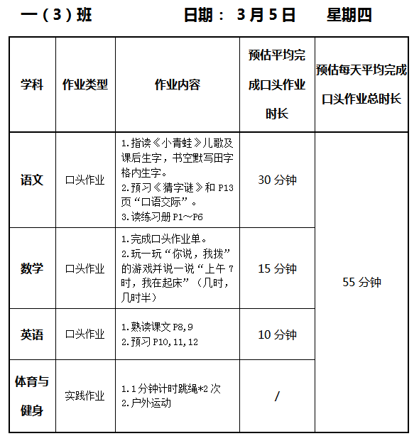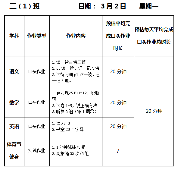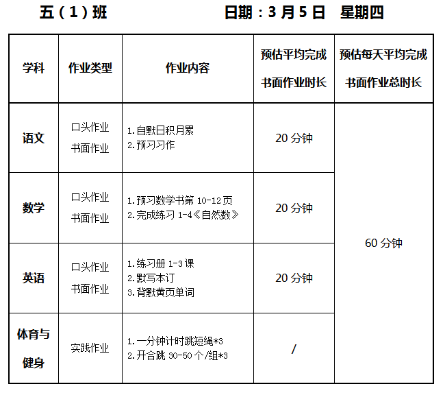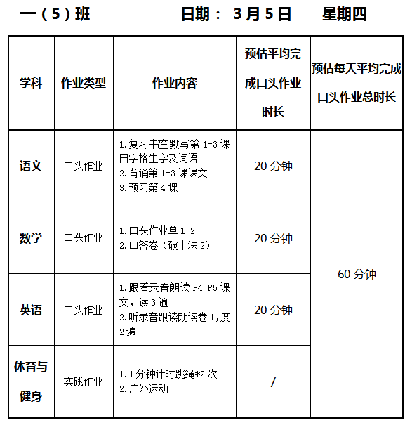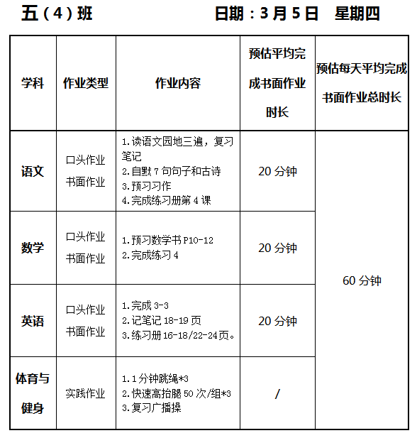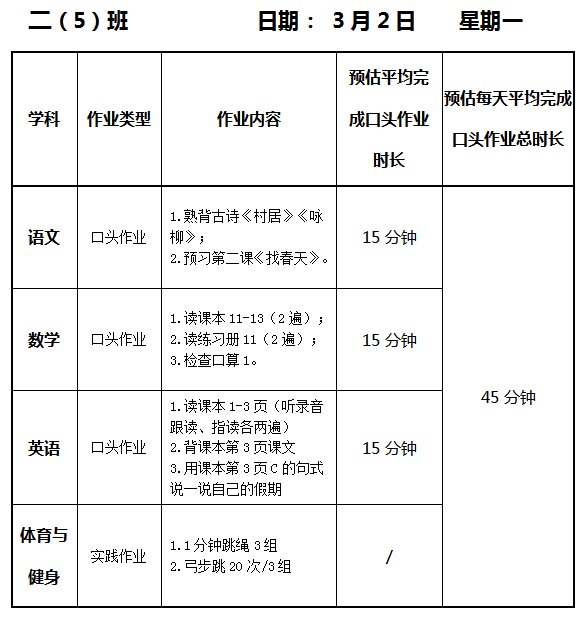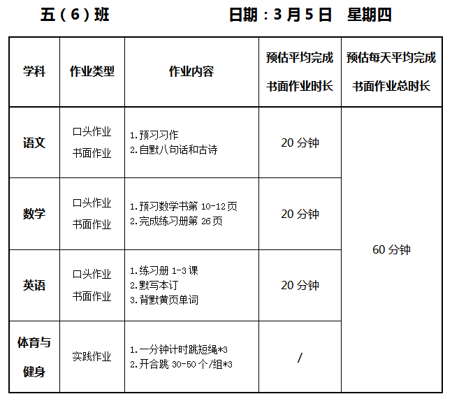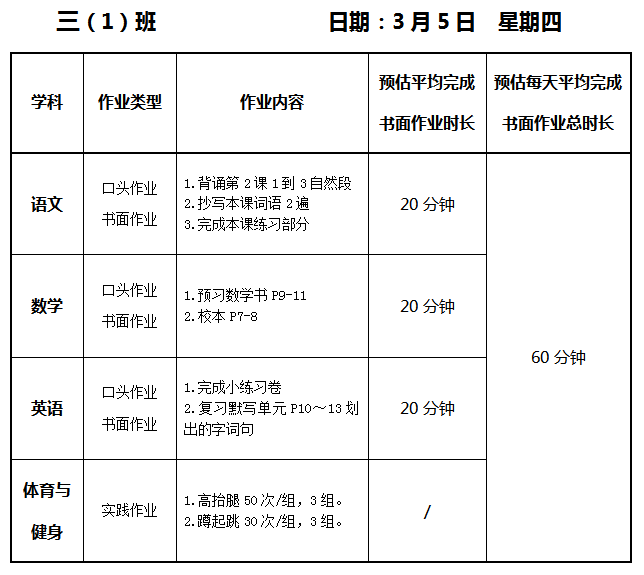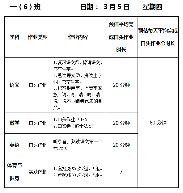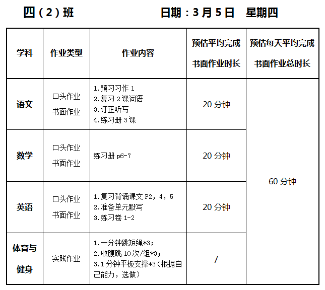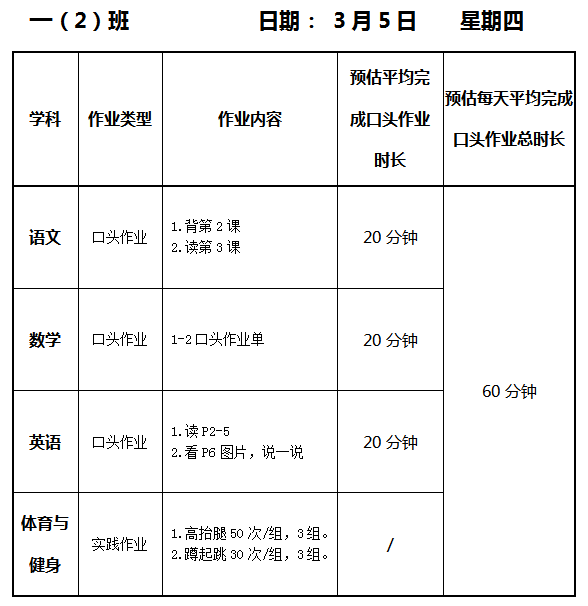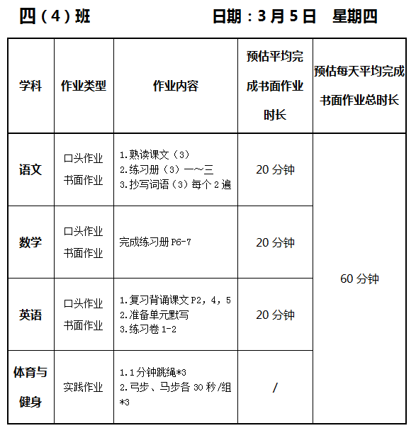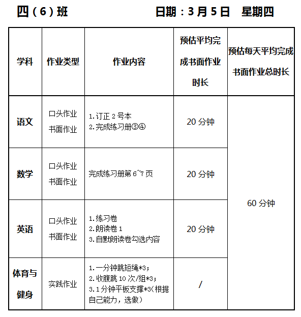 【作业公示】2025学年第二学期南翔小学作业公示(3月5日)