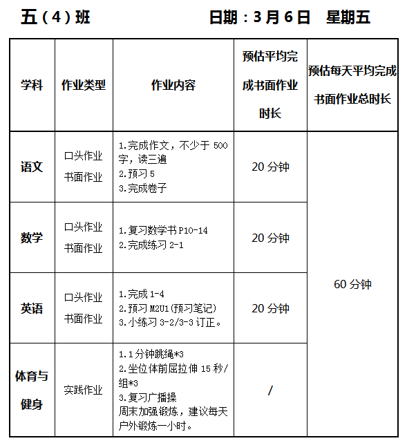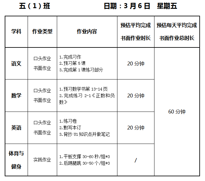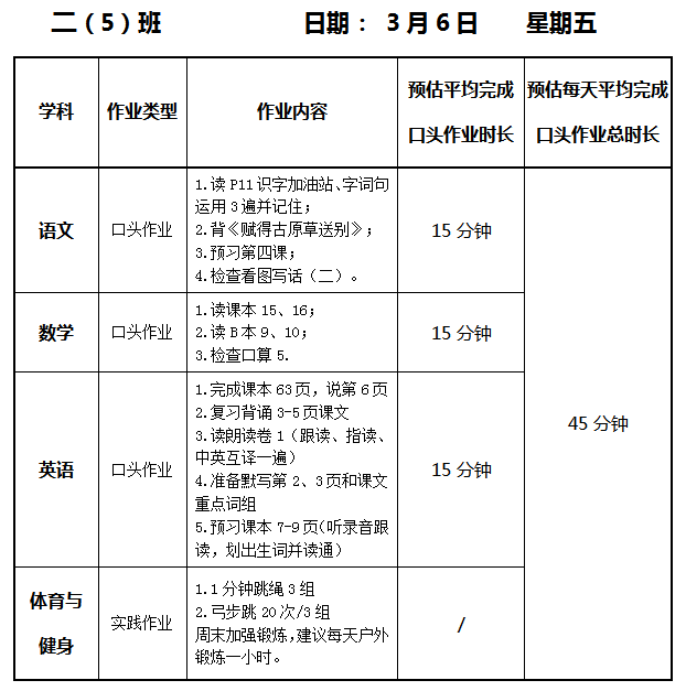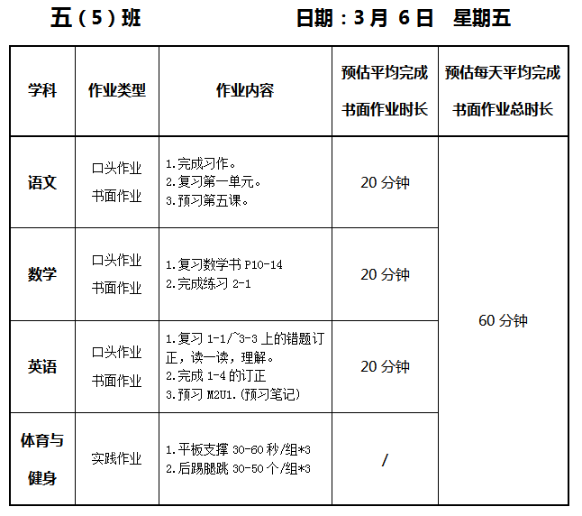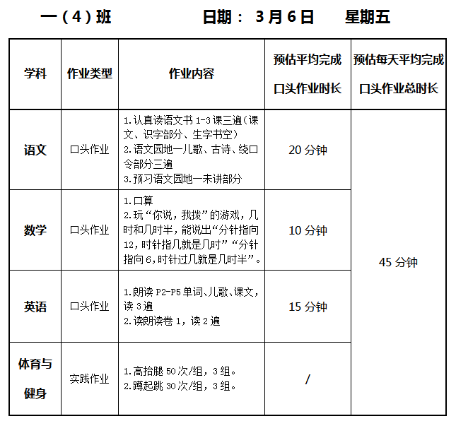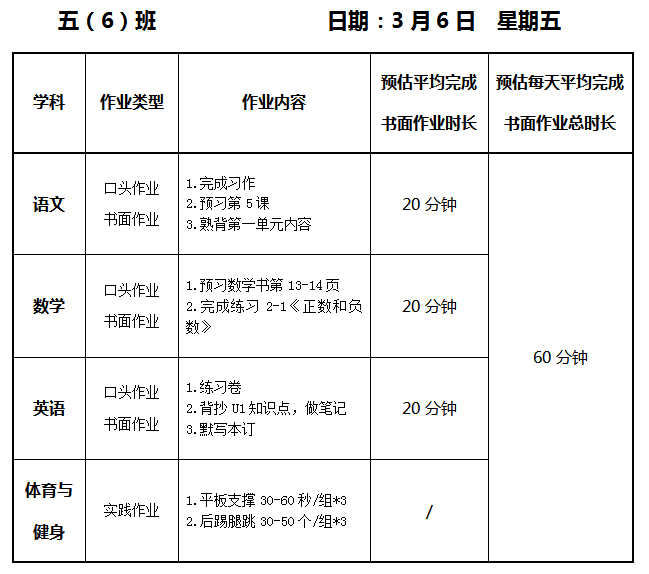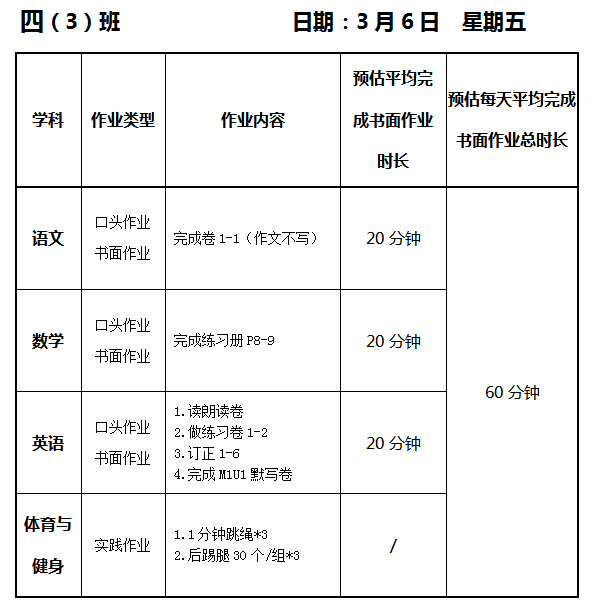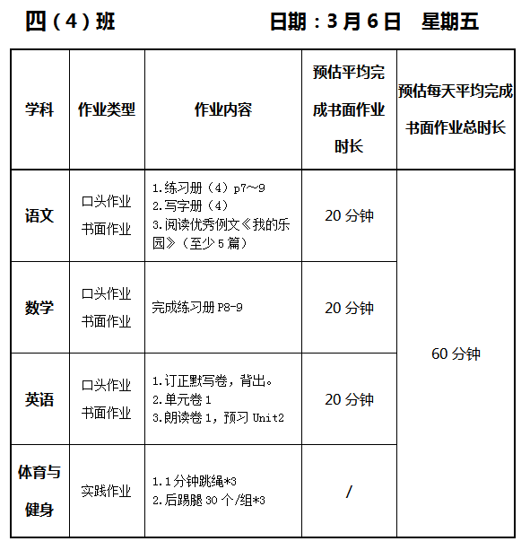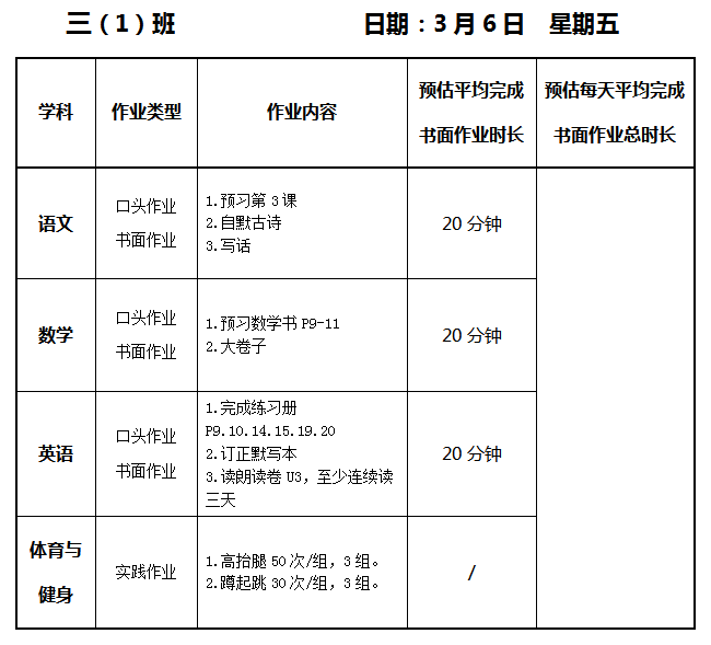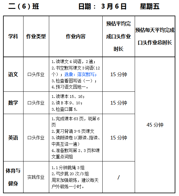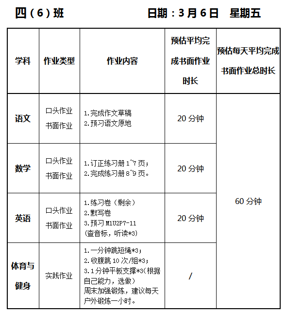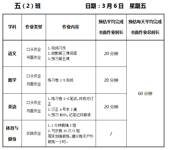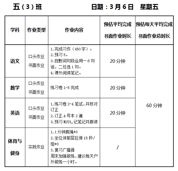 【作业公示】2025学年第二学期南翔小学作业公示(3月6日)