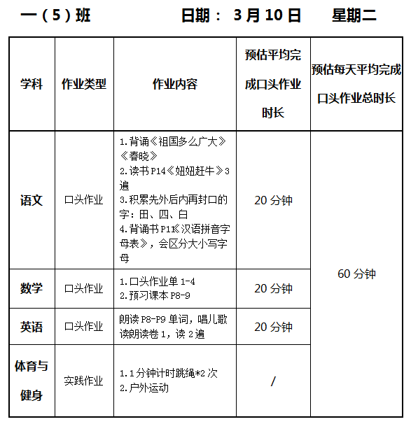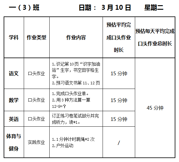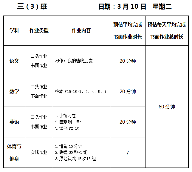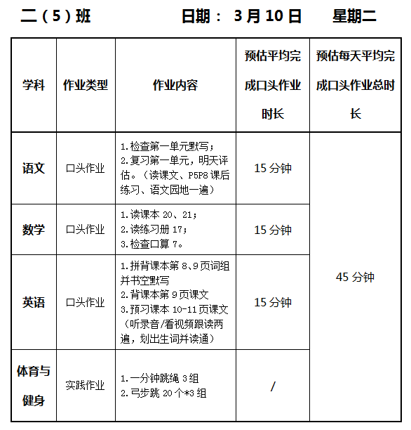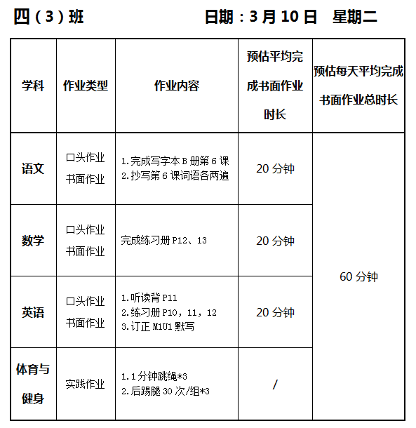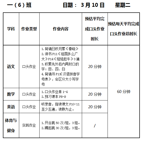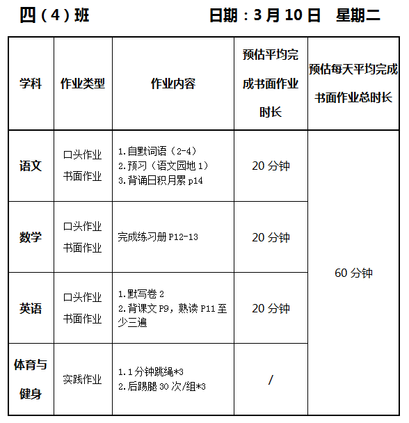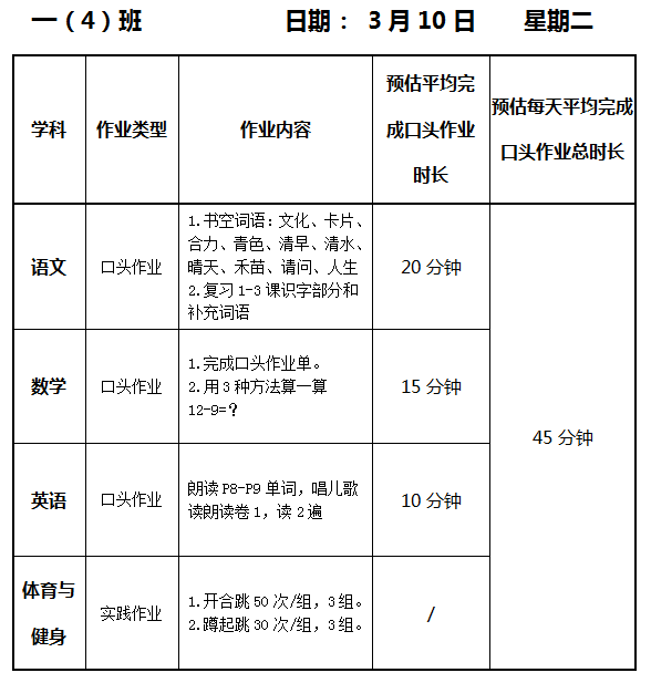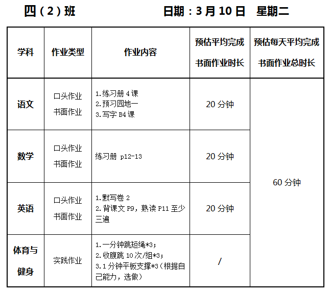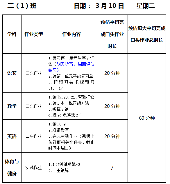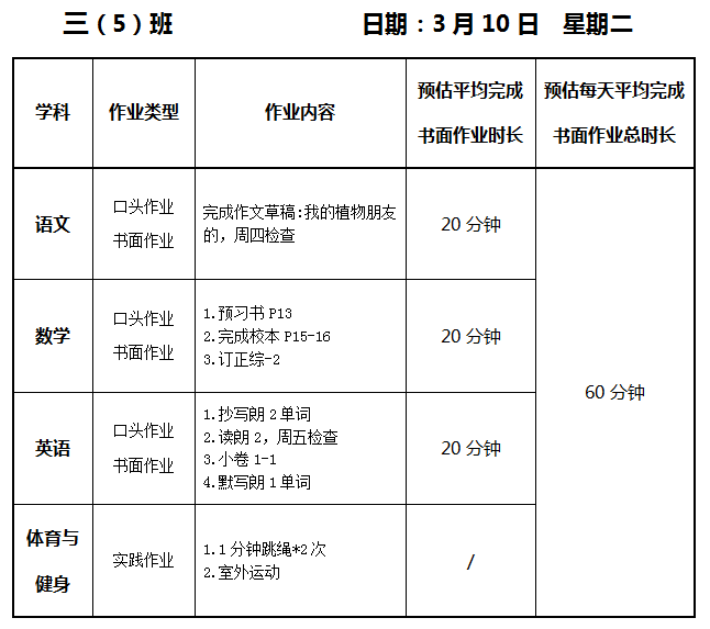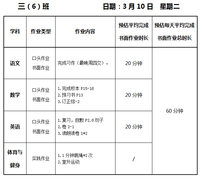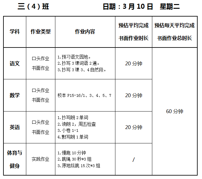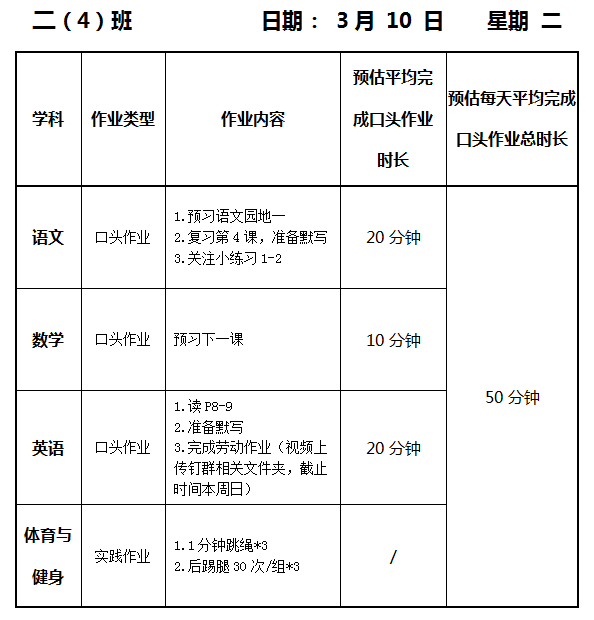 【作业公示】2025学年第二学期南翔小学作业公示(3月10日)