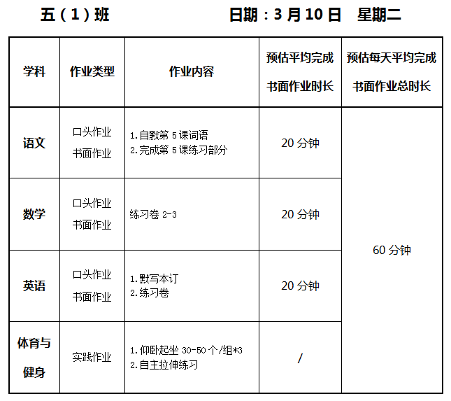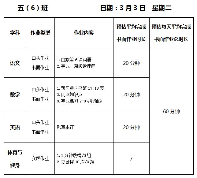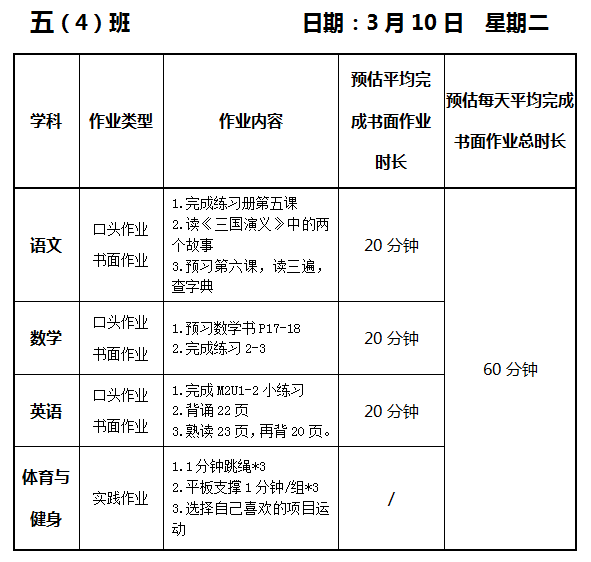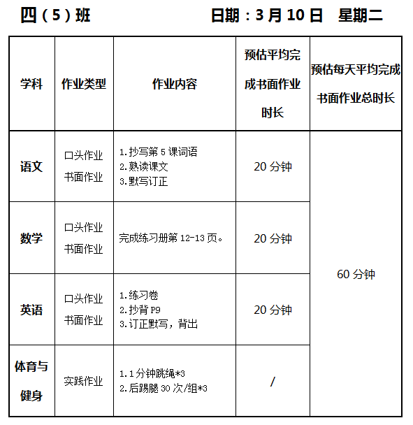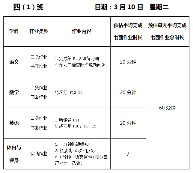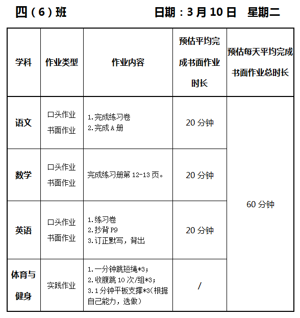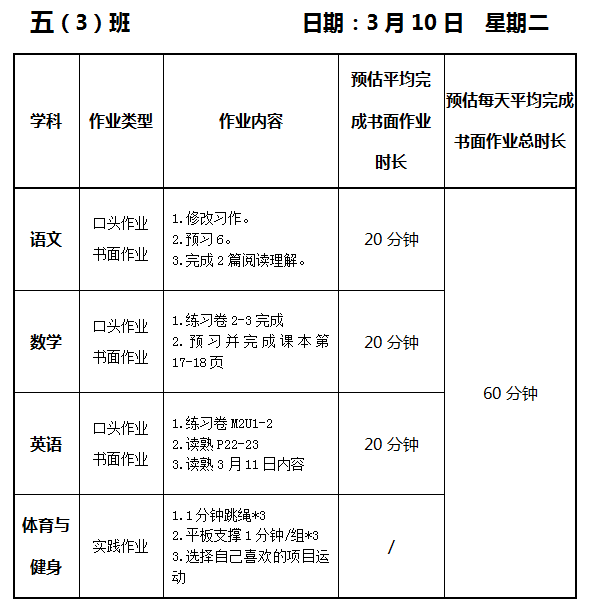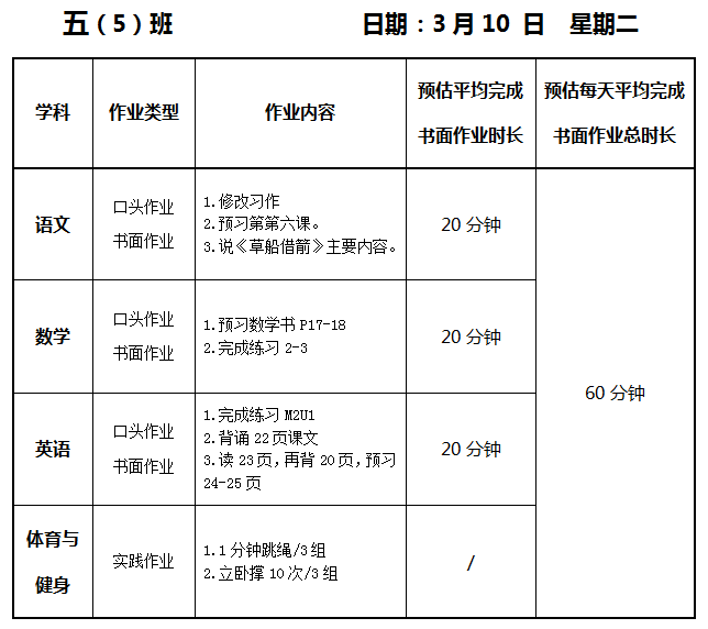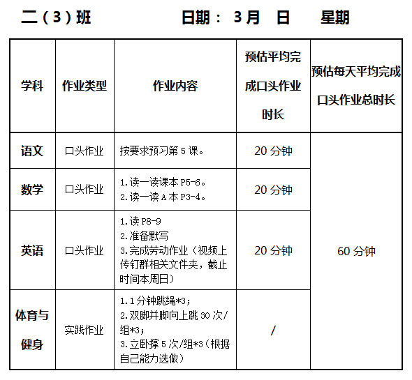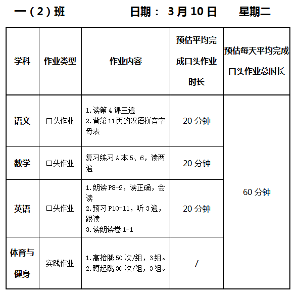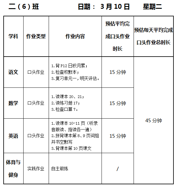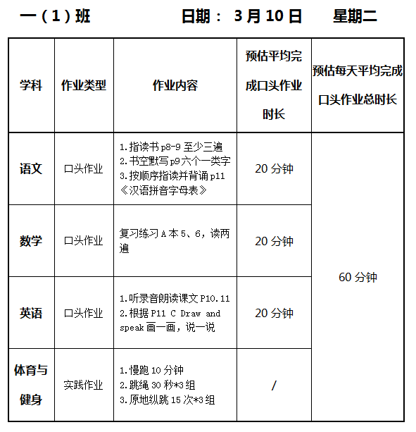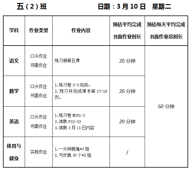 【作业公示】2025学年第二学期南翔小学作业公示(3月10日)
