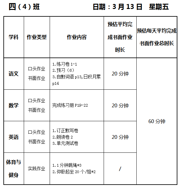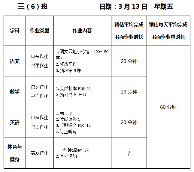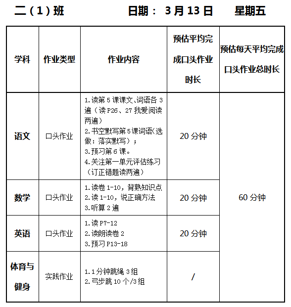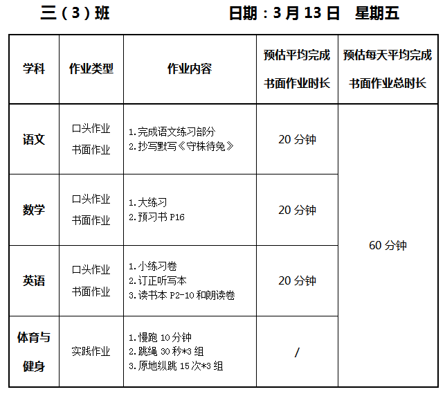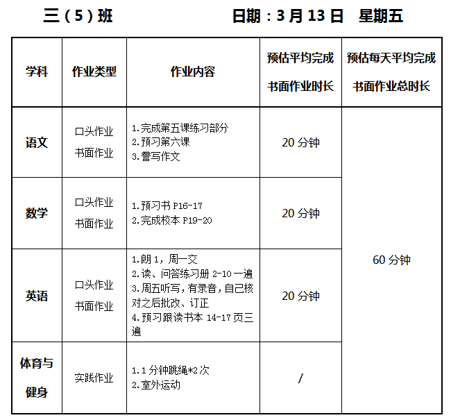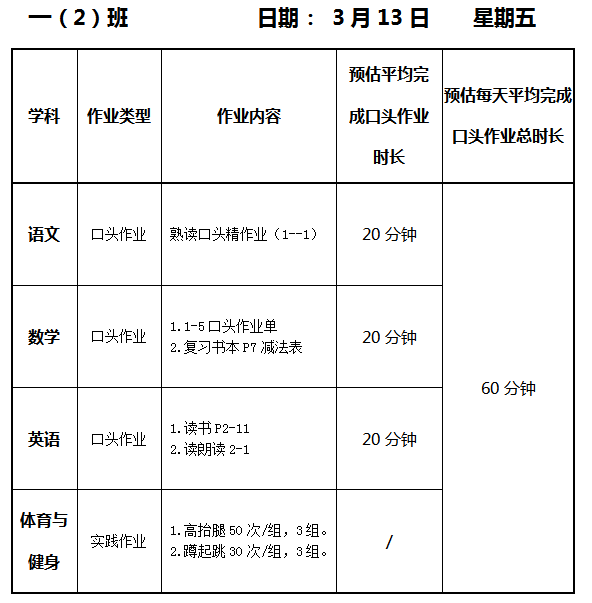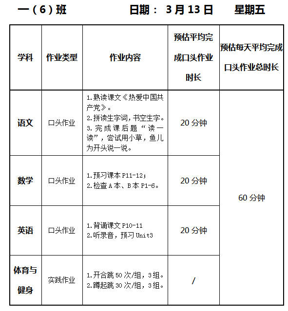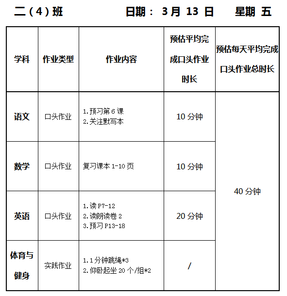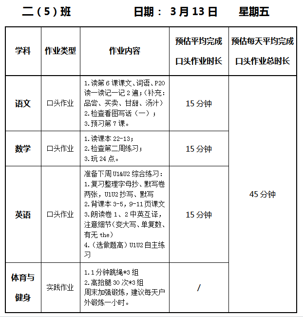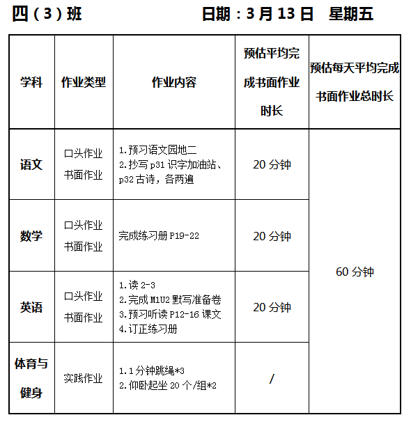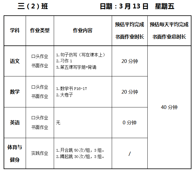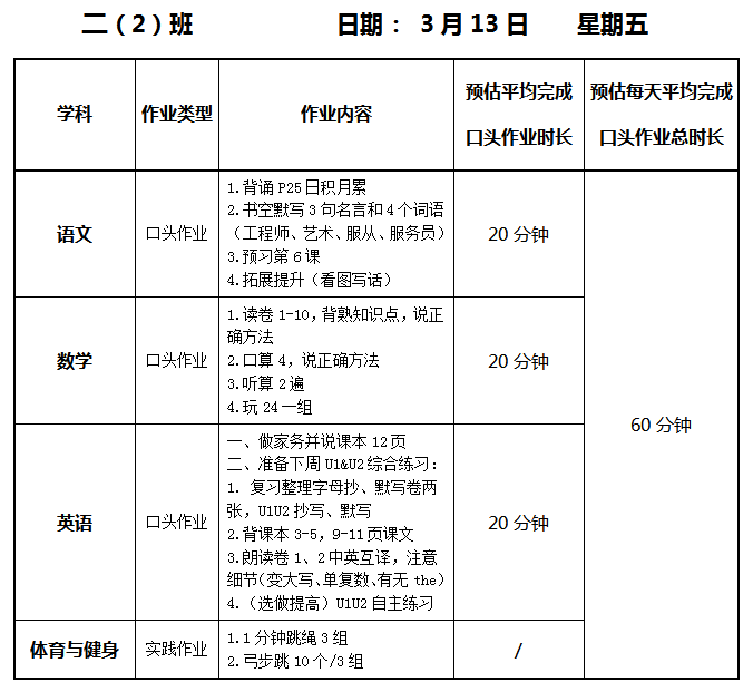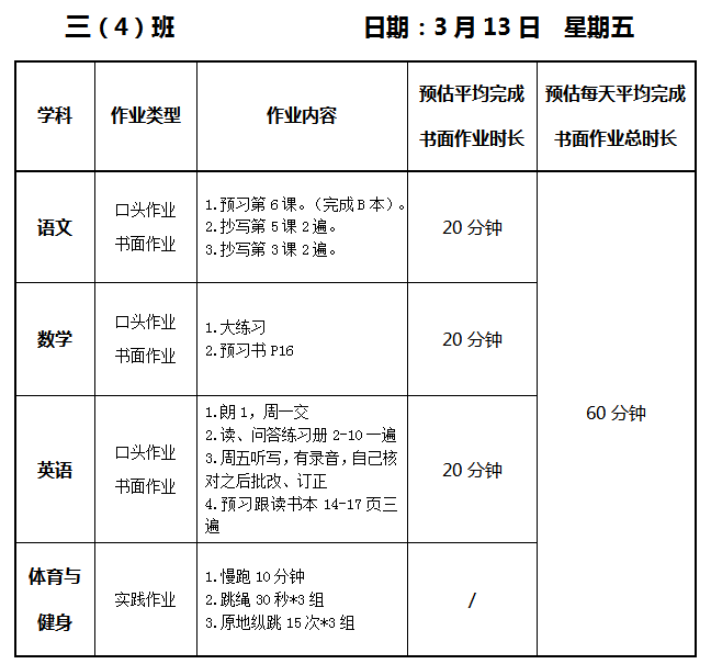 【作业公示】2025学年第二学期南翔小学作业公示(3月13日)