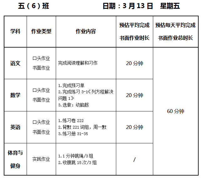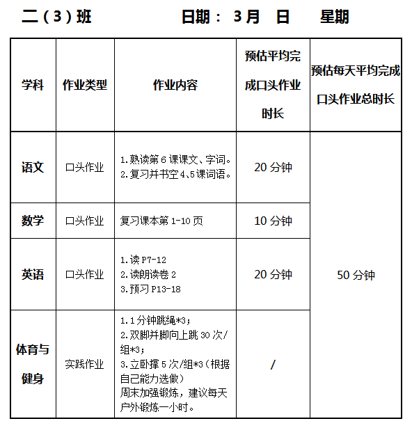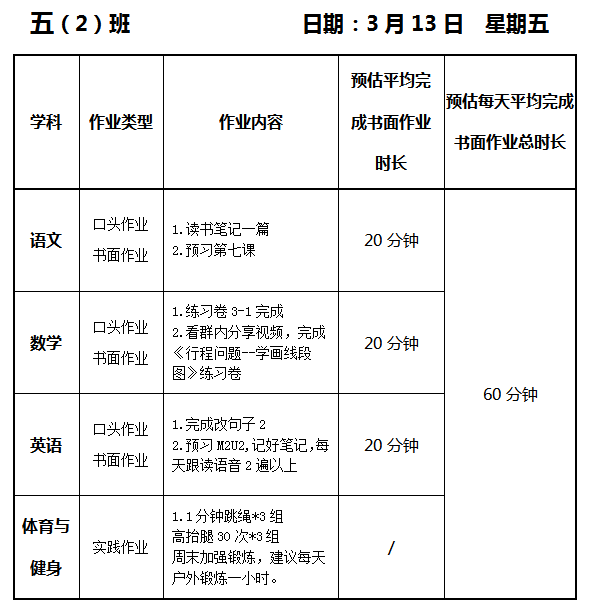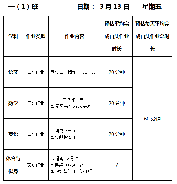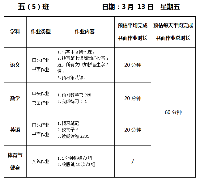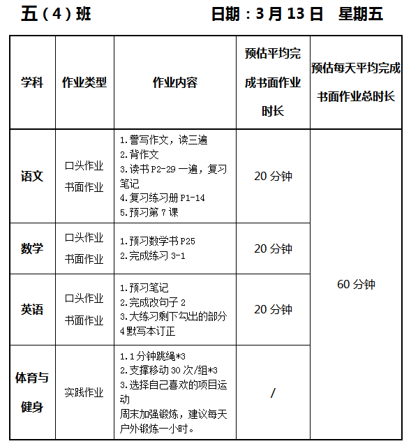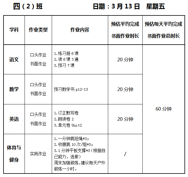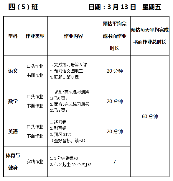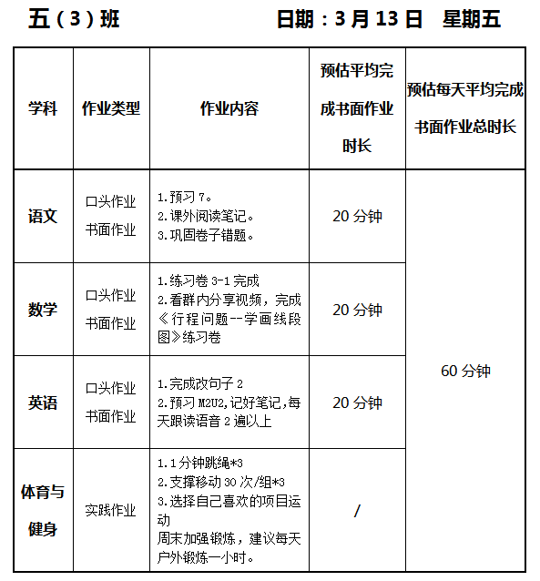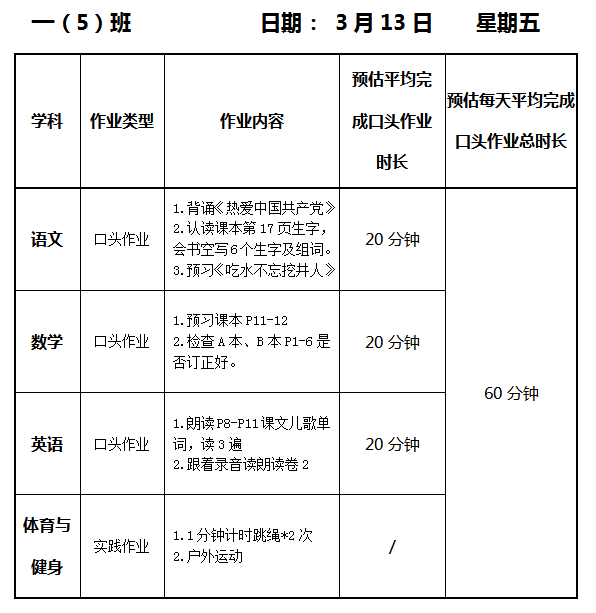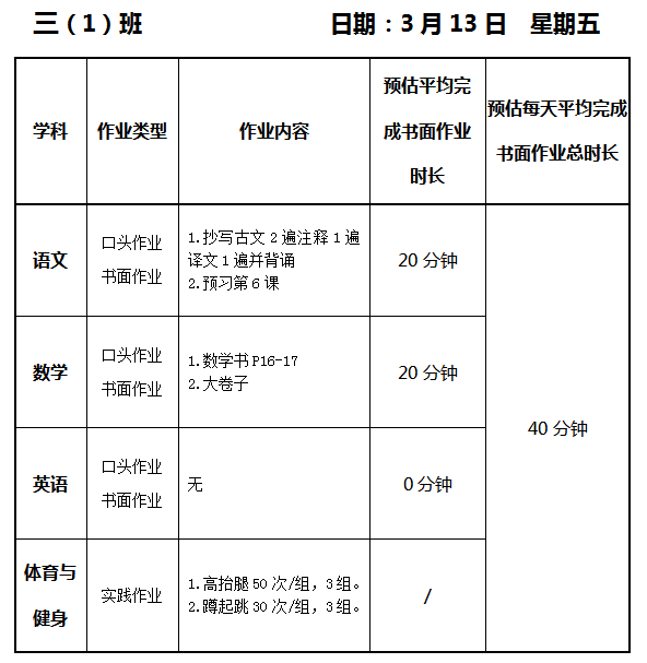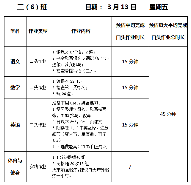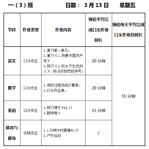 【作业公示】2025学年第二学期南翔小学作业公示(3月13日)