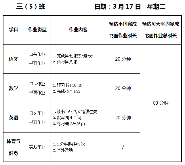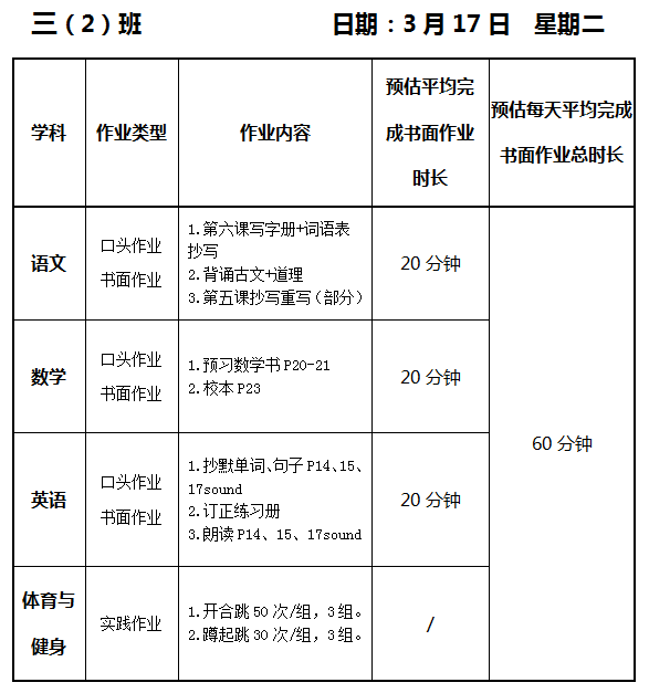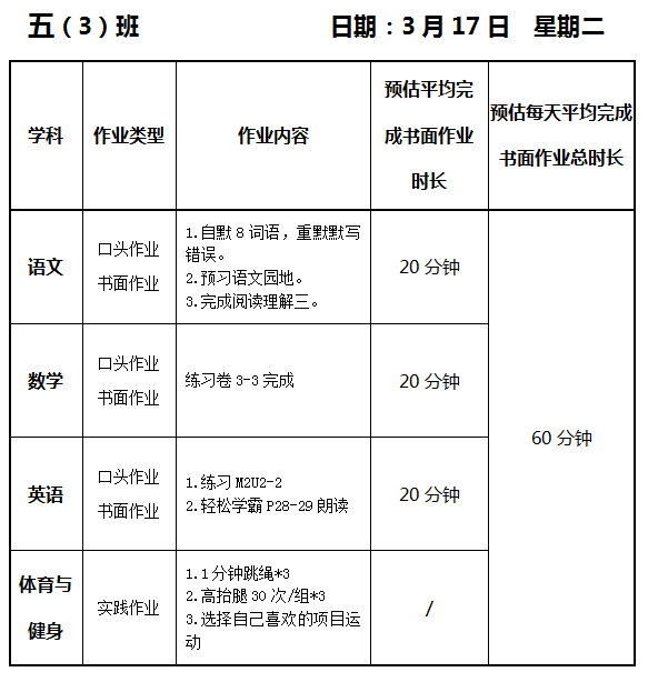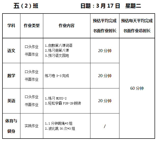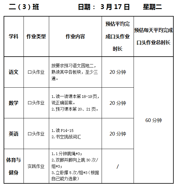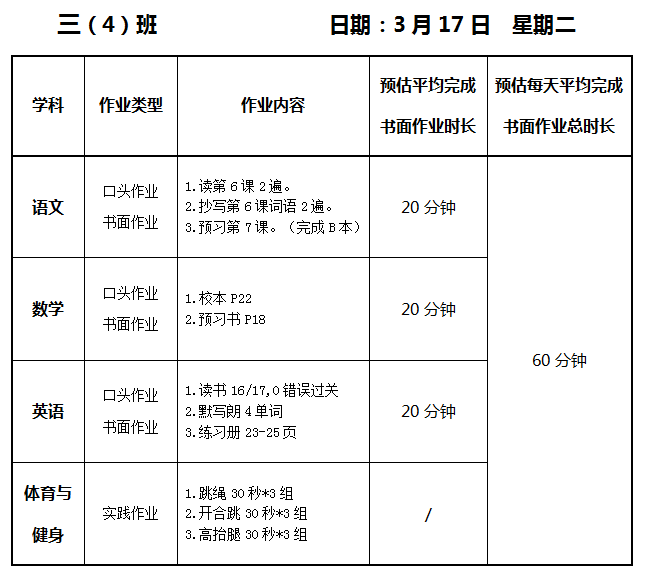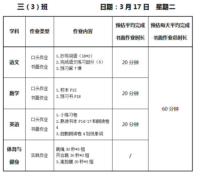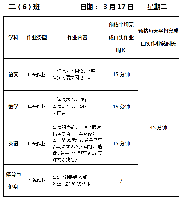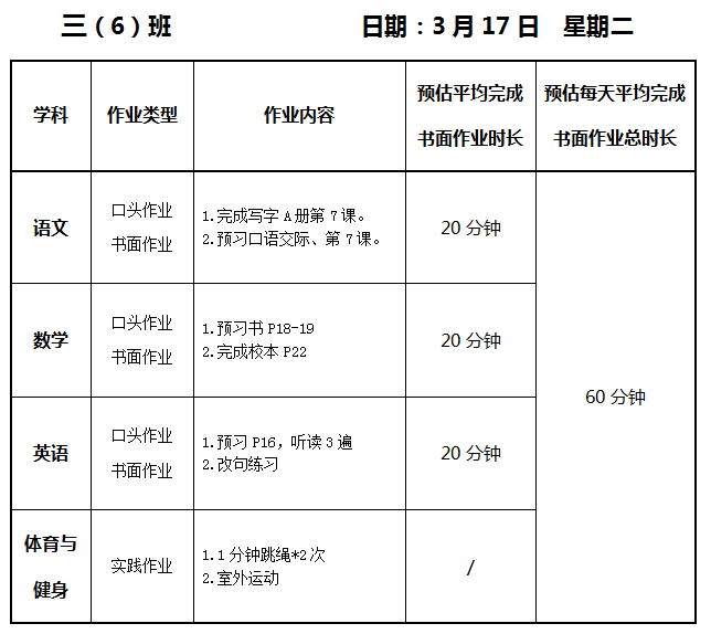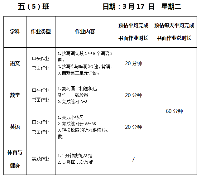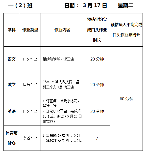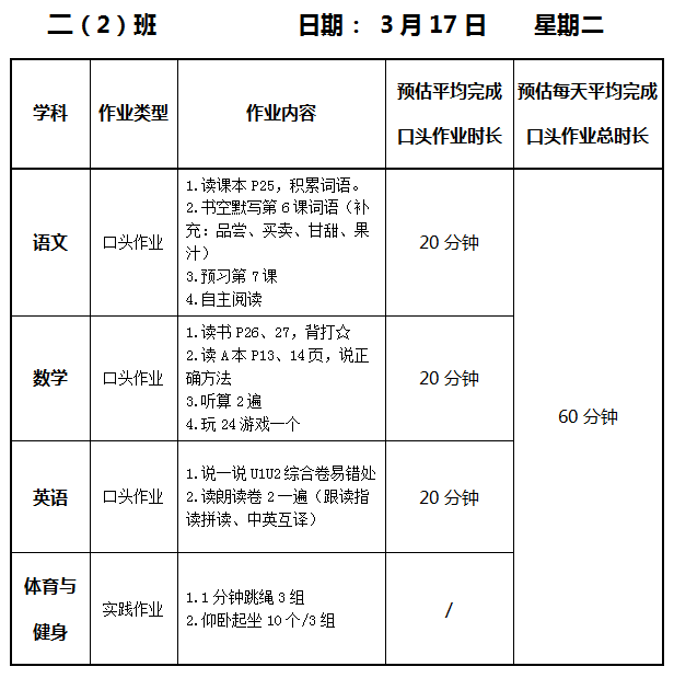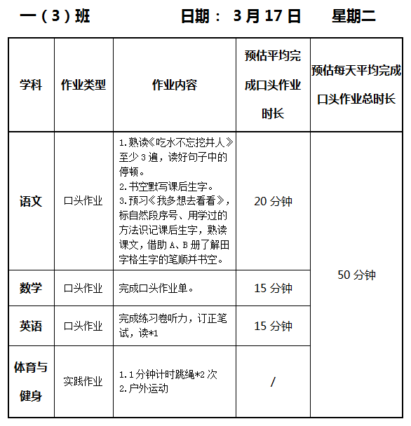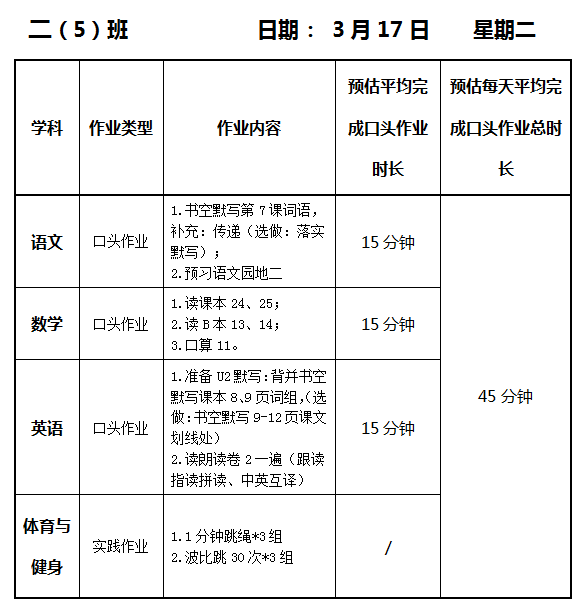 【作业公示】2025学年第二学期南翔小学作业公示(3月17日)