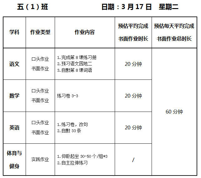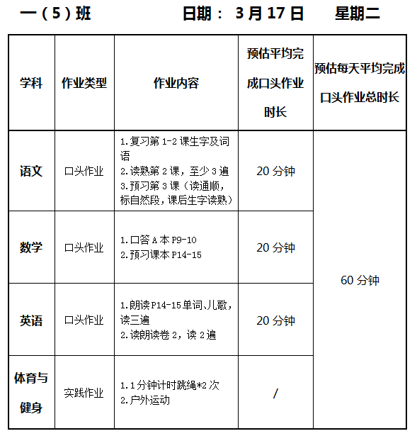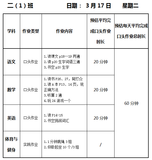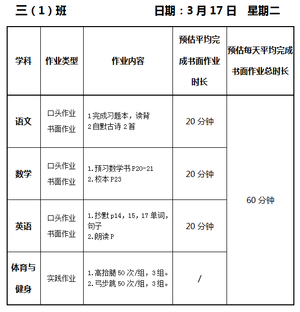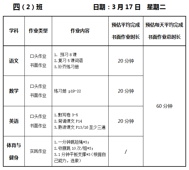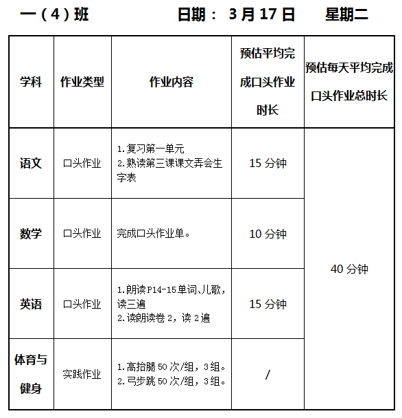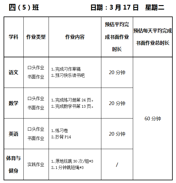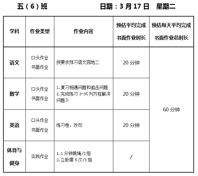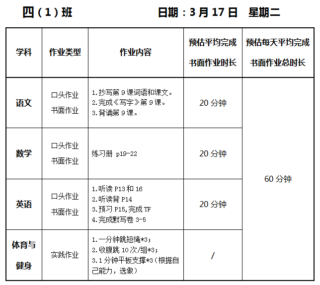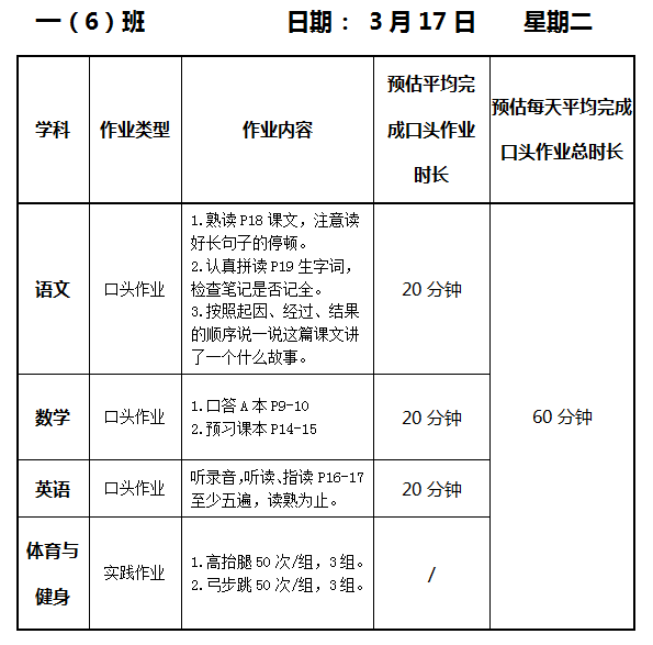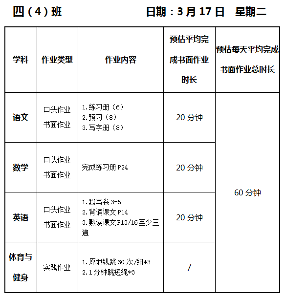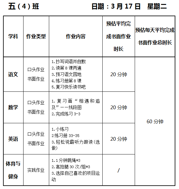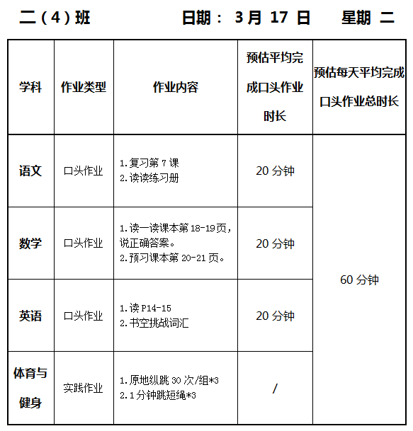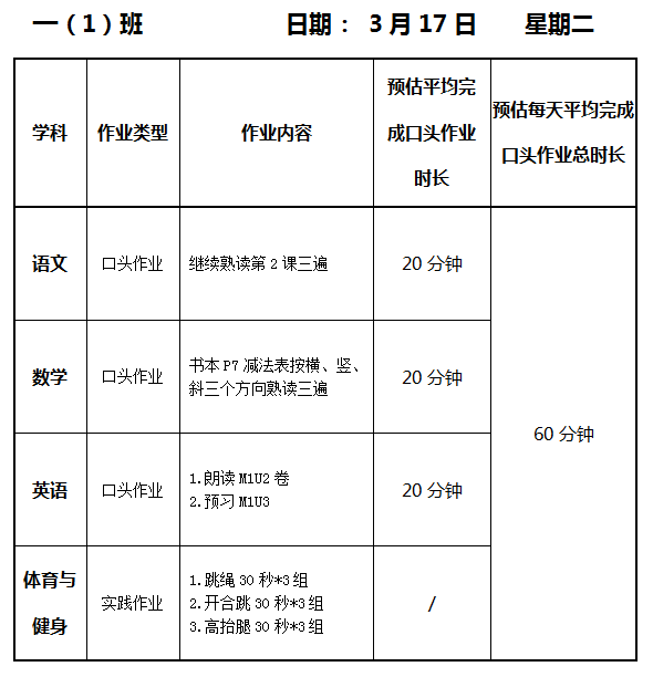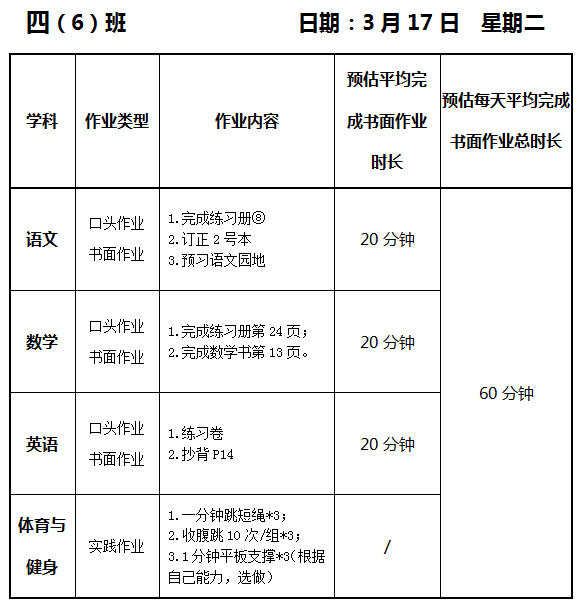 【作业公示】2025学年第二学期南翔小学作业公示(3月17日)